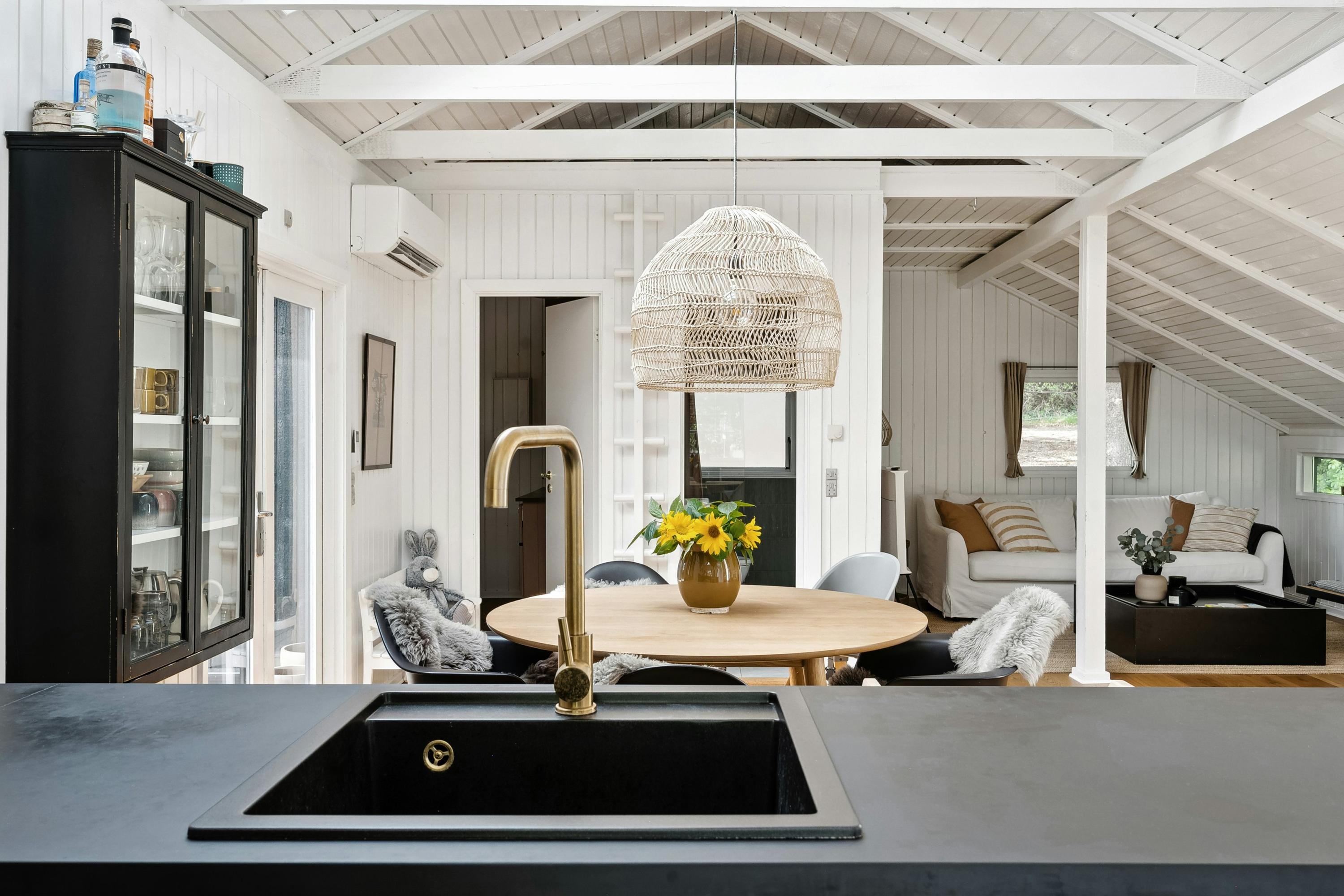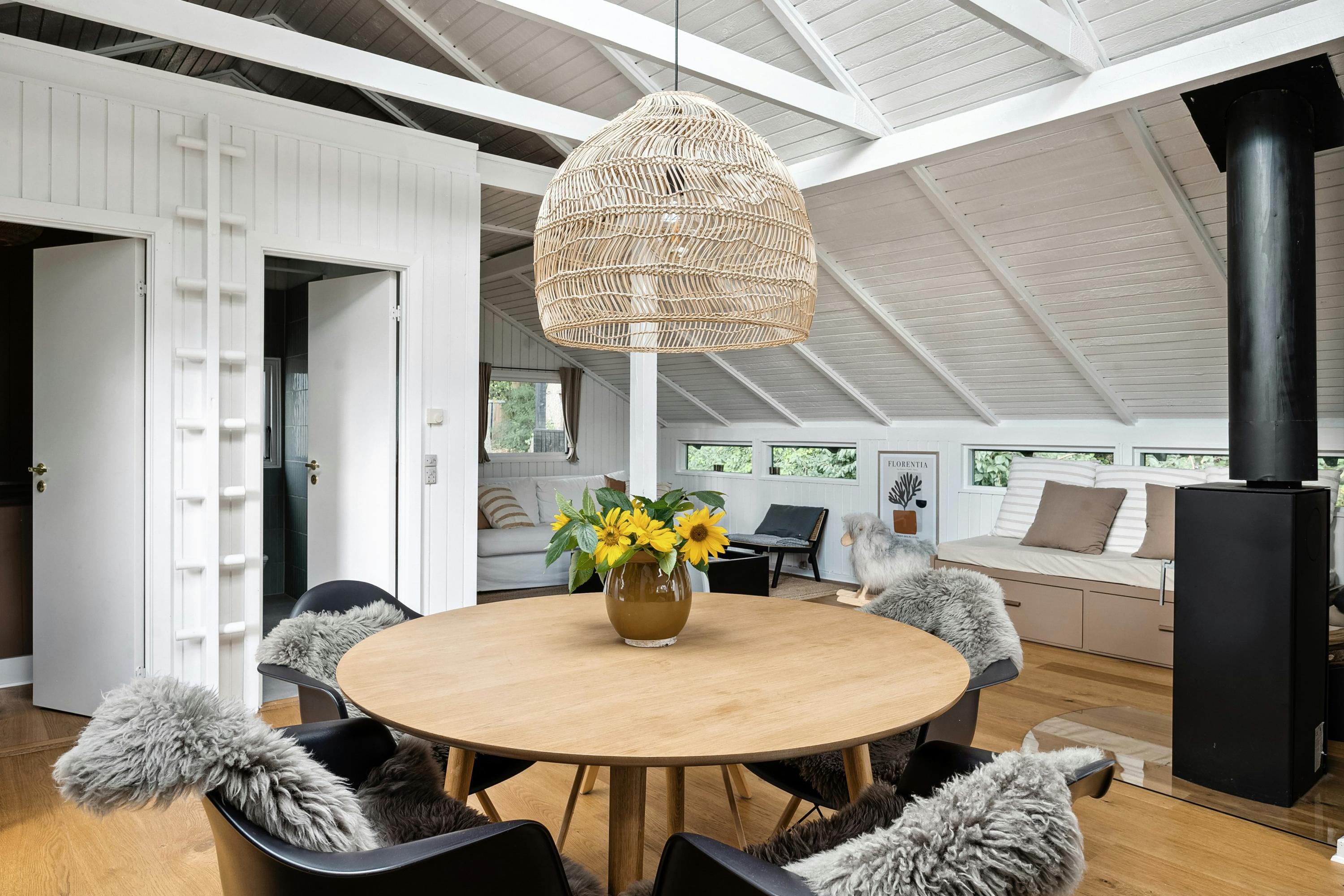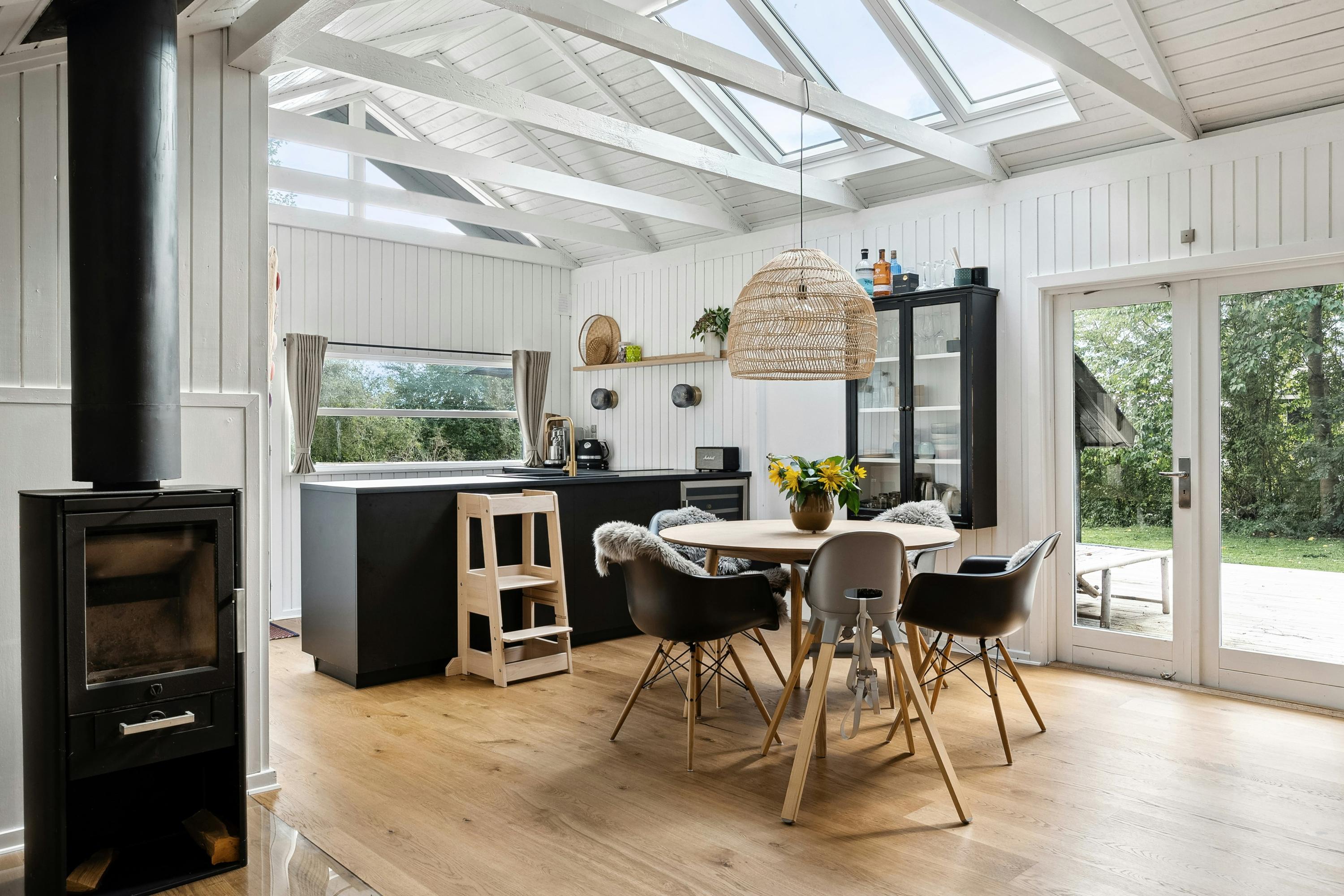 Mellem Tisvildeleje og det fredede Heatherhill ligger dette gennem renoverede Kalmar-sommerhus, der kombinerer ægte sommerhusstemning med nordisk enkelhed og smukke, grønne omgivelser. De høje træer, der omkranser både hus og have, giver en fornemmelse af at være helt omsluttet af naturen.