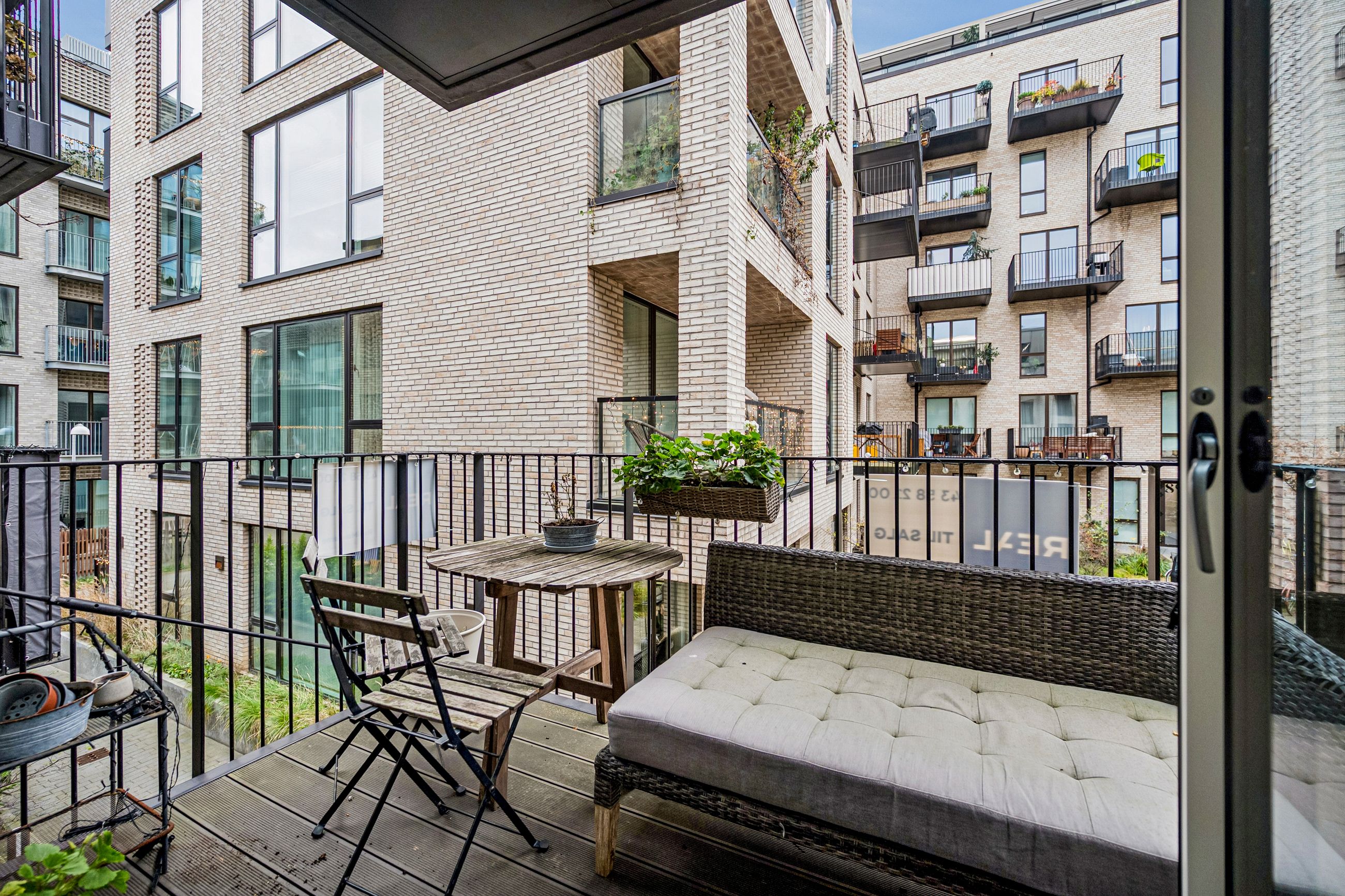 De store vinduespartier og altanen inviterer dagslyset generøst indenfor. Særligt altanen tilfører både liv og frisk luft til lejligheden. Med sin østvendte placering strømmer morgensolen ind, og du kan nyde de første solstråler med en kop kaffe eller en god bog, mens byen langsomt vågner.