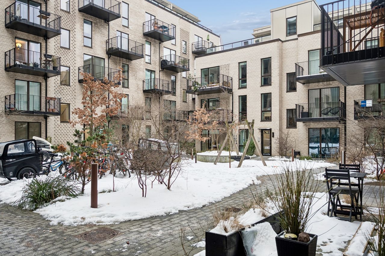 Ejendommen har naturligvis elevator samt et hyggeligt gårdmiljø med legeplads, cykel kælder og brugsret til depotrum. Metroens Nordhavnslinje ligger kun 300 meter væk – en kort gåtur. CPH Porthouse er et præmieret byggeri der er blevet certificeret med en guldmedalje efter DGNBs miljøstandarder på bydelsniveau.