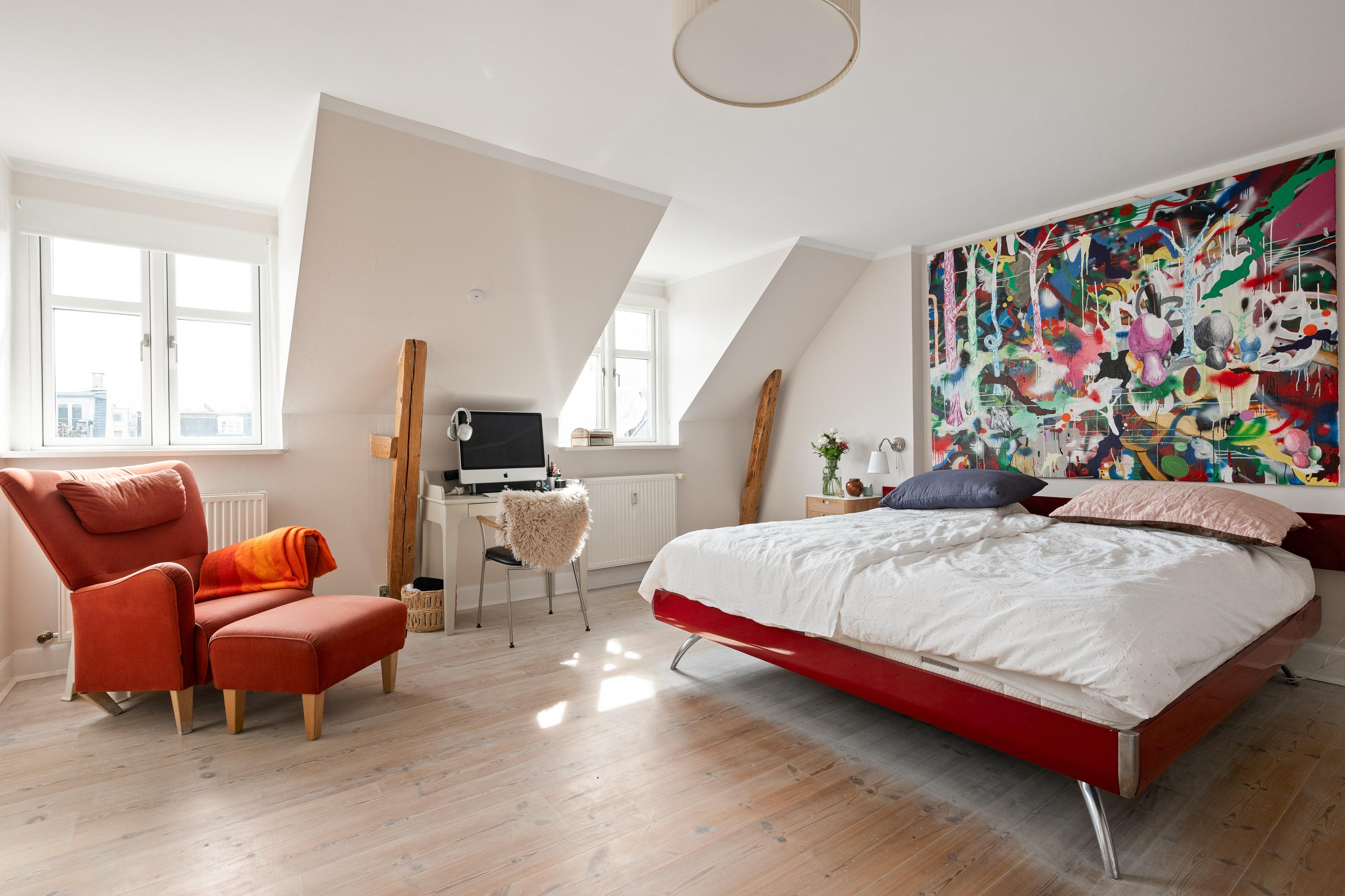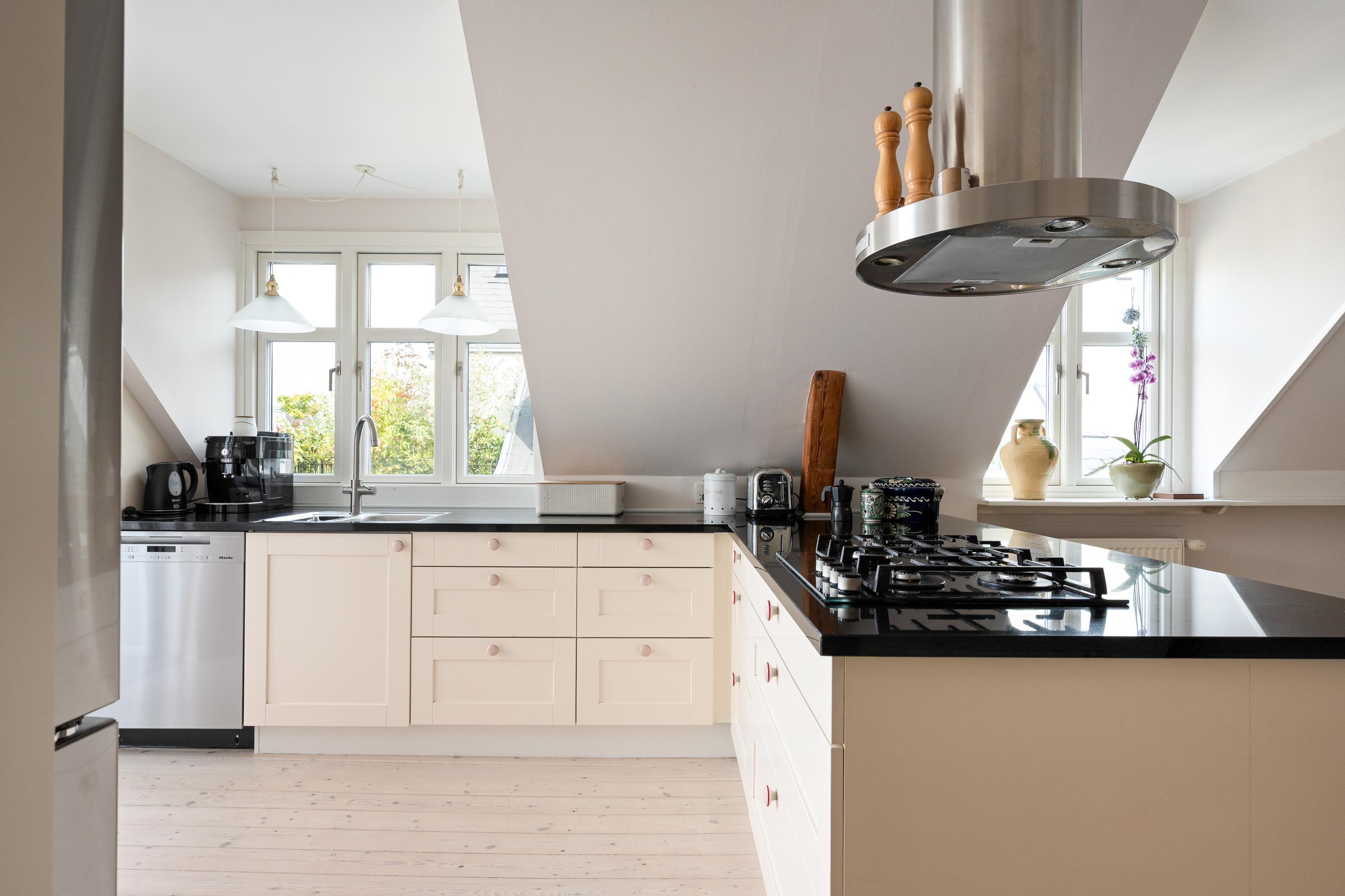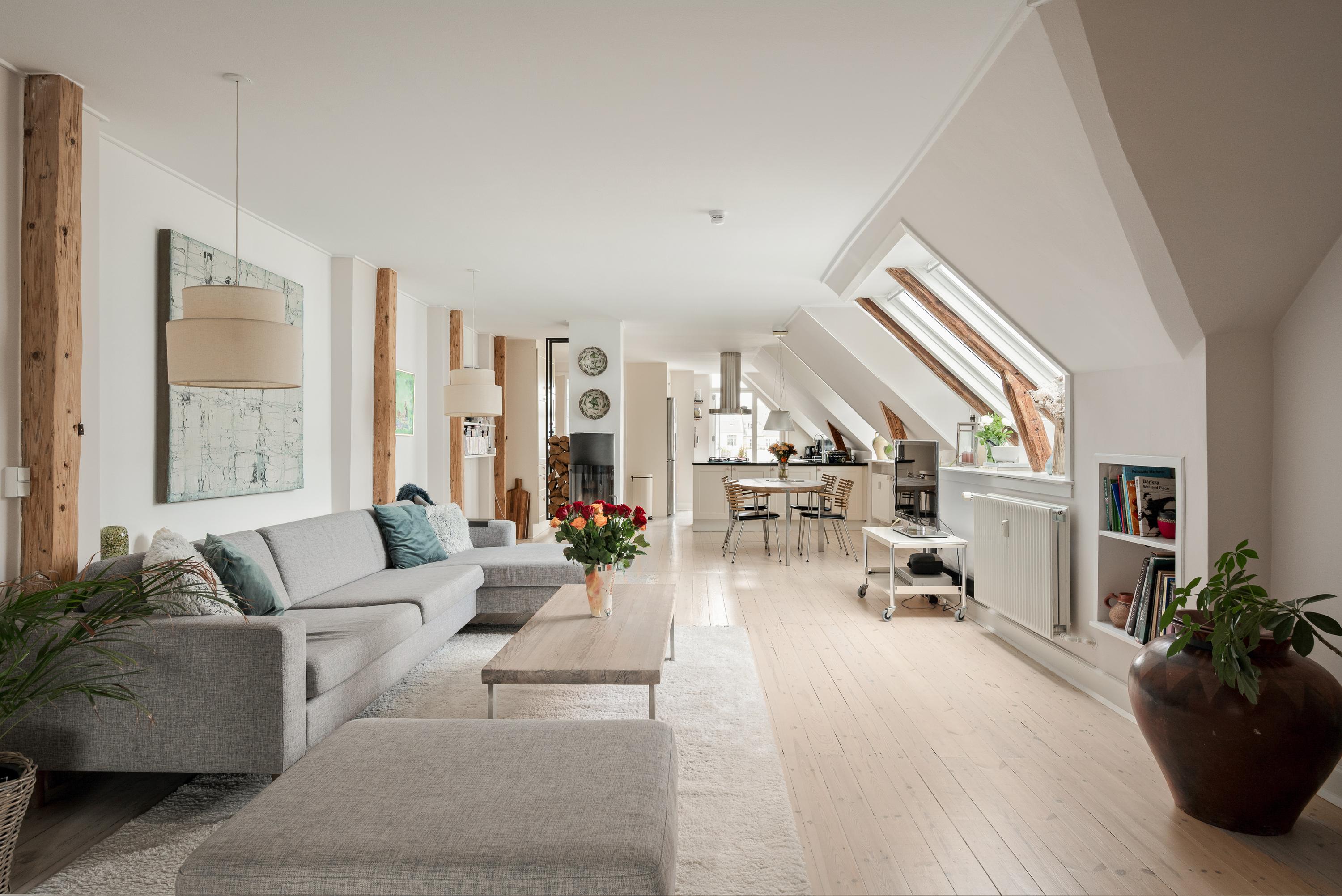 En helt særlig og unik bolig med masser at atmosfære - øverst oppe - med fantastisk lysindfald og en pragtfuld udsigt over byens tage i hjertet af Frederiksberg.
