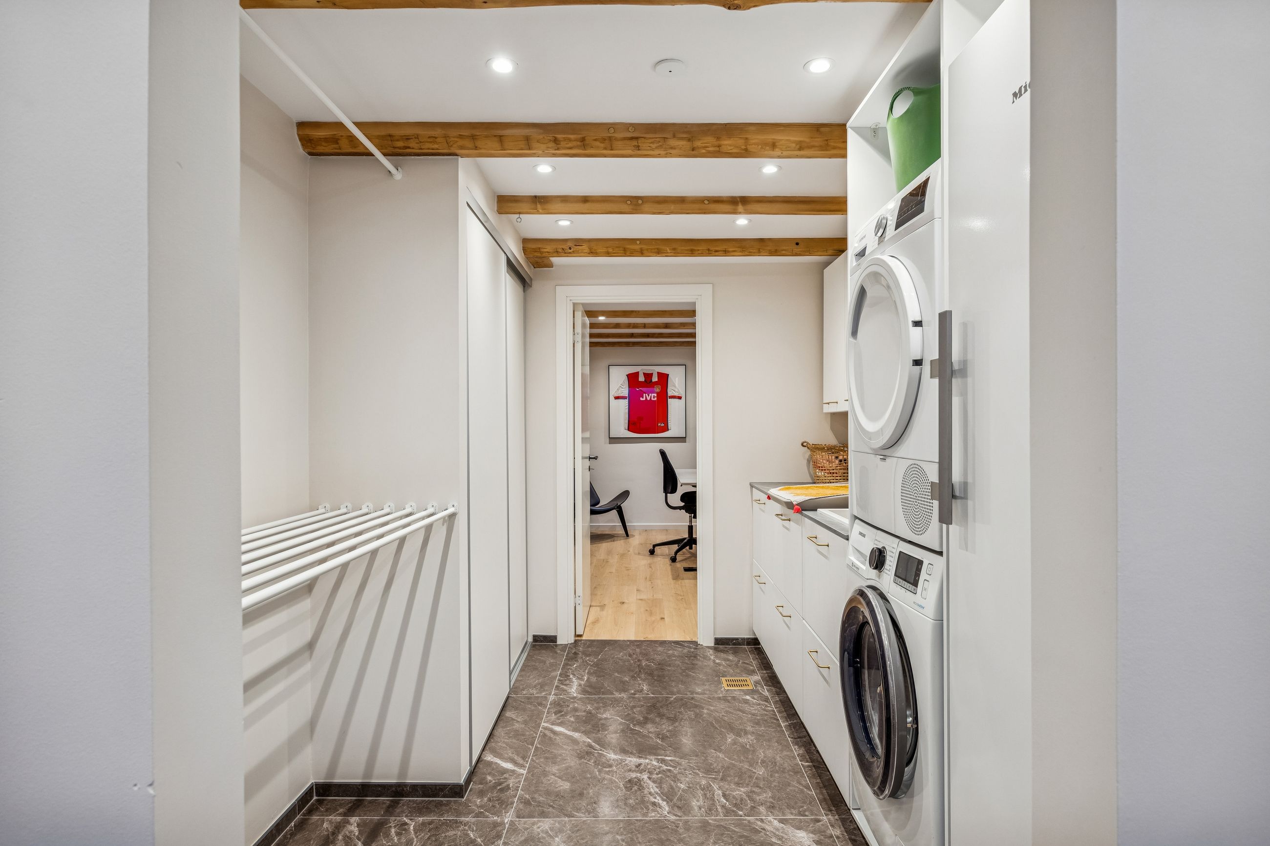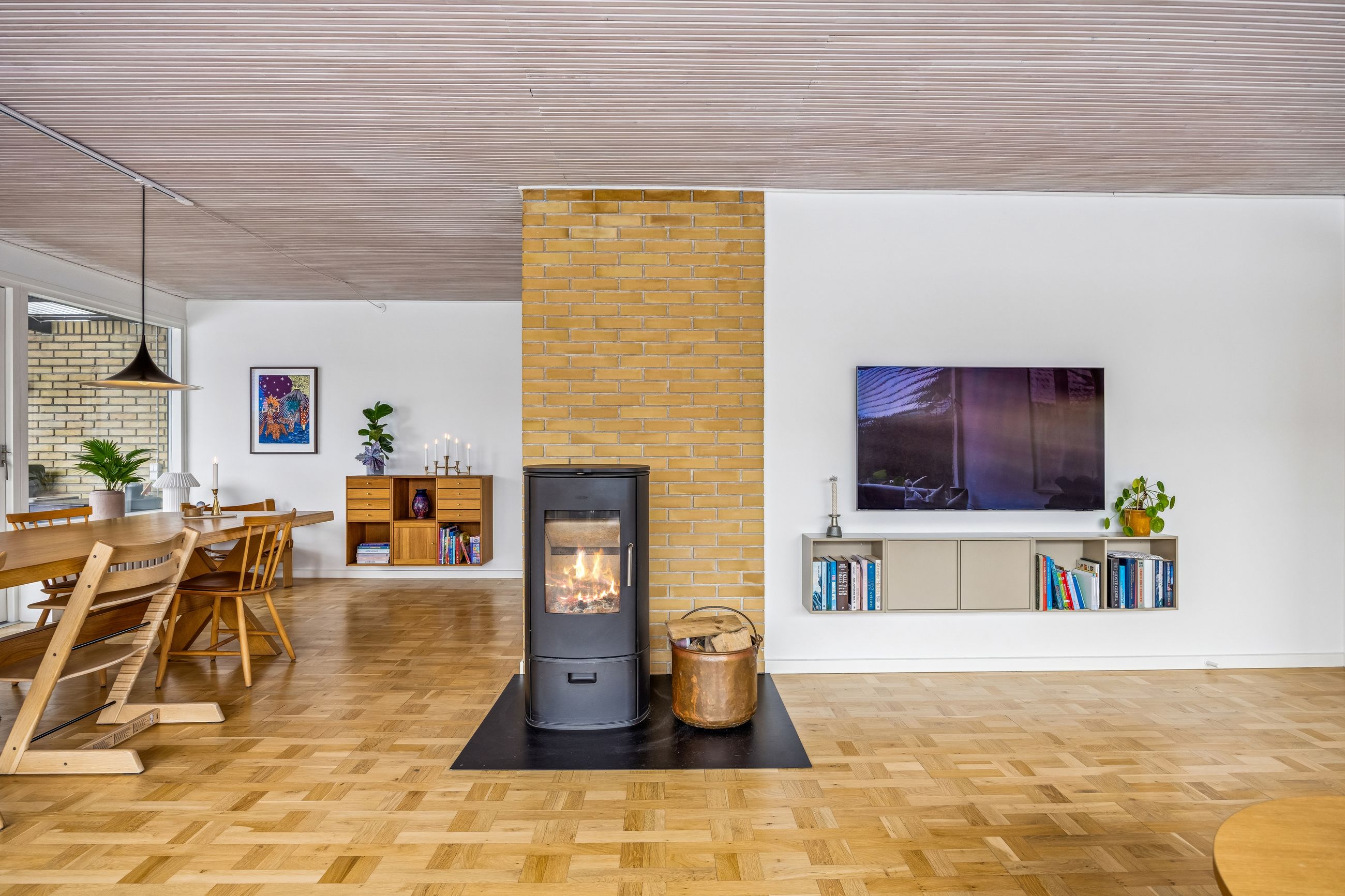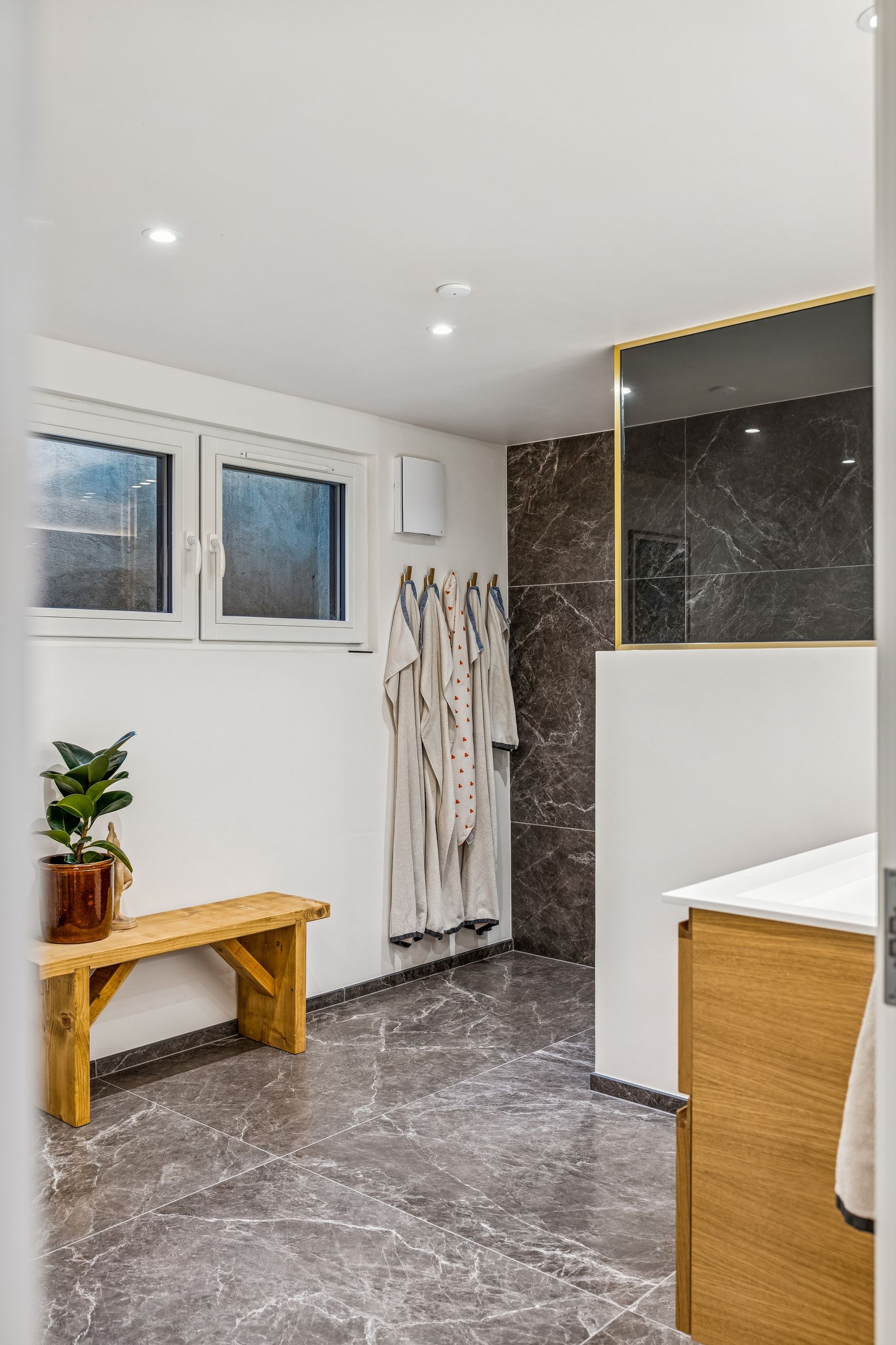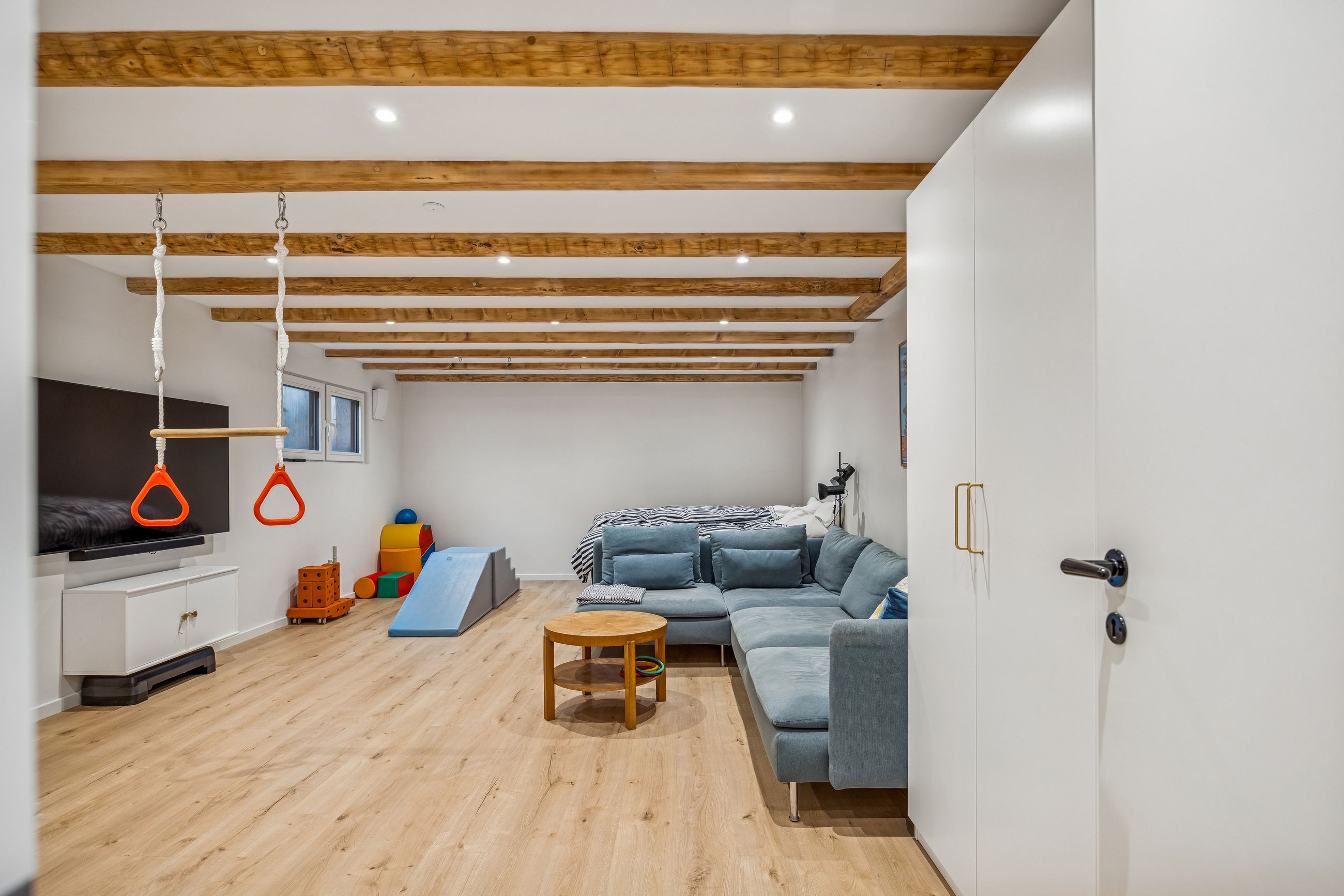 Kælderen er komplet renoveret i 2023 og står som et yderst brugbart ekstraetageplan. Her er gulvvarme i alle rum, ventilation fra Duka, isolerede vægge og en generel finish, der gør kælderen oplagt som hobby-, gæste- eller multirum.