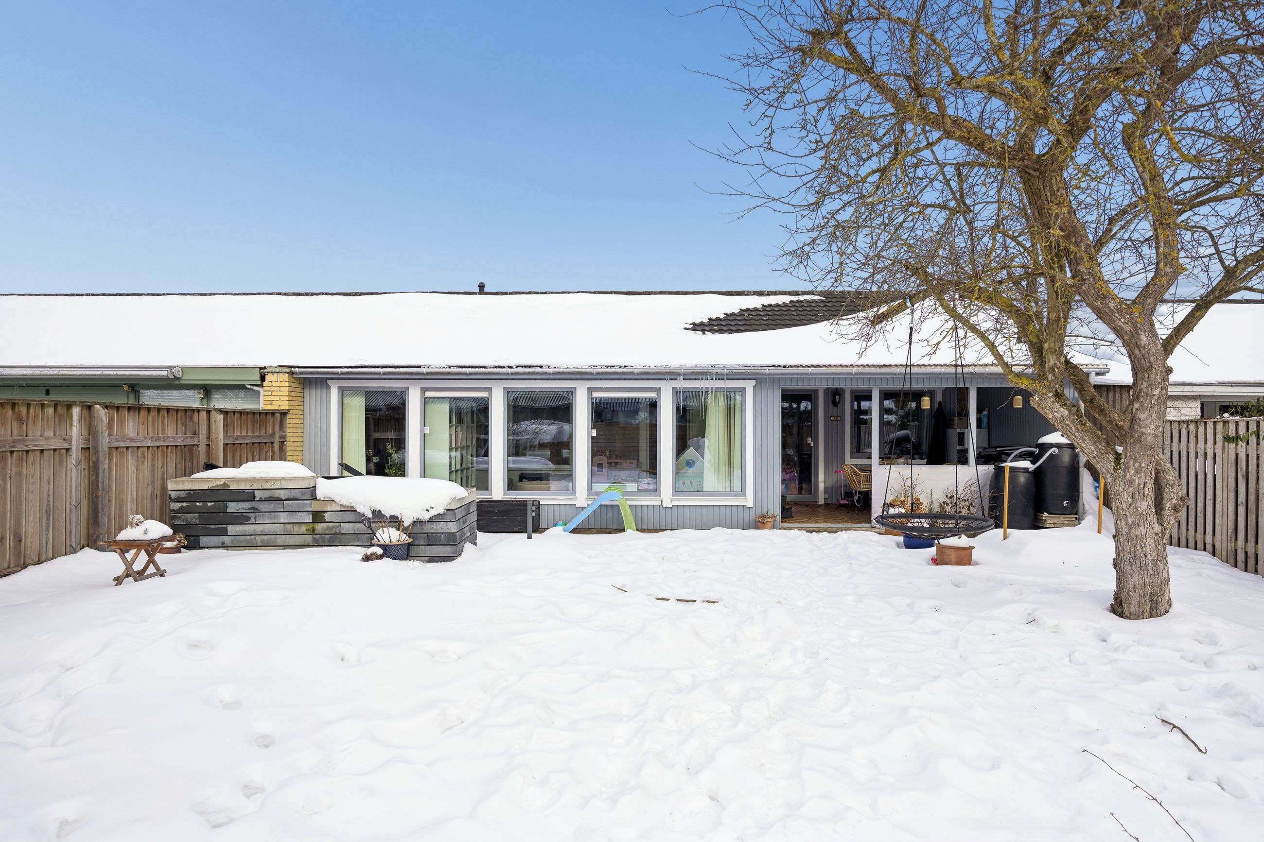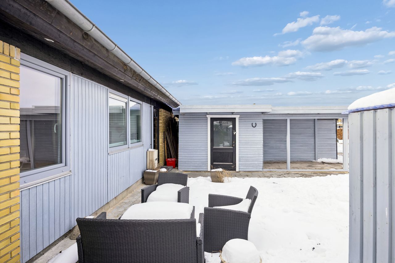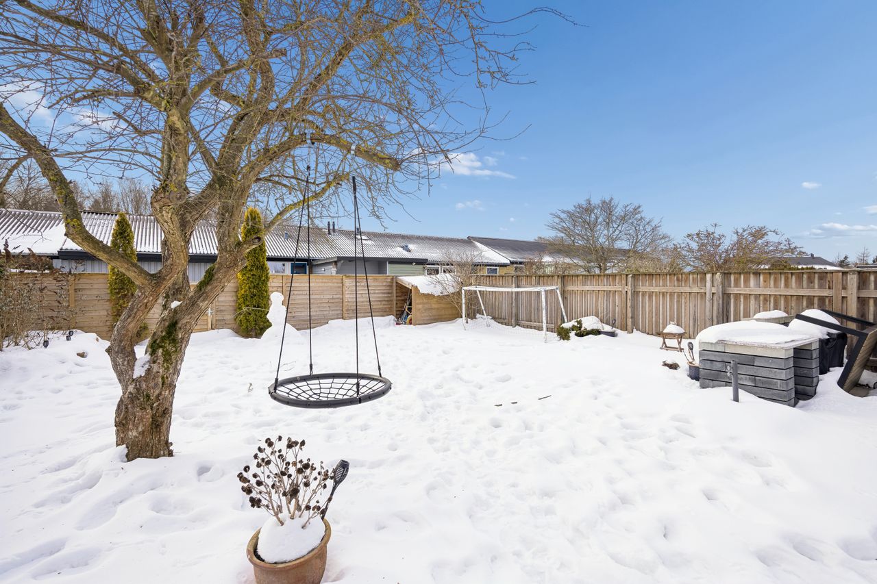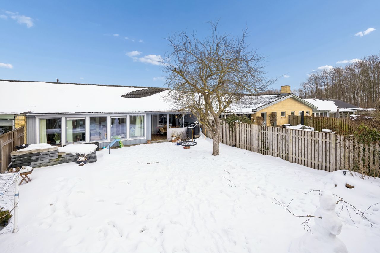 Den solrige have giver rig mulighed for at skabe dit eget lille paradis under åben himmel. Her kan børnene lege frit eller man kan slappe af med en god bog på terrassen mens solen varmer ansigtet. Beliggenheden i Hastrup gør denne ejendom særligt attraktiv for dem der ønsker ro og fred uden at gå på kompromis med nærhed til byen.