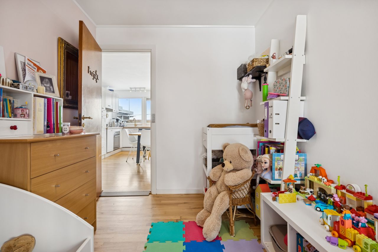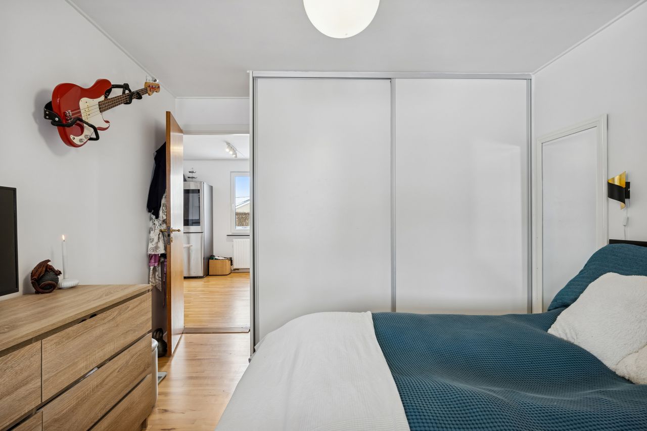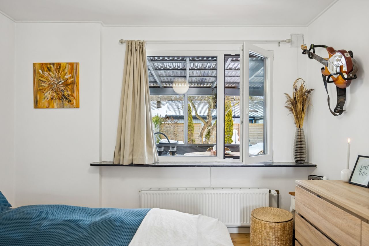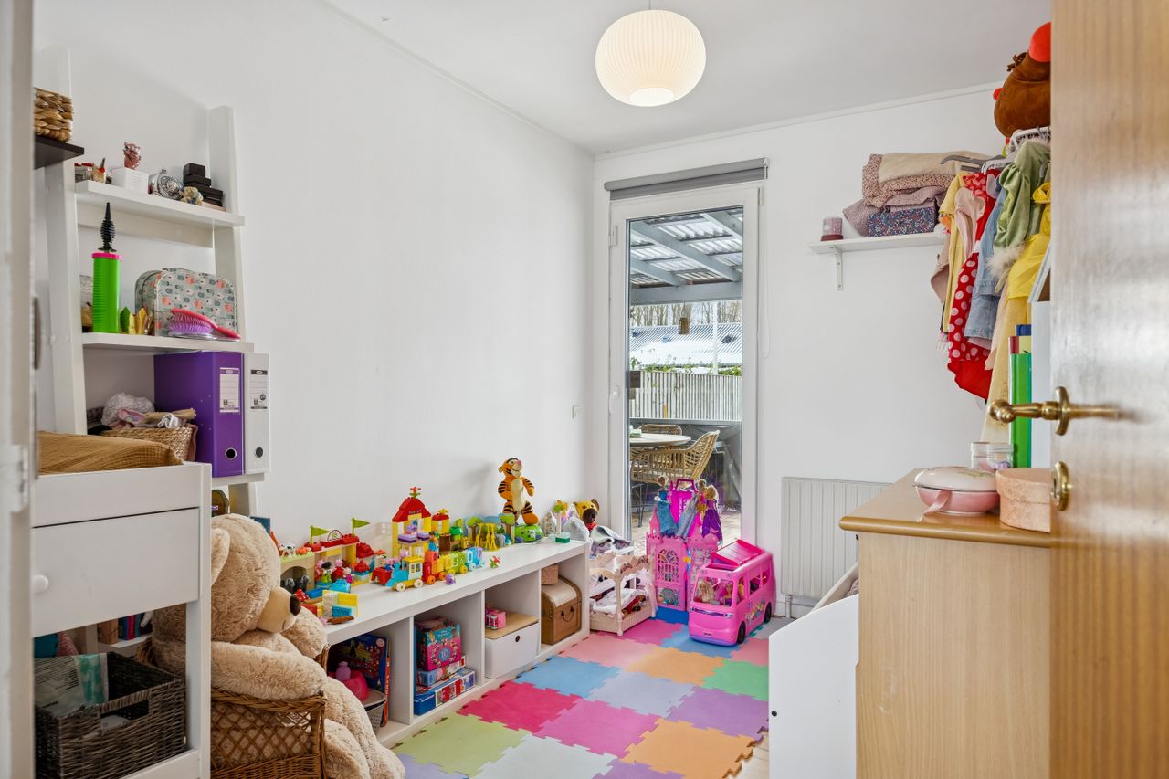 Indenfor mødes du af en rummelig entré med adgang til et praktisk bryggers, perfekt til opbevaring og dagligdags gøremål. Boligen rummer tre gode soveværelser, som kan indrettes efter behov – hvad enten det er børneværelser, kontor eller gæsteværelse. Badeværelset er funktionelt indrettet med alt nødvendigt udstyr.