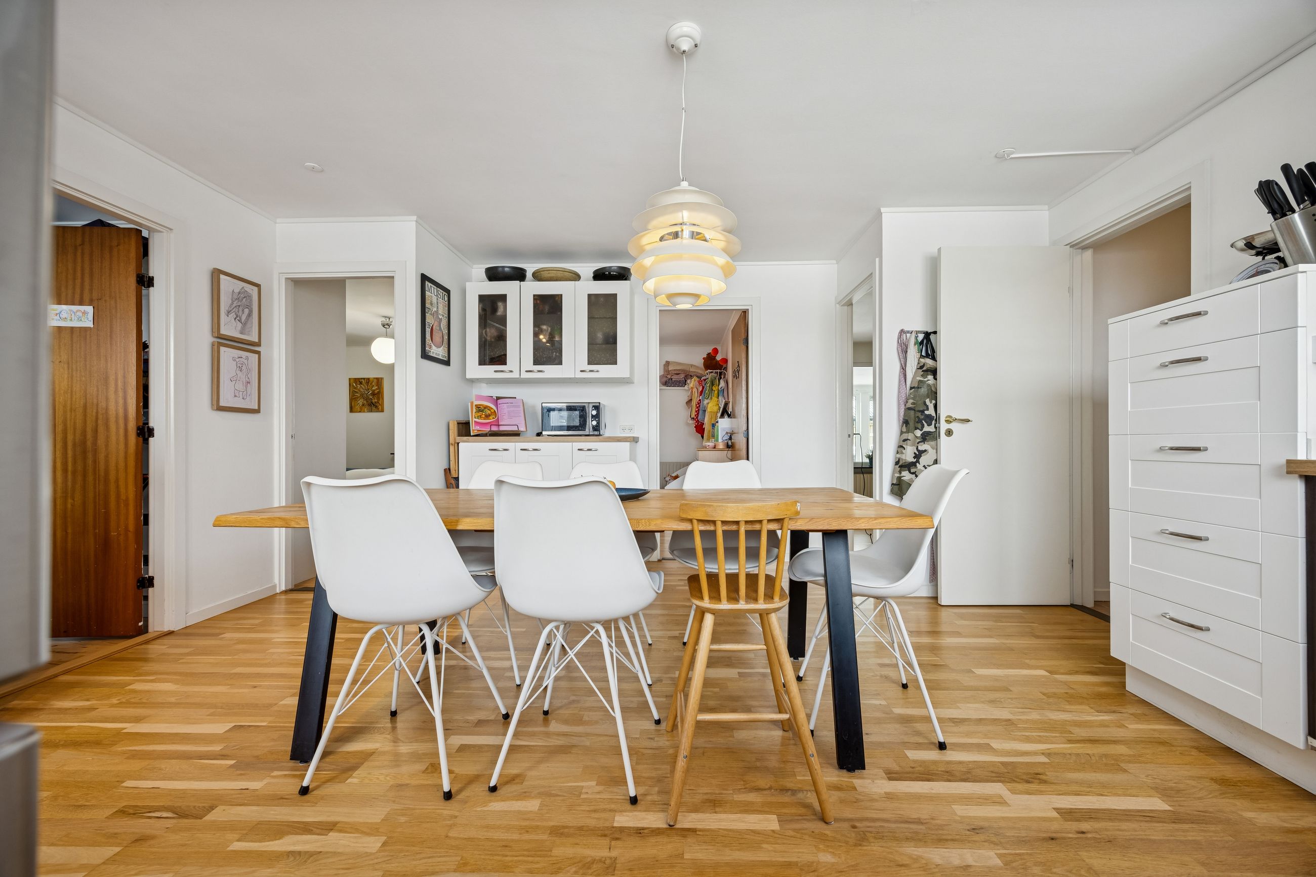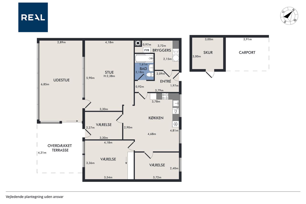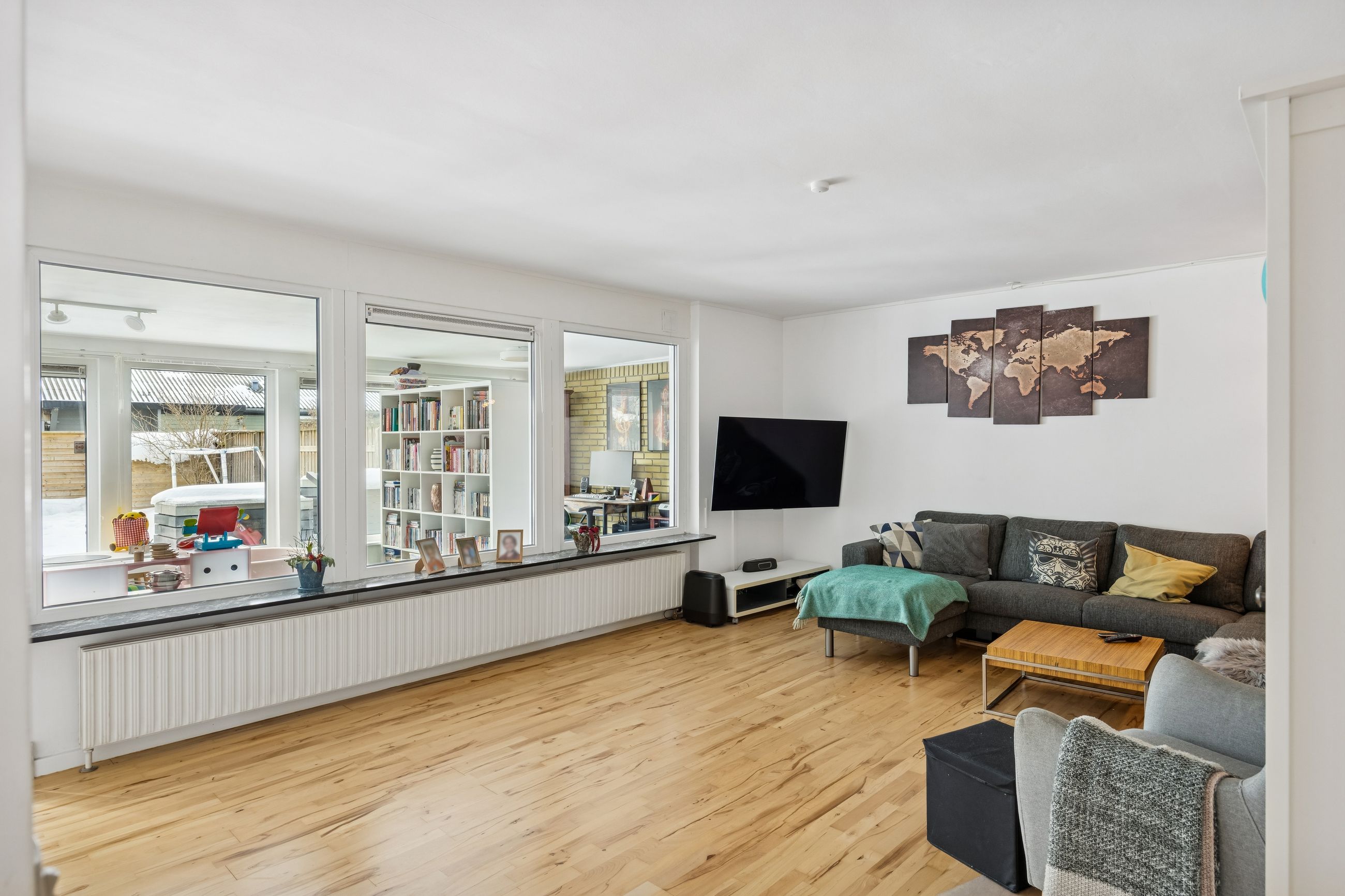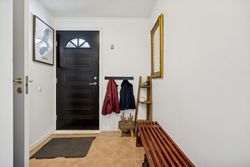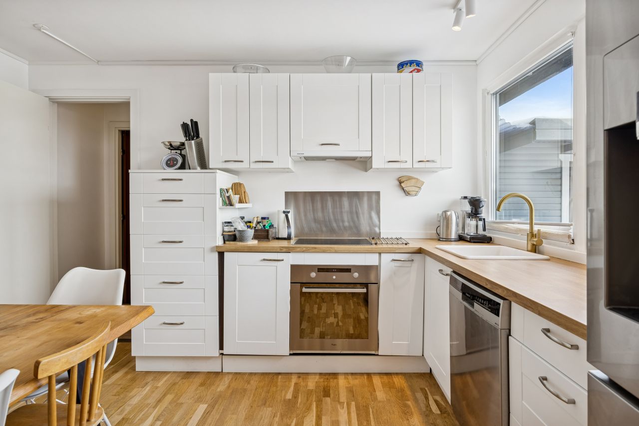 Indenfor mødes du af en rummelig entré med adgang til et praktisk bryggers, perfekt til opbevaring og dagligdags gøremål. Boligen rummer tre gode soveværelser, som kan indrettes efter behov – hvad enten det er børneværelser, kontor eller gæsteværelse. Badeværelset er funktionelt indrettet med alt nødvendigt udstyr.