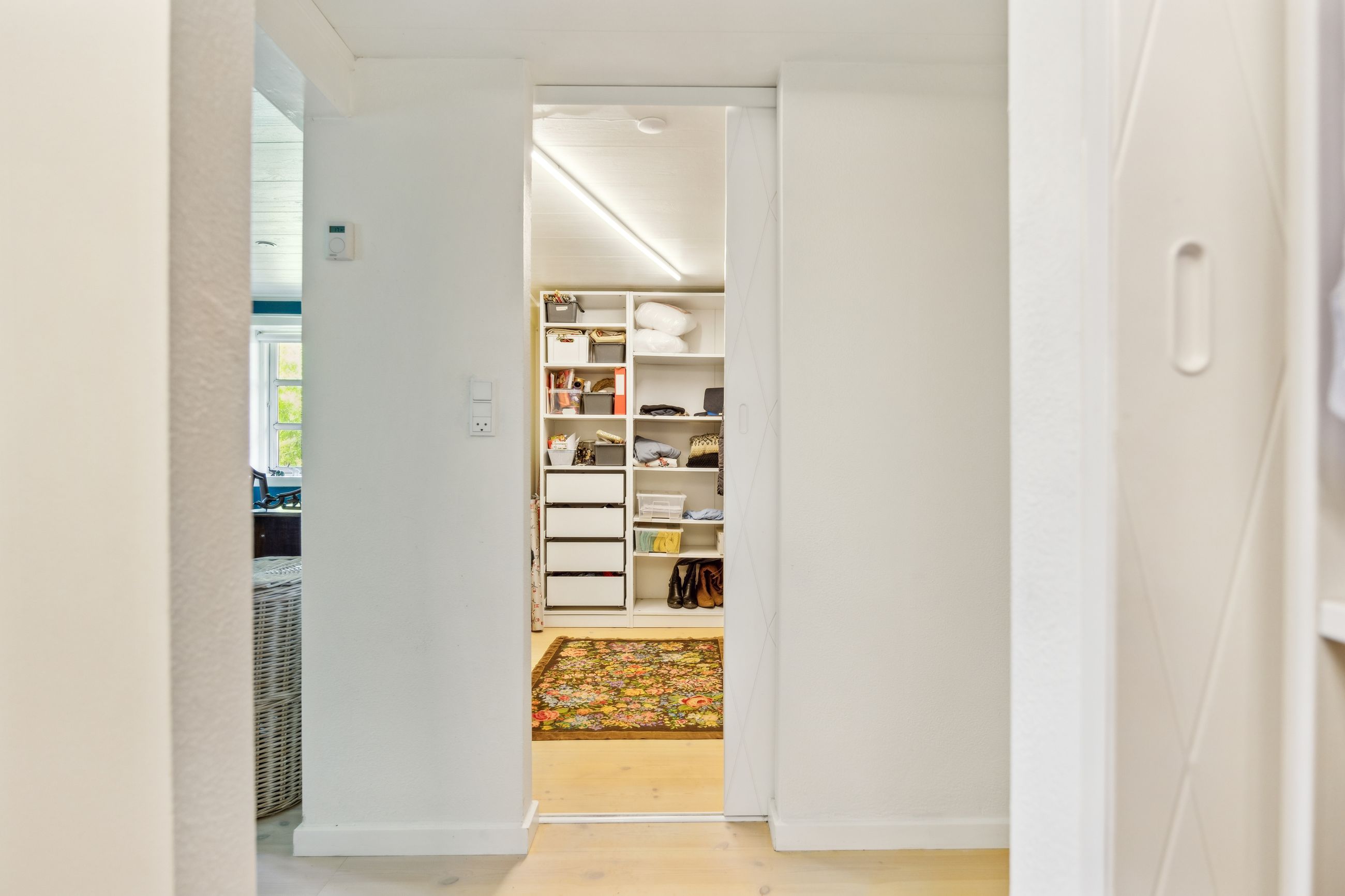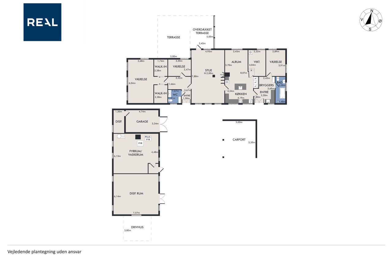 Gulvvarme er installeret i alle bade- og opholdsrum og er med separate rumstyringer med til at sikre maksimal komfort året rundt.