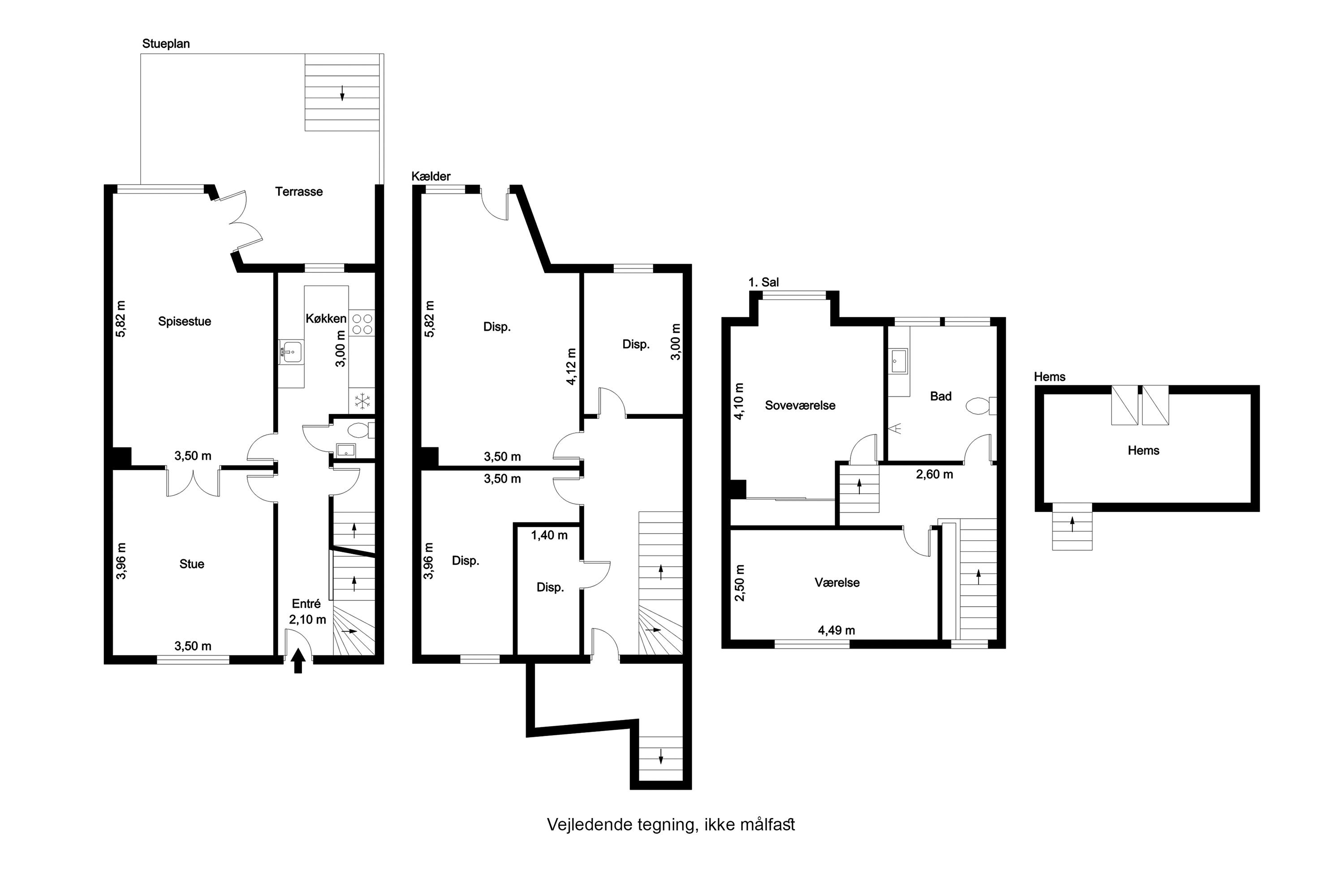 De 95 boligkvadratmeter suppleres af 57 m2 i den anvendelige kælder. Alle etager er opdateret i en lys og tidssvarende stil, der samtidig formår at understøtte den charme, som en bolig fra 1947 har svært ved at løbe fra. I vil især bemærke det skønne lysindfald, som sørger for, at både opholdsrum og værelser fremstår særdeles indbydende. Opholdsrummene består af 2 stuer en stuie - der idag fungerer som dagligstue og spisestue. Via den fine vindueskarnap i spisestuen~ har I direkte adgang til den hævede træterrasse i den lukkede baghave, og udsigten til Utterslev Mose hører med.