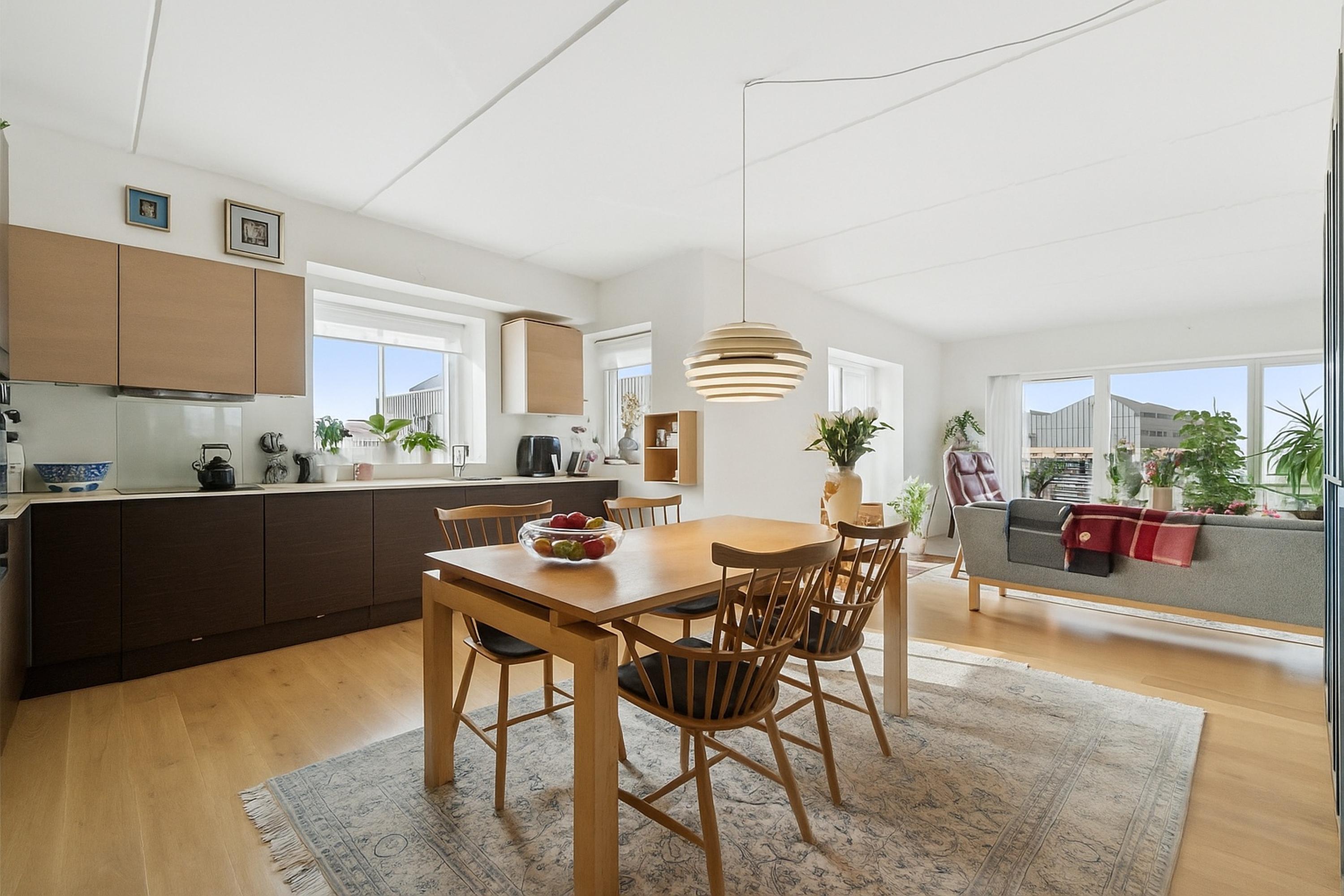 Boligen fremstår moderne, lys og elegant med flotte tilvalg som et opgraderet køkken og smukke