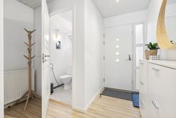 Entre med god plads til opbevaring af overtøj og sko, herfra adgang til stue samt gæstetoilet. Køkken med masser af bordplads. Stuen er med gode indretnings muligheder, hvor der blandt andet er god plads til spisebords- og sofaarrangement. Fra stuen er der udgang til den indbydende udestue, samt en dejlig og vedligeholdelsesvenlig sydvendt have.