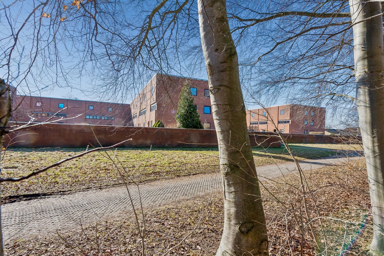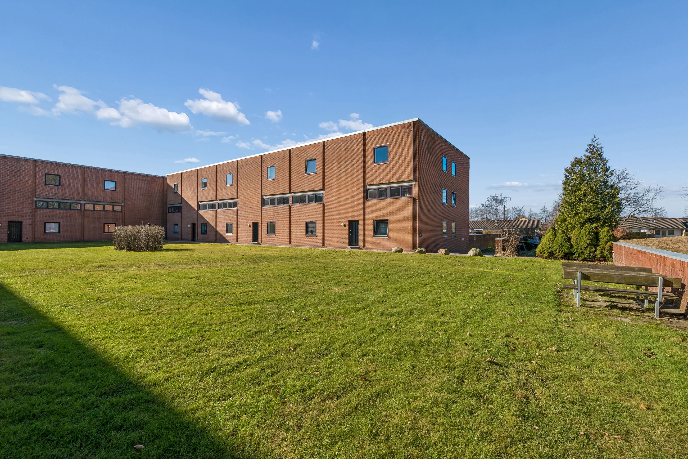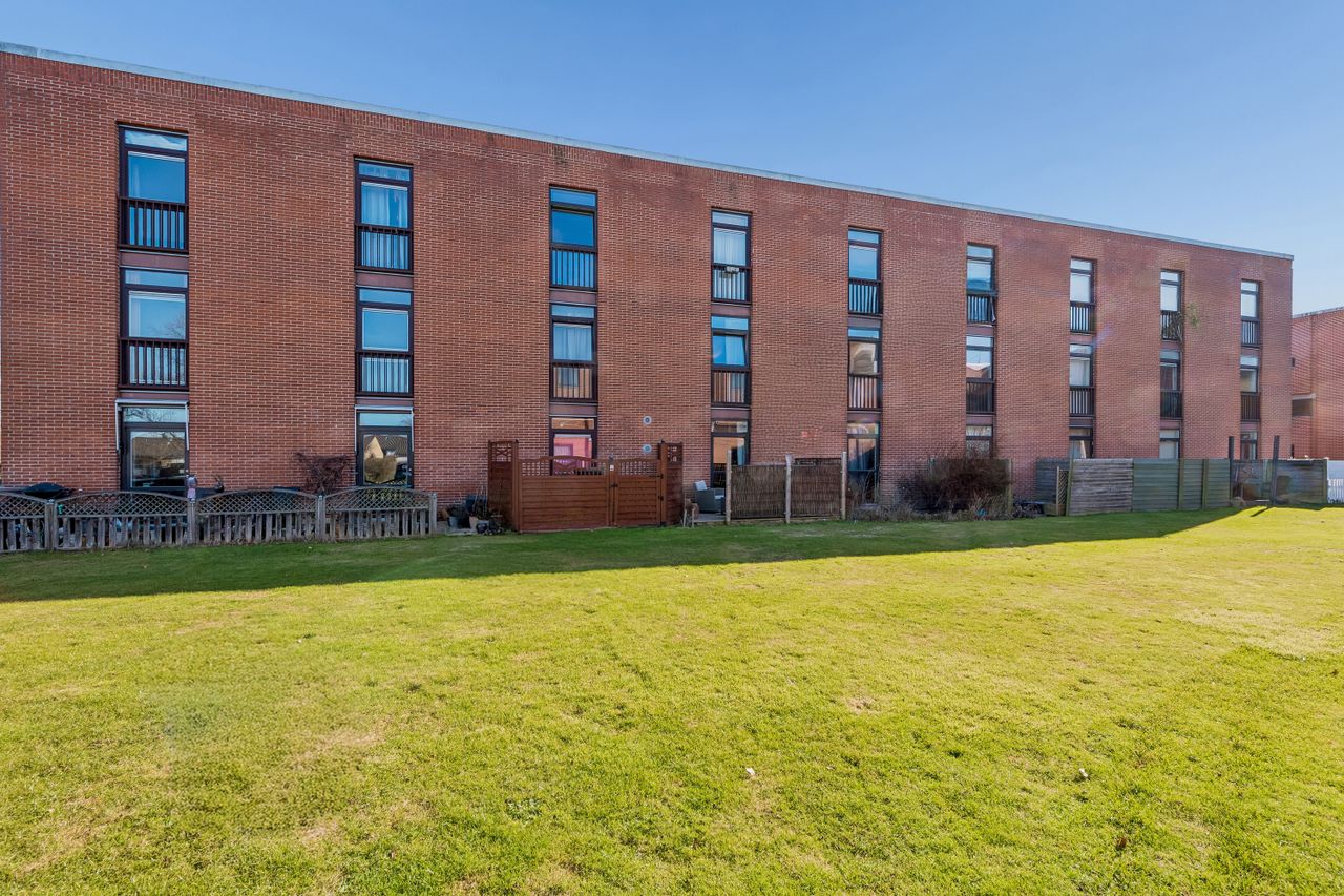 Ejendommen har adgang til fælles grønne områder, hvor man kan nyde udendørs aktiviteter eller blot slappe af i solen. Beliggenheden er ideel for dem der ønsker nærhed til naturen samtidig med bekvemmeligheden ved nærliggende indkøbsmuligheder og busforbindelser lige ved døren.