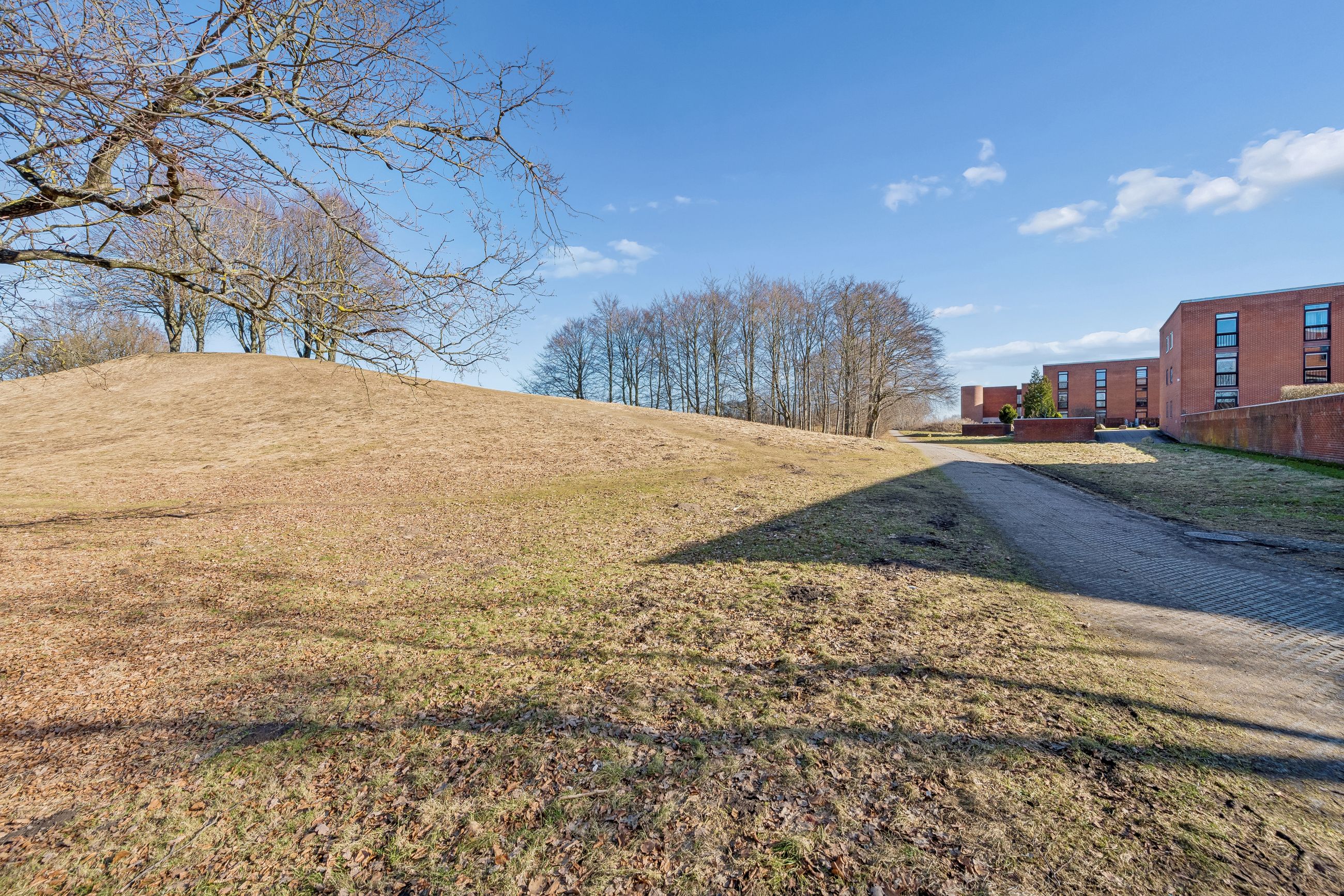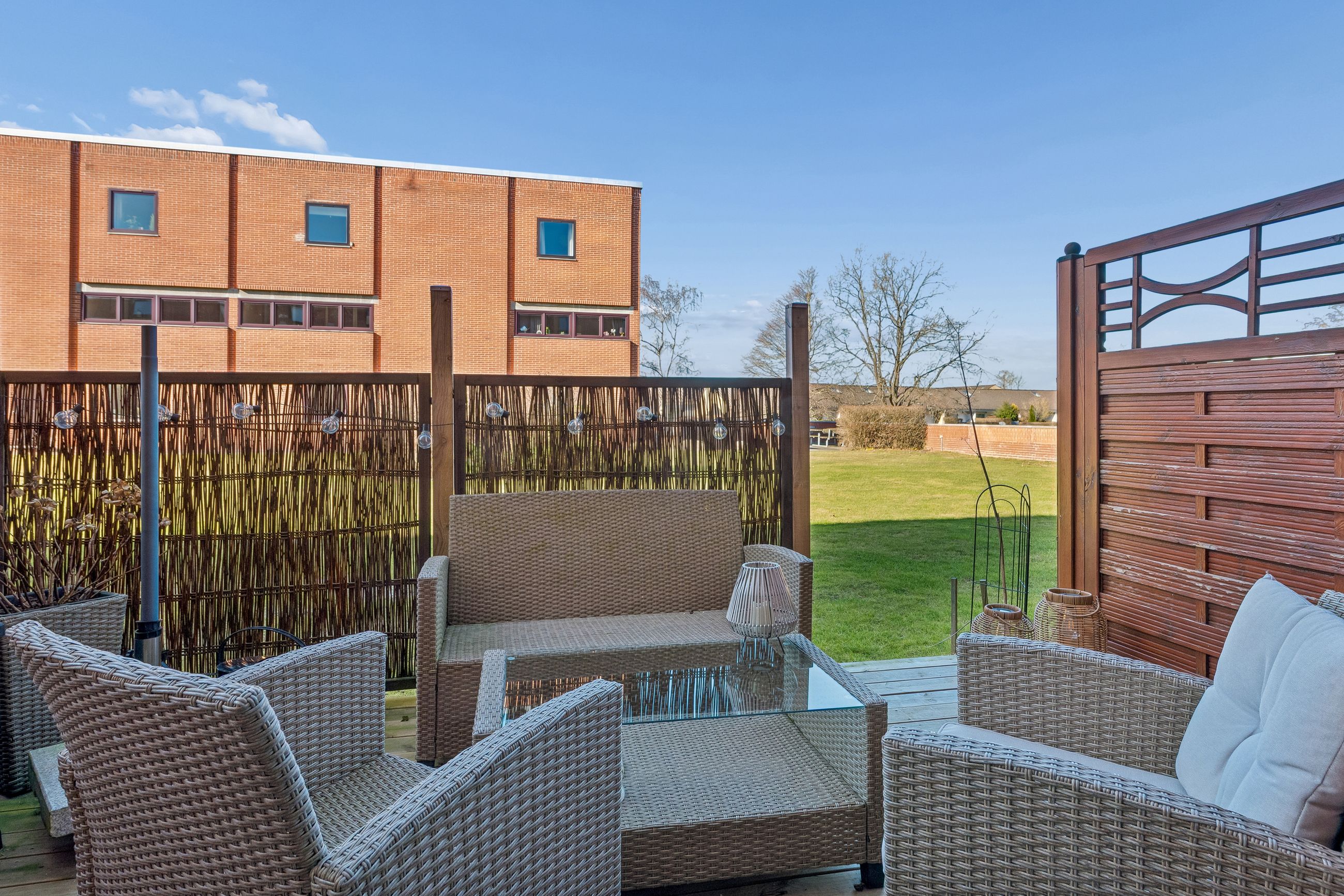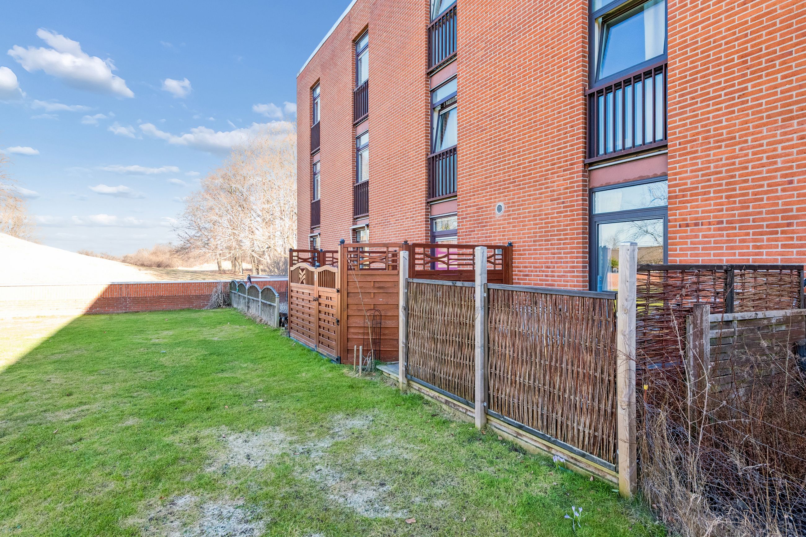Ejendommen har adgang til fælles grønne områder, hvor man kan nyde udendørs aktiviteter eller blot slappe af i solen. Beliggenheden er ideel for dem der ønsker nærhed til naturen samtidig med bekvemmeligheden ved nærliggende indkøbsmuligheder og busforbindelser lige ved døren.