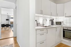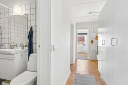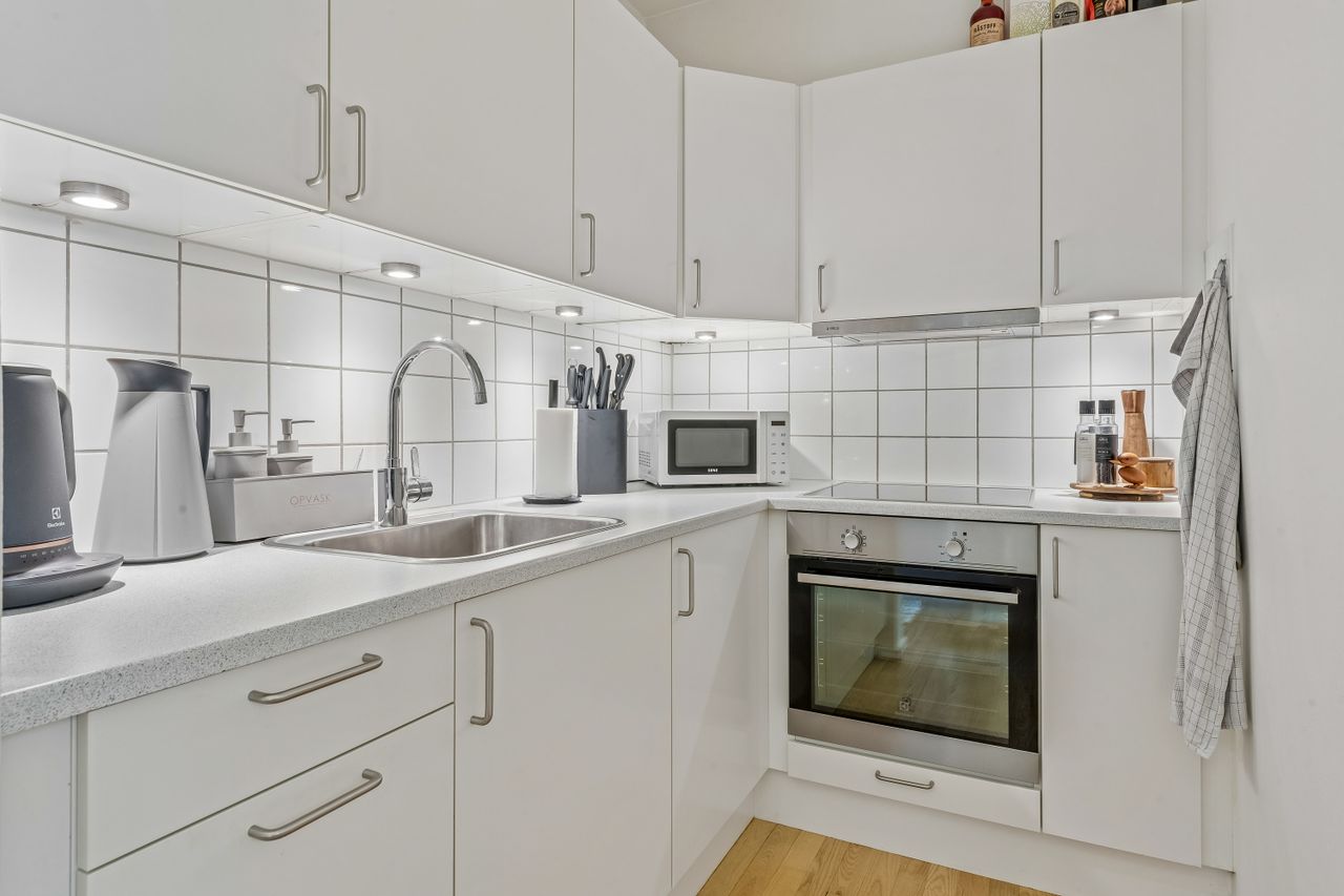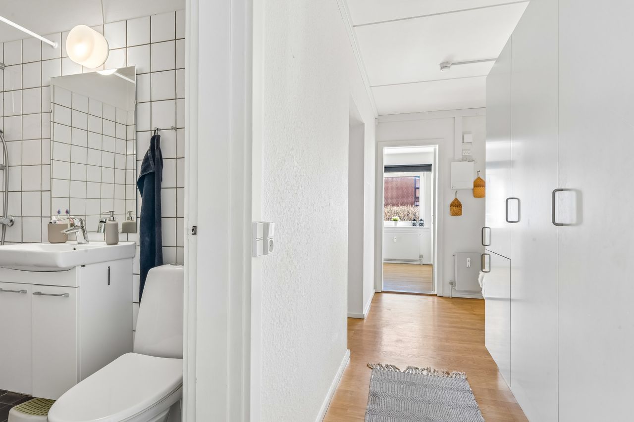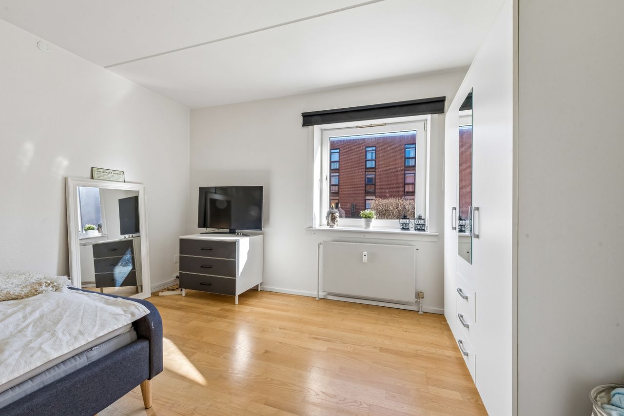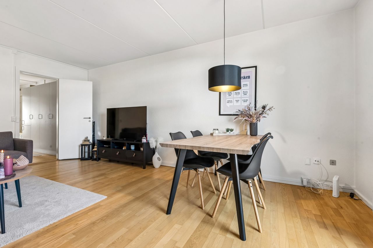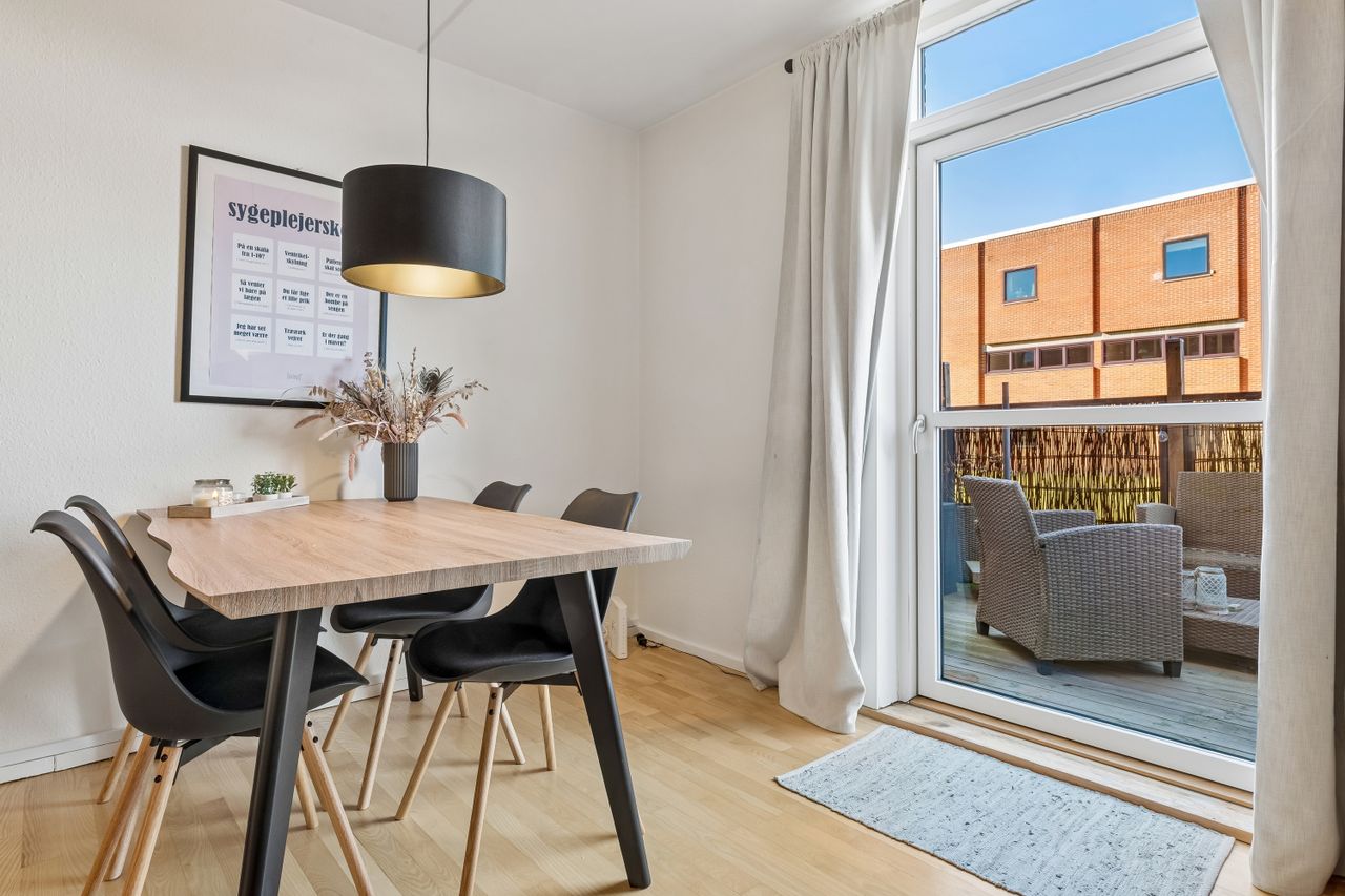Fra det øjeblik du træder ind i den lyse entre, vil du blive mødt af en følelse af hjemlig hygge og komfort. Stuen fremstår, som resten af lejligheden, meget vedligeholdt og har tilmed et skønt lysindfald. Fra stuen har du adgang til dejligt udemiljø, hvor solens stråler kan nydes. Køkkenet er indrettet med god bordplads og har godt lyst udtryk, hvilket gør dagligdagens madlavning til en leg. Det rummelige og renoverede badeværelse er indrettet med flotte fliser og et praktisk brusebad, som gør morgenrutinen til en fornøjelse. Sidst men ikke mindst får du godt rummelig soveværelse, hvor der er rigeligt plads til både seng og opbevaring.
