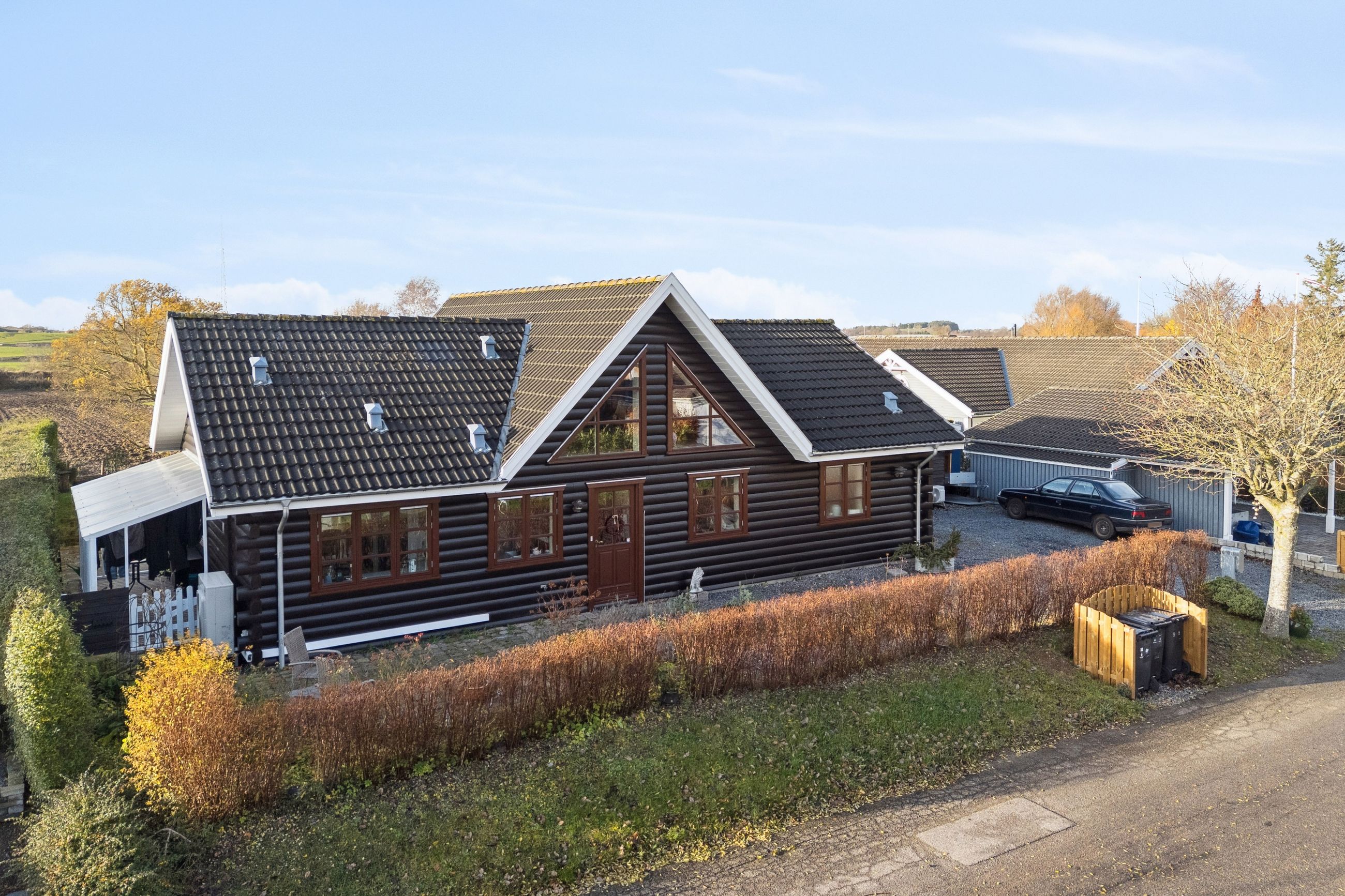 Stort, moderne bjælkehus med fin udsigt til markerne