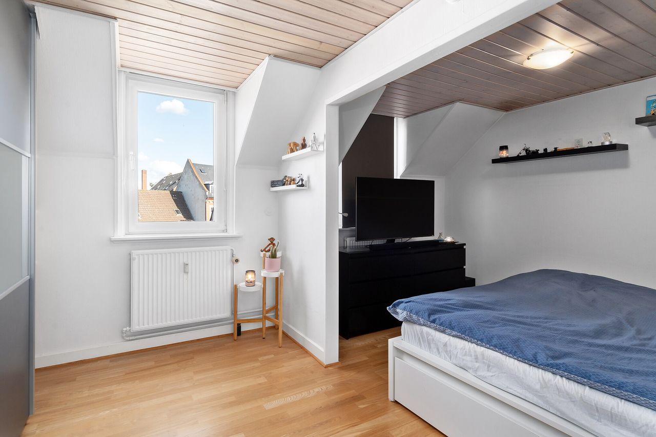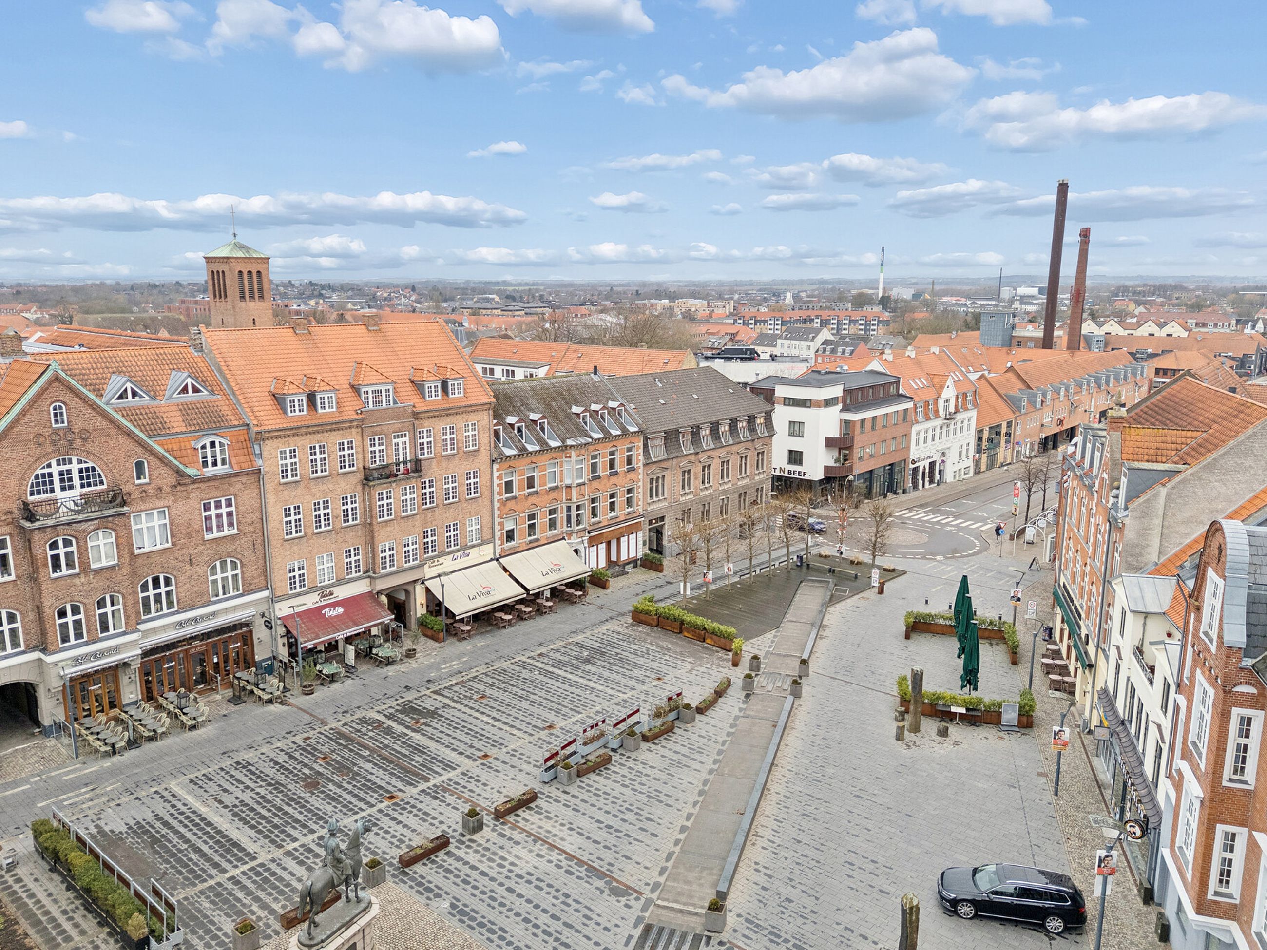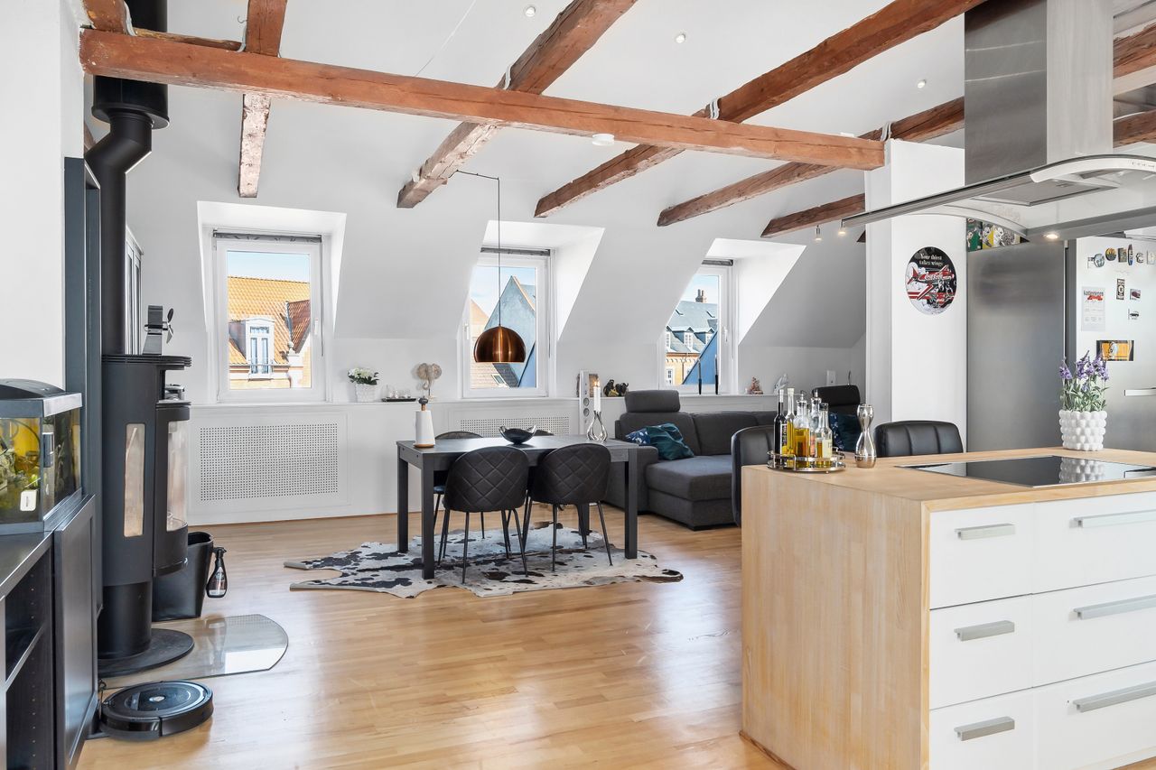 Nu udbydes denne helt særlige og fantastiske lejlighed med en beliggenhed midt på Schweizerpladsen i Slagelse. Her kan I se frem til at nyde tilværelsen i luksuriøse omgivelser med egen tagterrasse og kig til byens tage. Boligen har et meget højt kvalitetsniveau med mange flotte detaljer, og placeringen på tredje sal sikrer jer den pragtfulde udsigt.