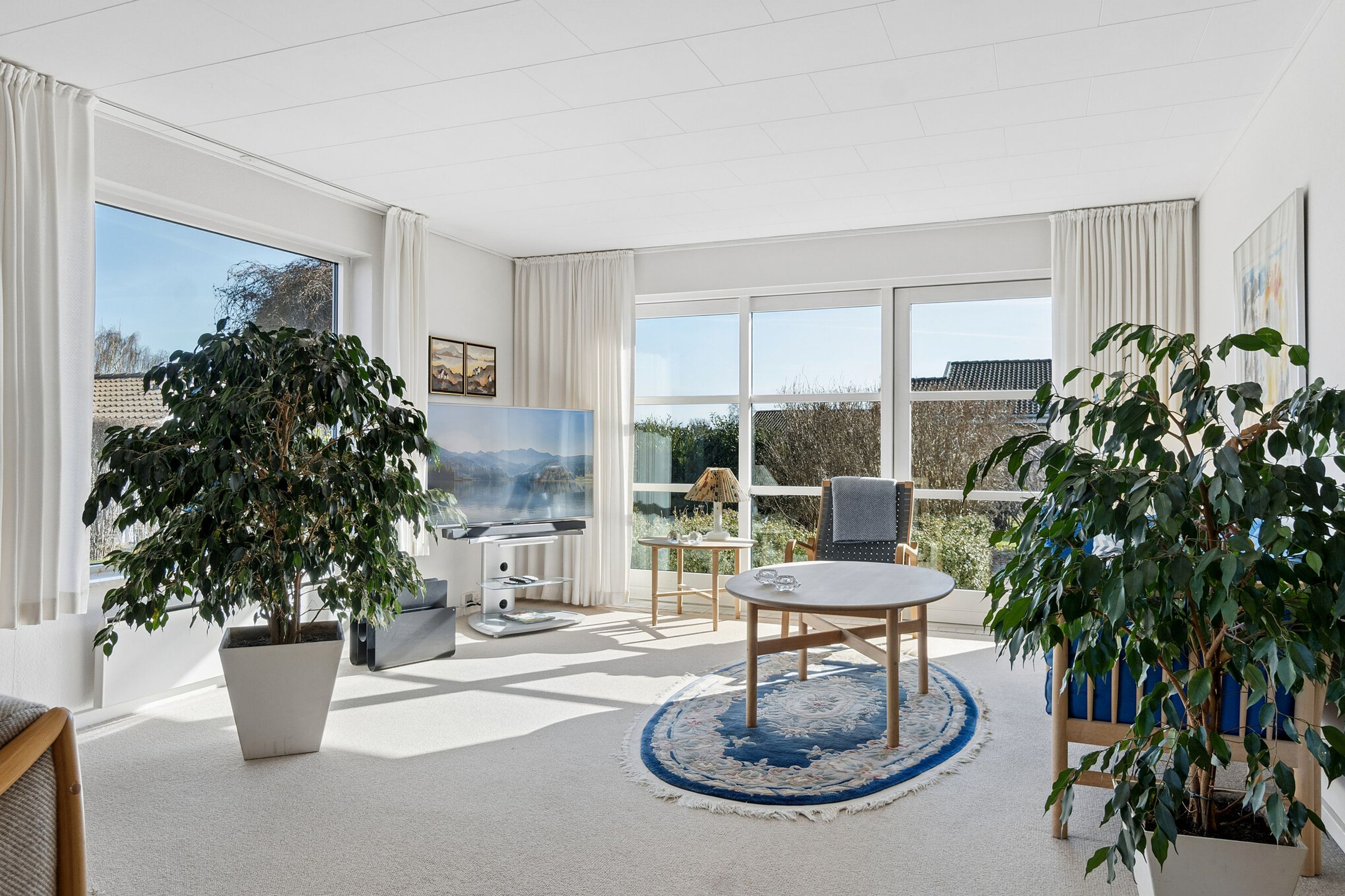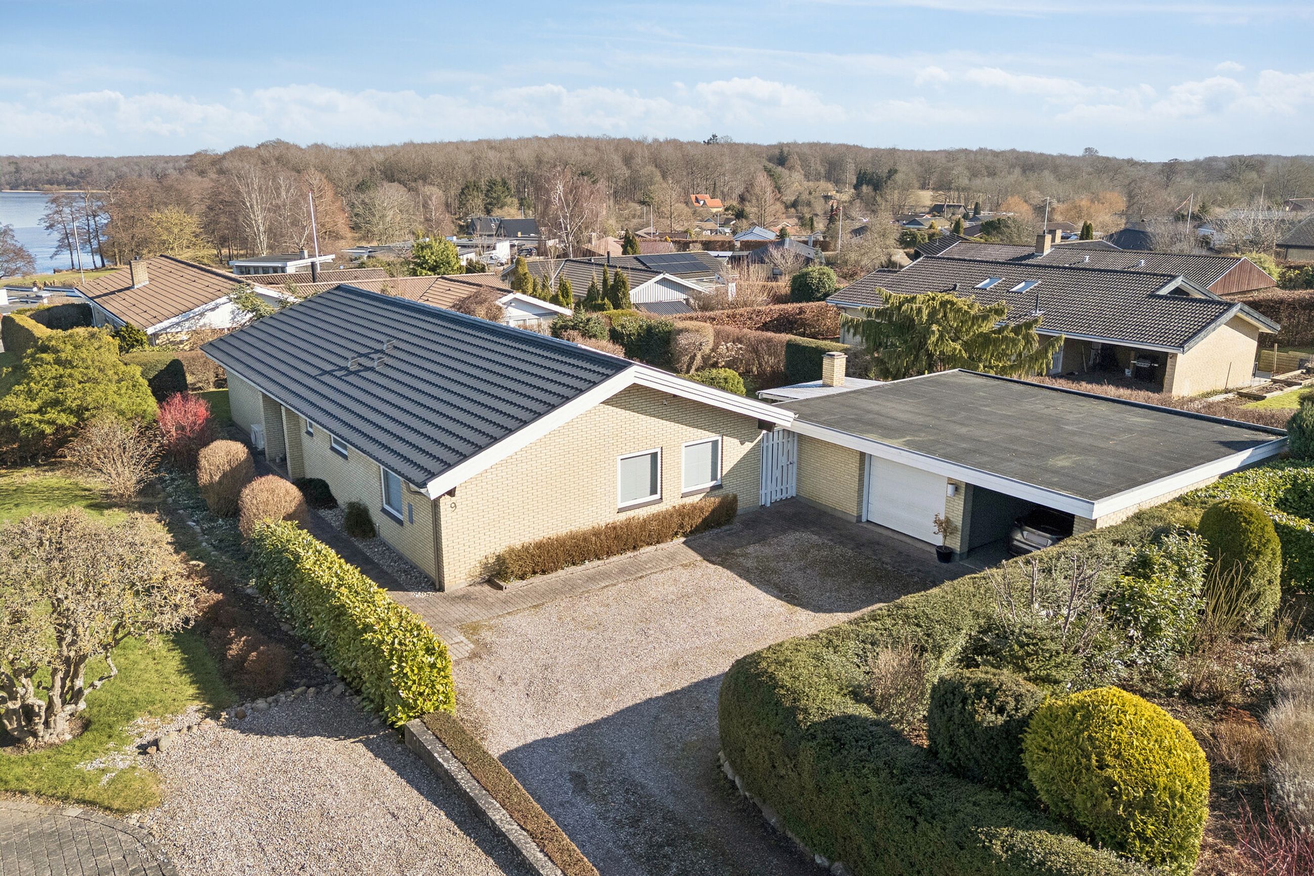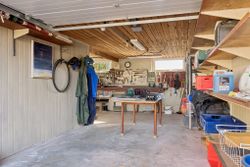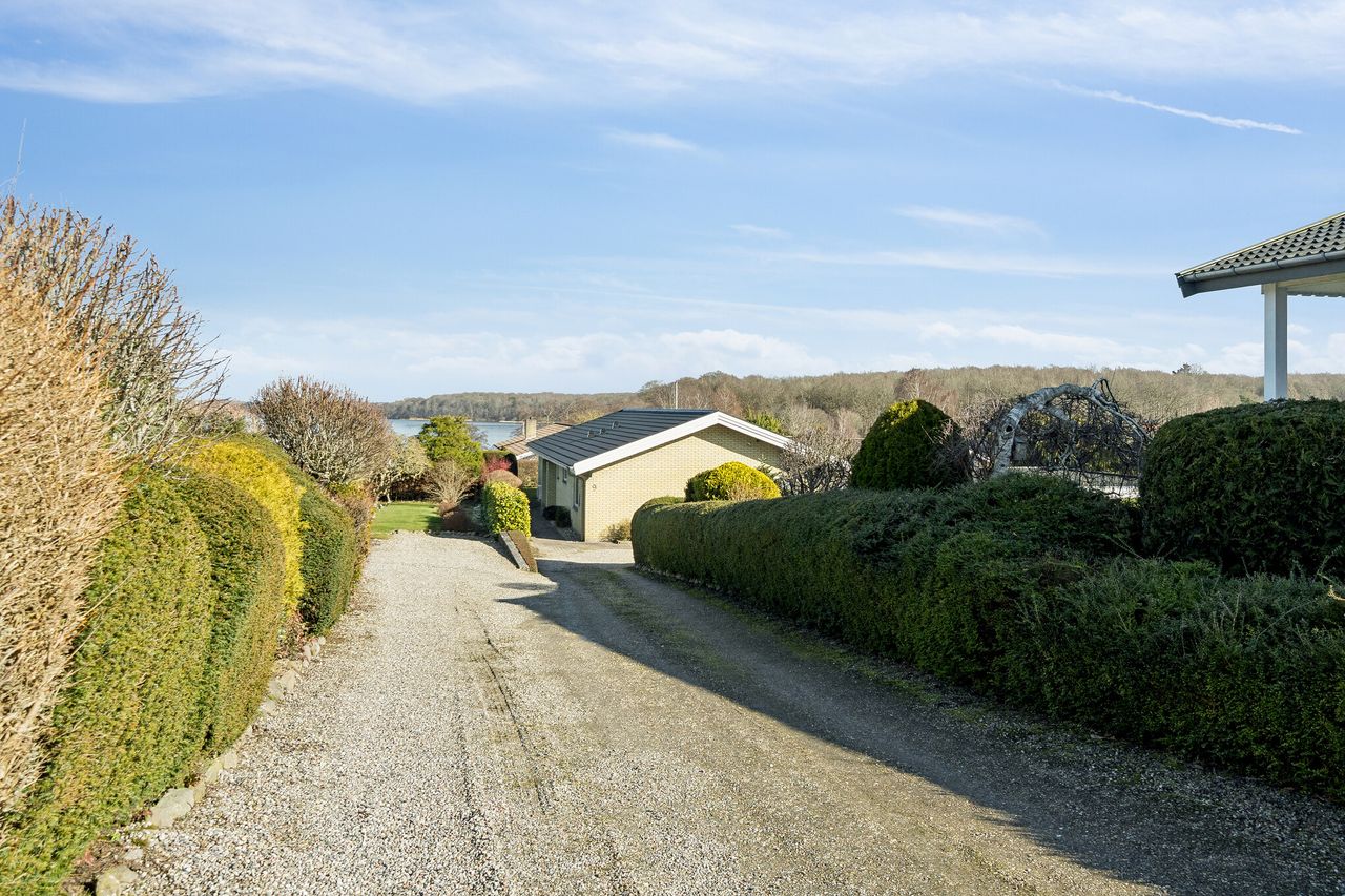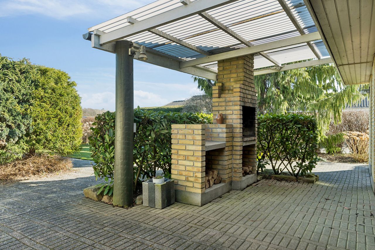 Udenfor venter en dejlig, lukket have, hvor solen kan nydes det meste af dagen i selskab med naturens rige dyreliv. I forlængelse af huset får I glæde af både en udestue og et halvtag med udendørs pejs, som skaber perfekte rammer for afslapning året rundt. I kan ligeledes frydes over det fine kig til Tuelsø. Faciliteterne fuldendes af en garage med elektrisk port, et mindre værksted samt en carport med tilhørende redskabsrum, så I har rigelig plads til både hobbyer og praktisk opbevaring.