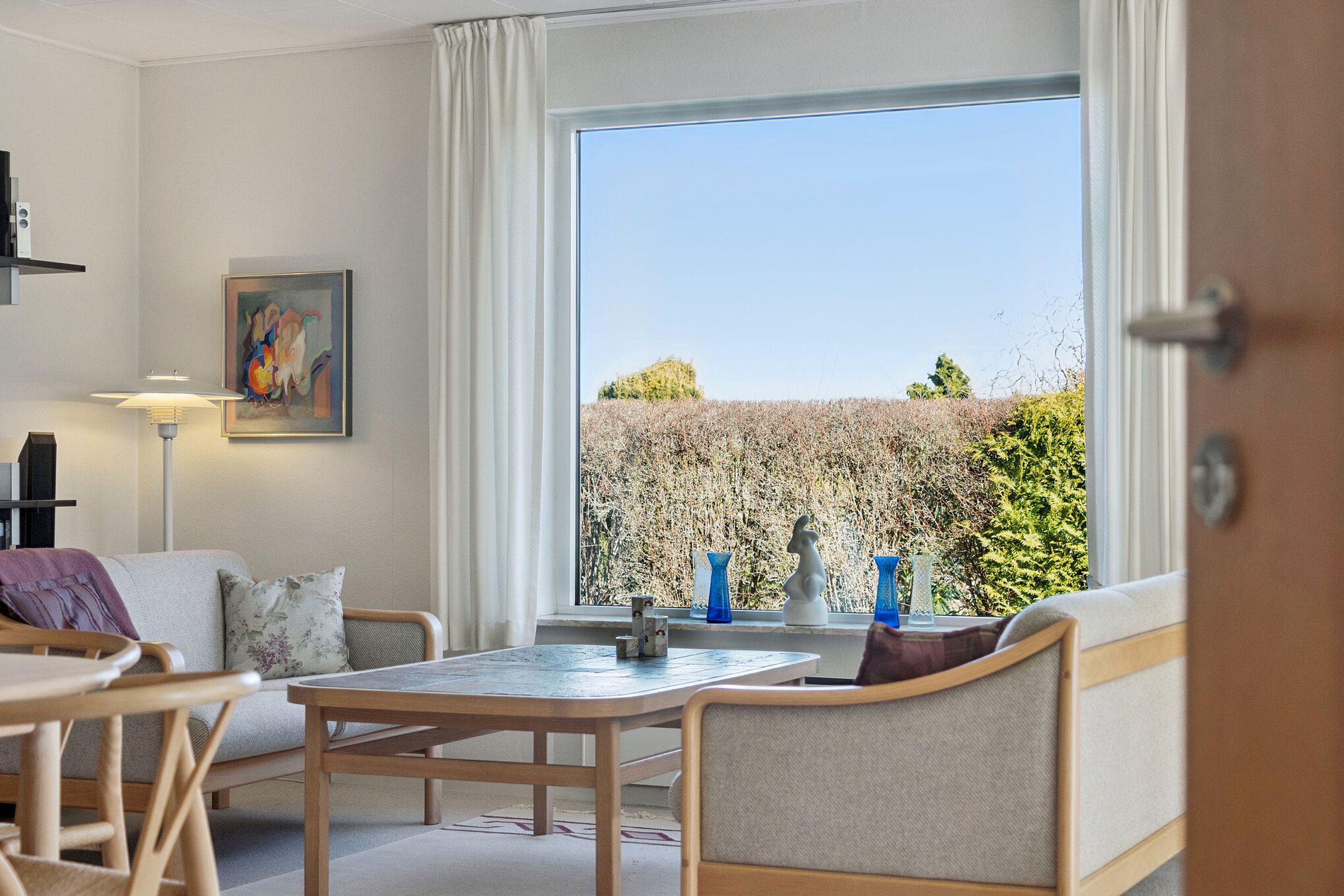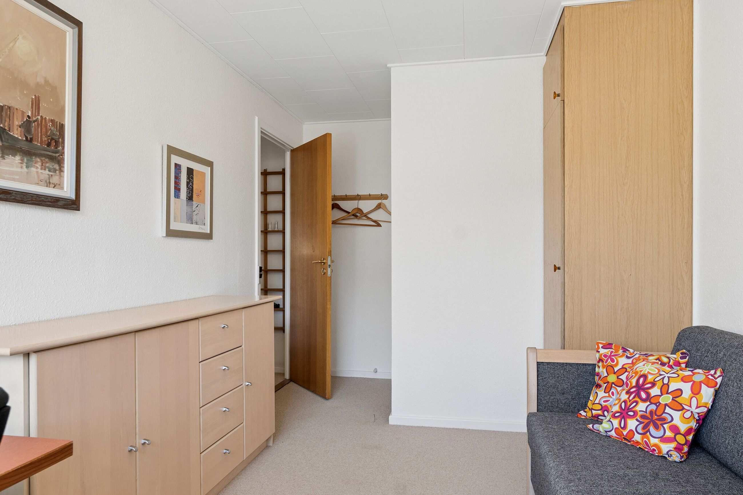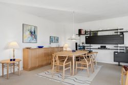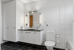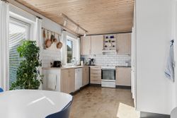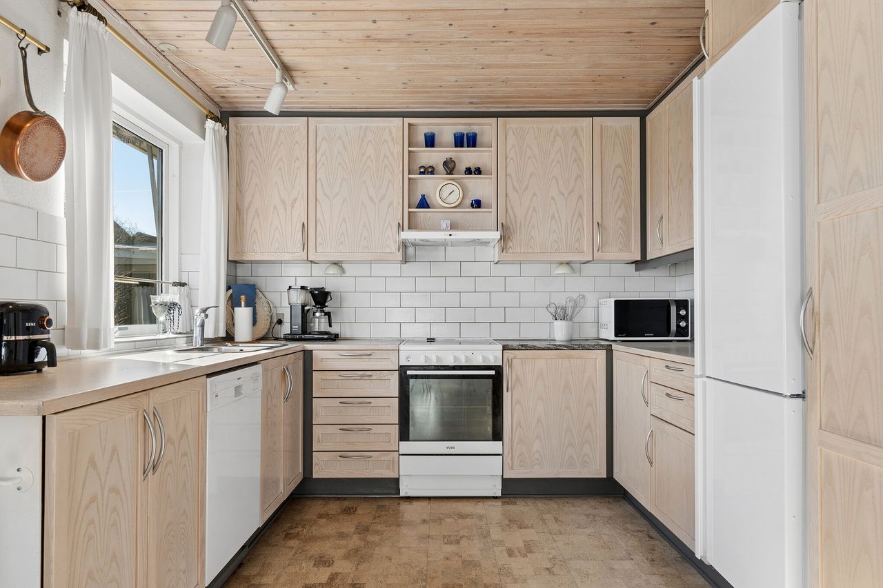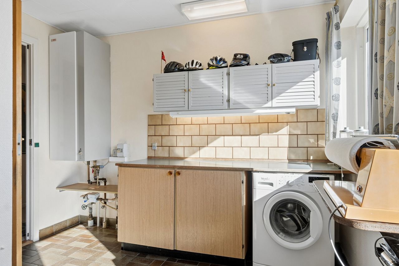 Villaen byder velkommen i en rummelig entré, der åbner op til en fordelingsgang med adgang til et gæstetoilet med gulvvarme. Videre finder I hjemmets samlingspunkt i form af det lyse køkken-alrum, hvor lågerne er opdateret, og her er god plads til at samles omkring spisebordet. I kan også glæde jer over en skøn stue, hvor store vinduespartier trækker havens liv helt ind i rummet. Ejendommen byder videre på tre værelser samt et badeværelse med kar, bruseniche og jeres egen sauna, mens et funktionelt bryggers gør hverdagens logistik enkel.