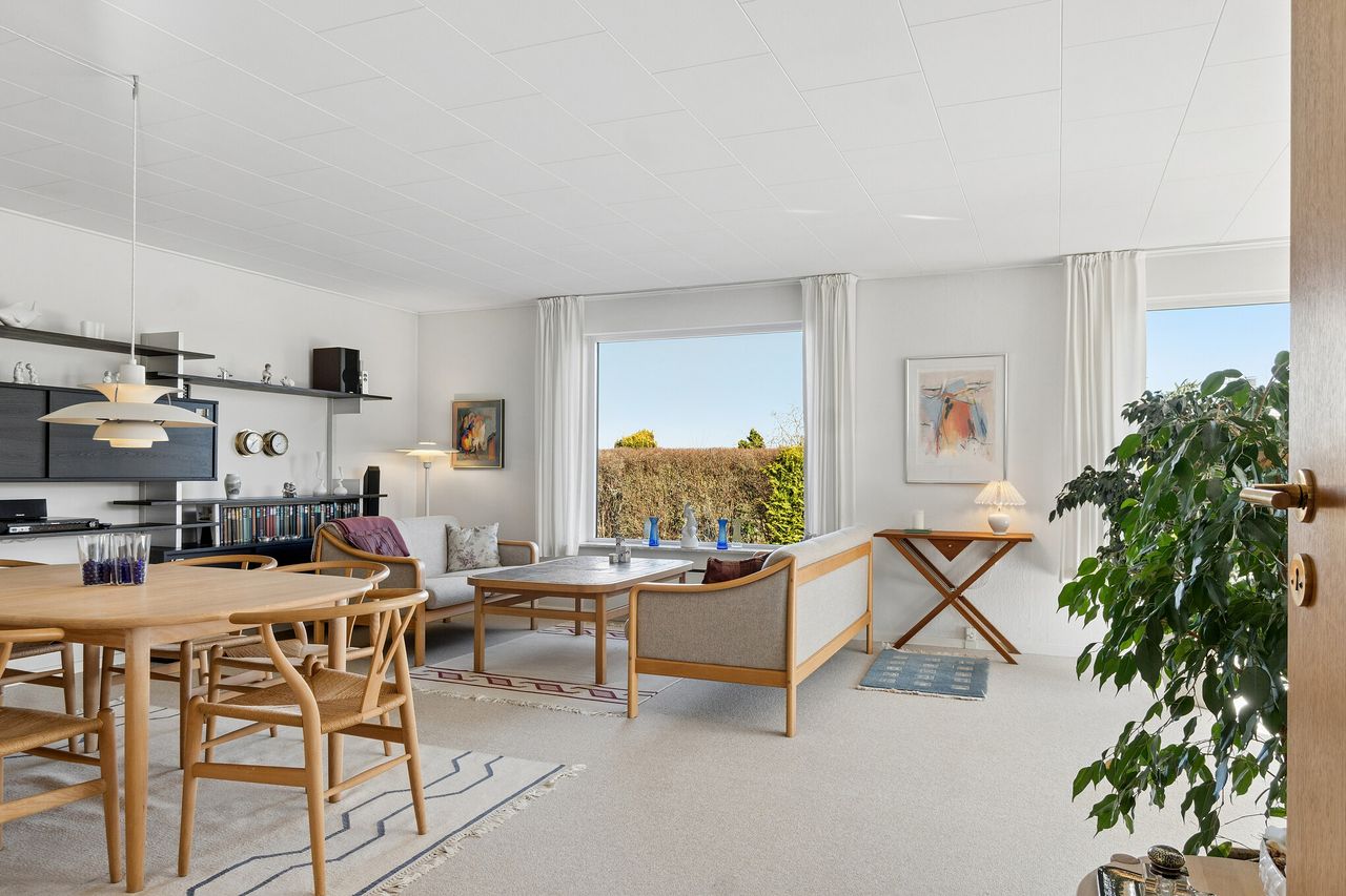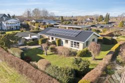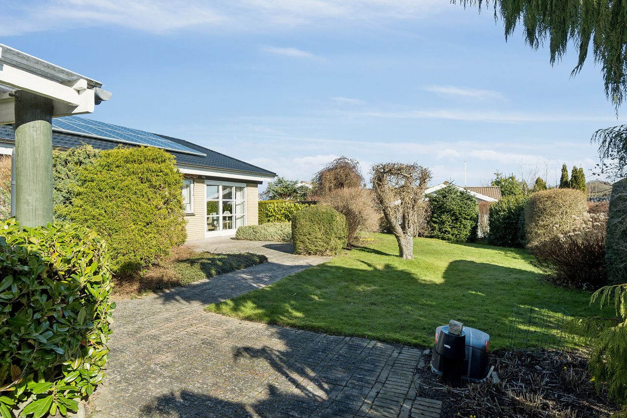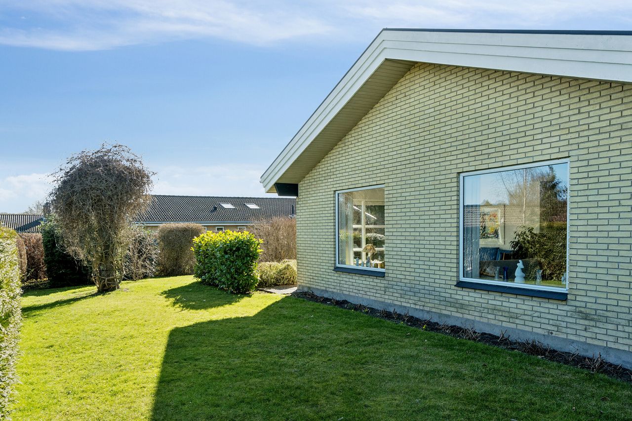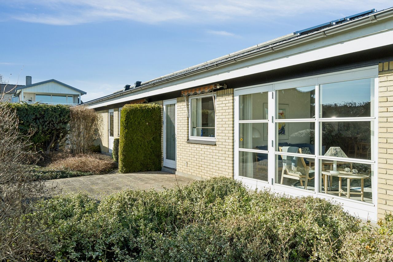 I finder her en velholdt etplansvilla på 160 kvadratmeter, som nu kan blive jeres.. Ejendommen ligger på en koteletgrund, hvilket sikrer jer fuldstændigt privatliv og ro, mens I fra boligen kan nyde et smukt kig mod Tuelsø. Her får I et hjem, der forener moderne, energirigtige løsninger som solceller og varmepumpe med en tryg beliggenhed tæt på både skole, skov og indkøb.
