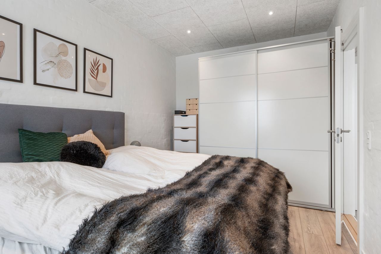 Endelig rummer boligen et godt soveværelse – ligeledes mod syd – som fuldender lejligheden.