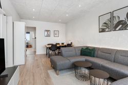 Stuen er stor og indbydende med god plads til både spise- og sofaafdeling. Herfra er der udgang til en skøn, stor sydvendt altan, hvor sommeren kan nydes til fulde.