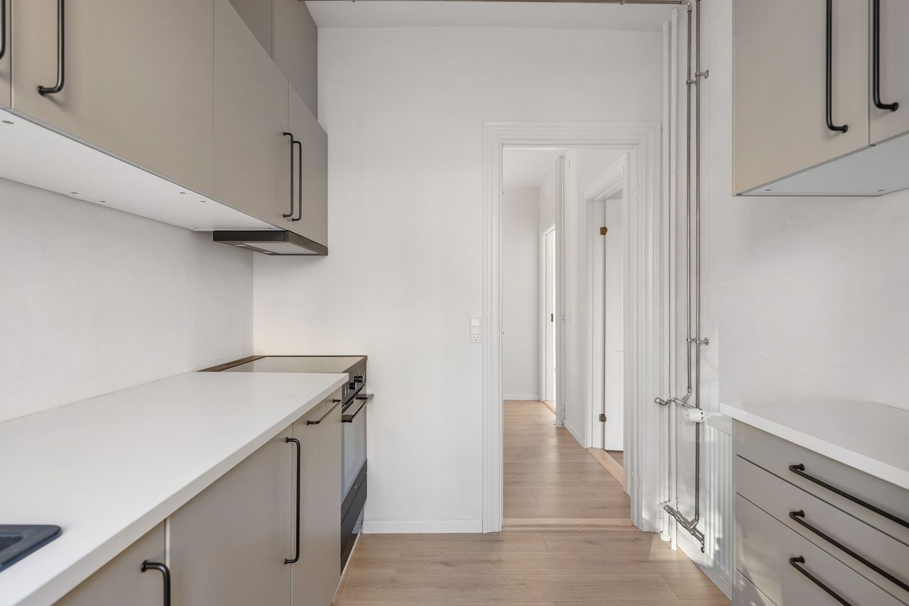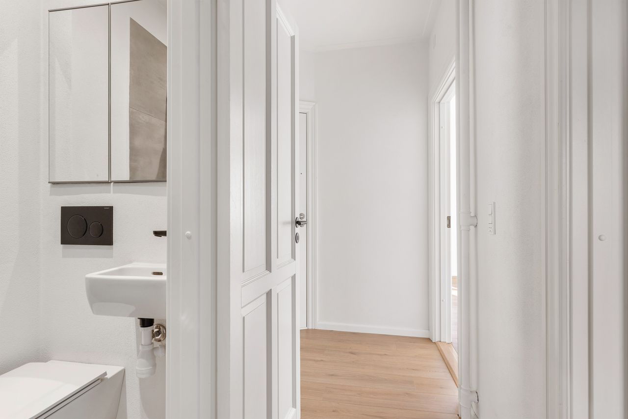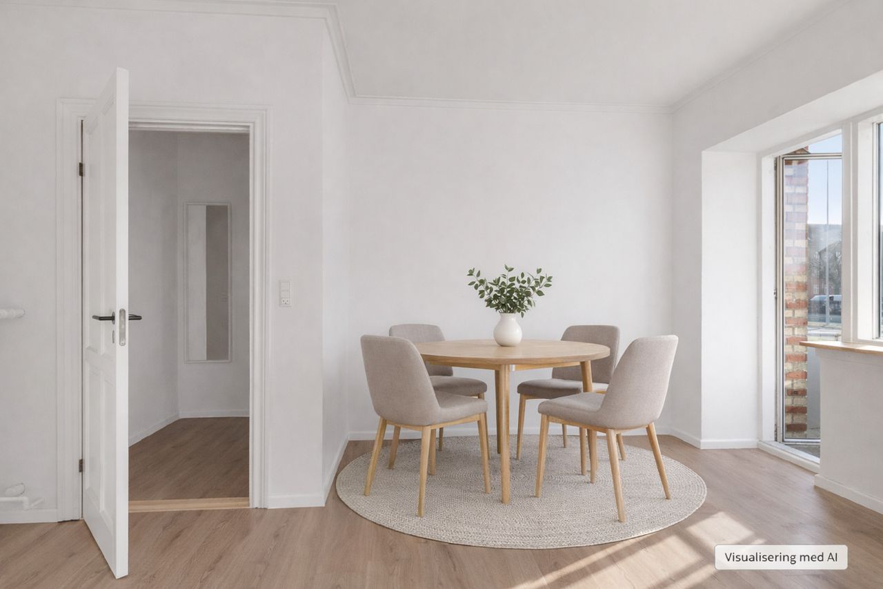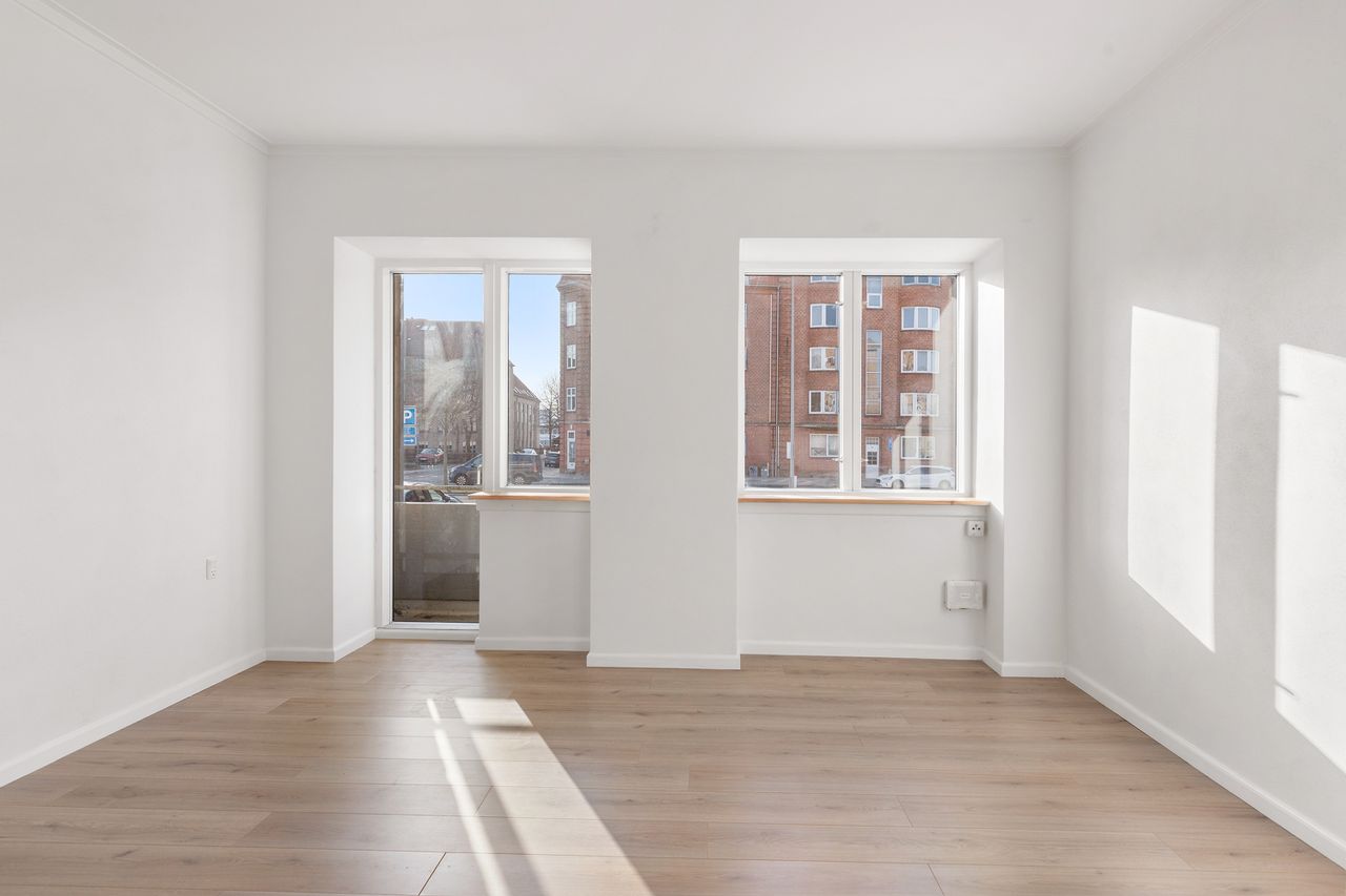 Kort sagt: En virkelig flot moderniseret lejlighed i Øgadekvarteret, hvor du får klassisk charme kombineret med moderne komfort – og en bolig der er lige til at flytte ind i.