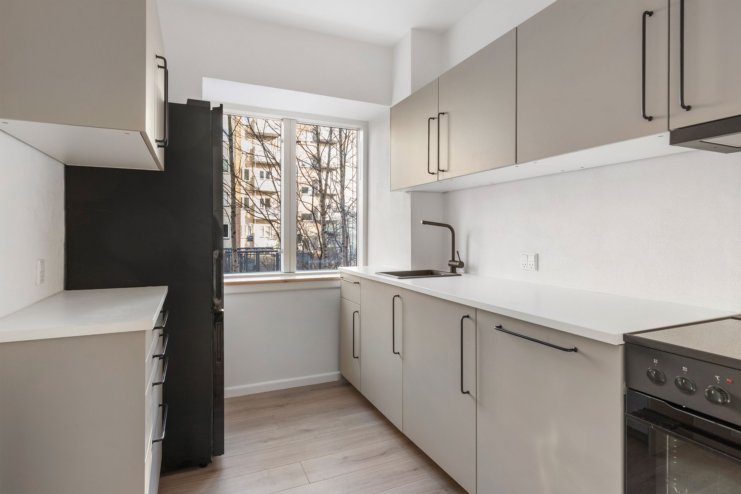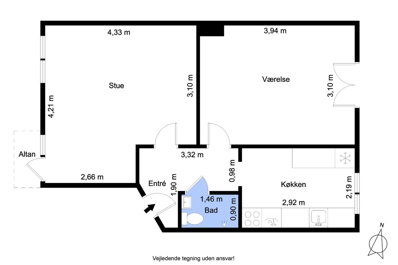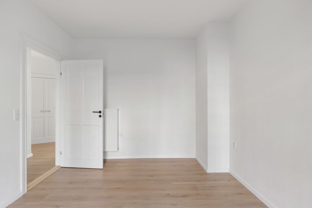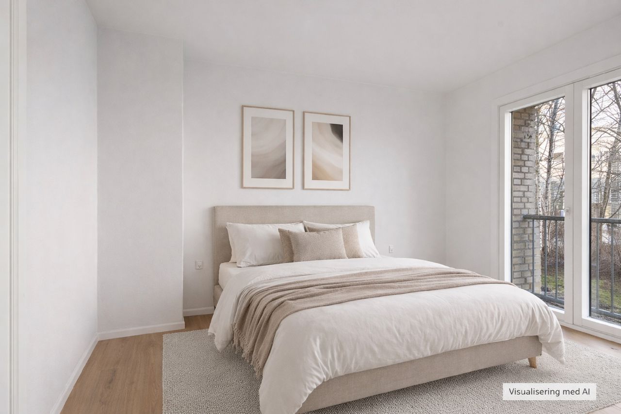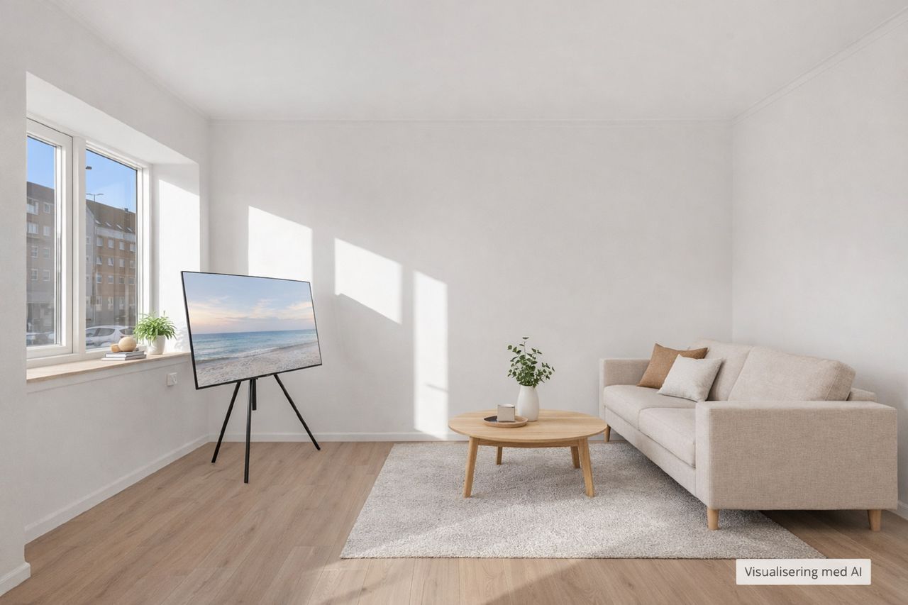 Resten af lejligheden fremstår lys og indbydende med nye gulve og opdaterede vægge. Planløsningen er klassisk og velfungerende med en god stue, et rummeligt værelse og direkte udgang til altanen fra opholdsrummet.