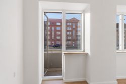 Lejligheden ligger som en løftet stuelejlighed, hvilket giver en mere privat fornemmelse, da man ikke har forbipasserende lige udenfor vinduerne. Fra stuen er der udgang til en klassisk Sønderbro-altan, hvor du kan følge livet på gaden og nyde solen.