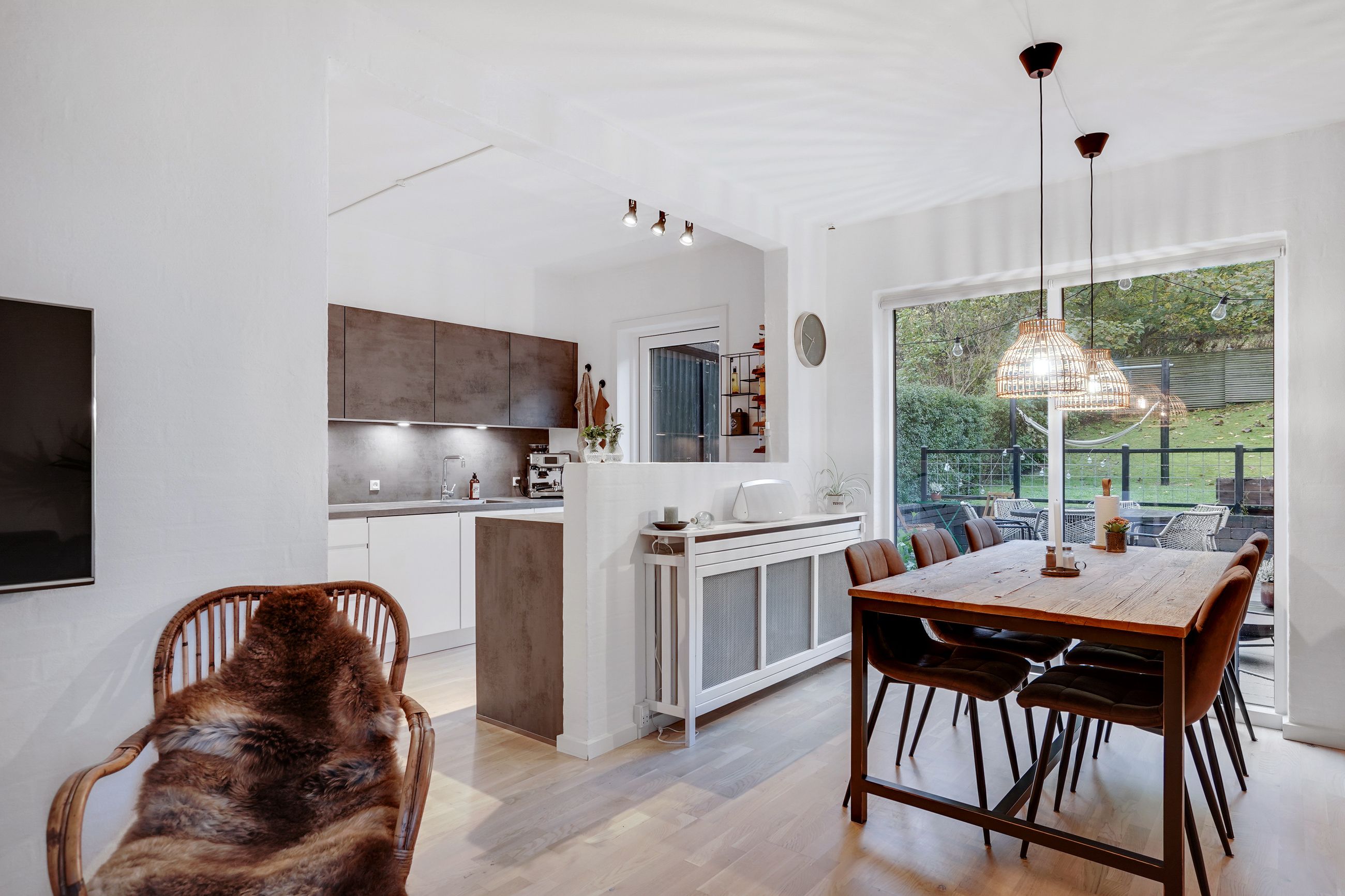 Rækkehuset byder på et boligareal på 100 veludnyttede kvadratmeter, og er lyst og indbydende. Både køkken, gulve og