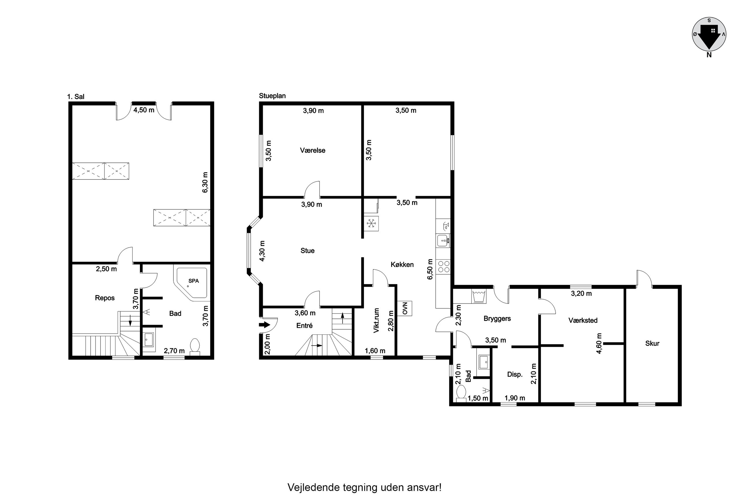 Der er endvidere et tilhørende baghus med bryggers og toilet samt værksted m.v.