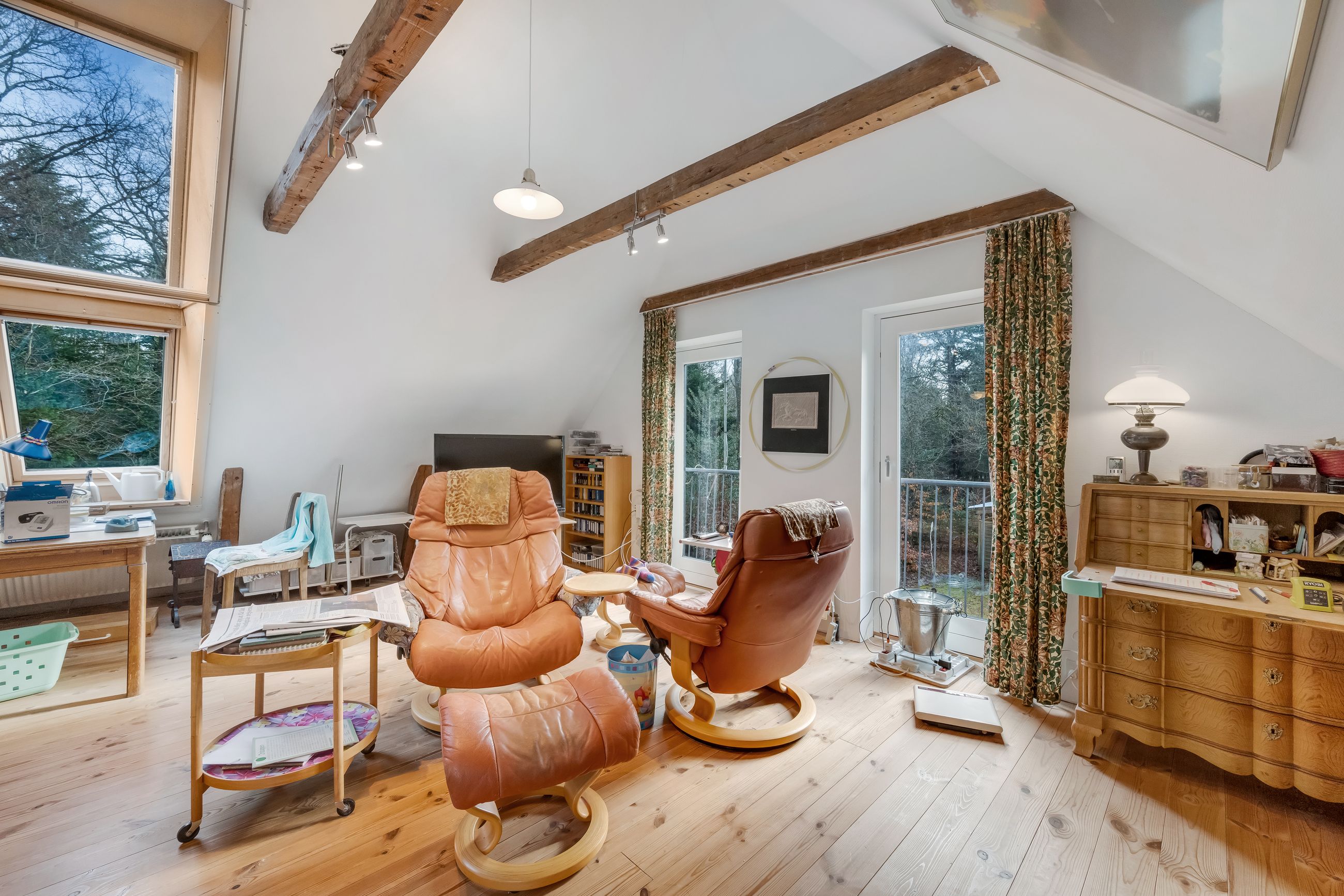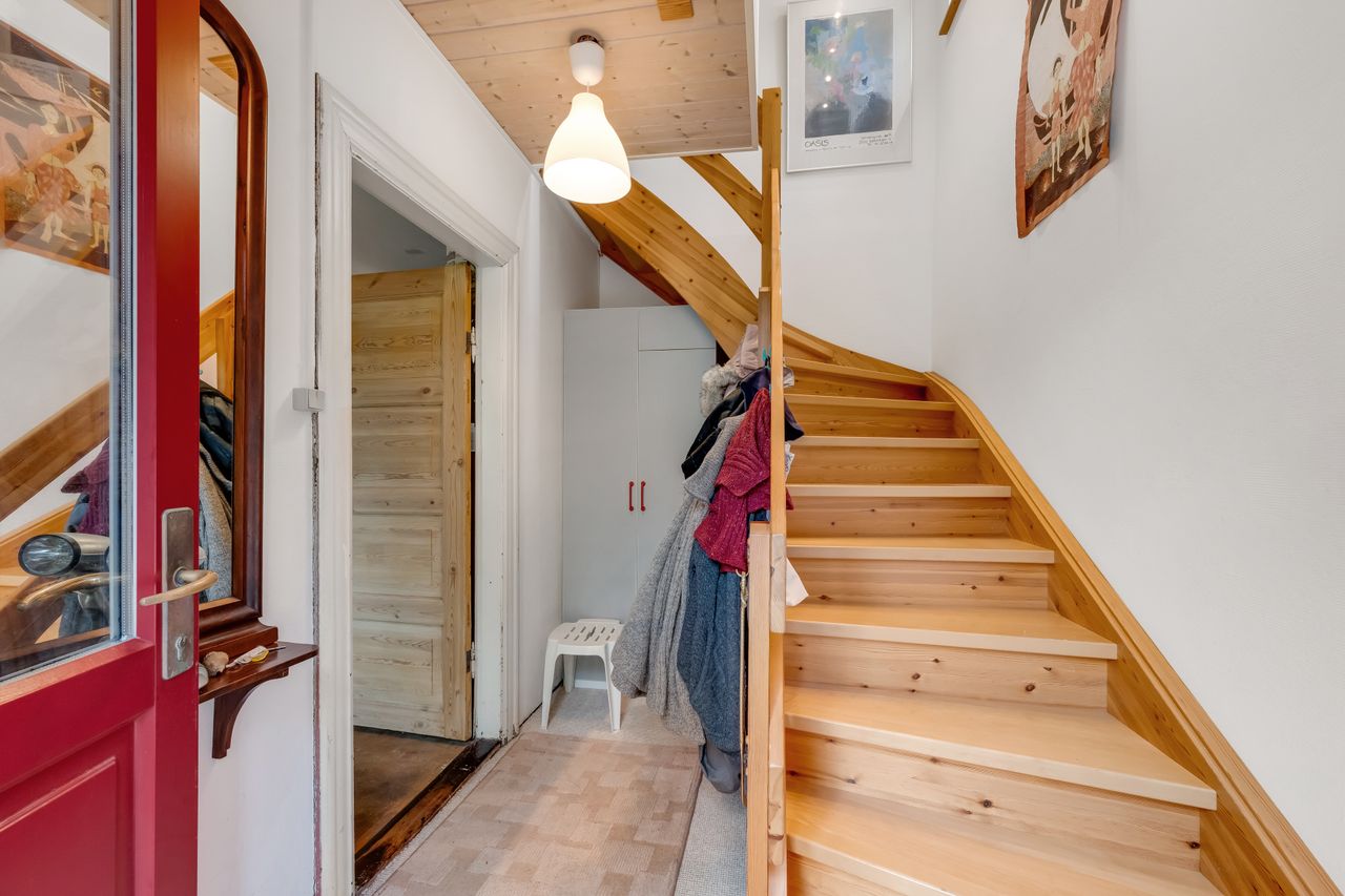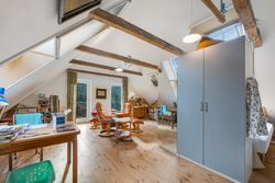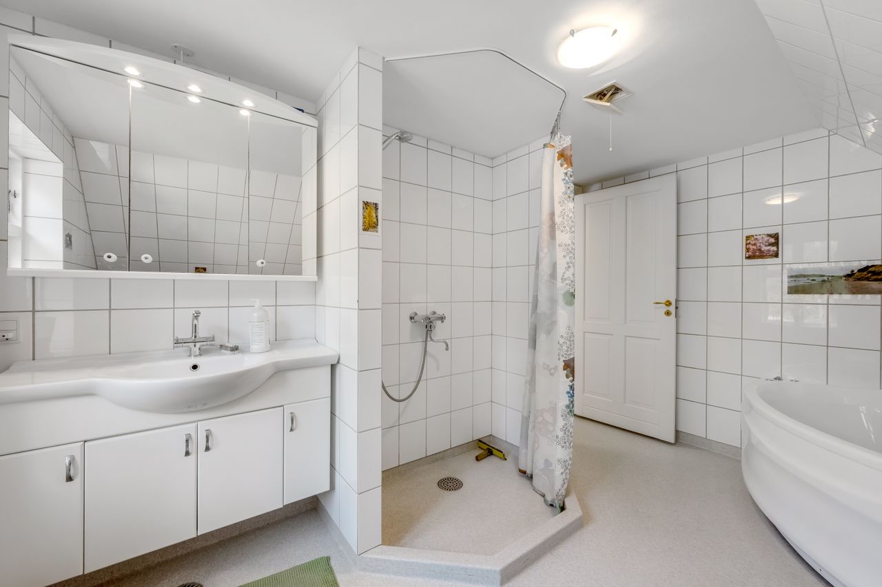 Tagetagen er sat i stand for cirka 20 år siden, og her finder man dejligt badeværelse med hjørnespa og bruseniche samt stort dejligt, lyst opholdsrum med ovenlysvinduer og loft til kip.