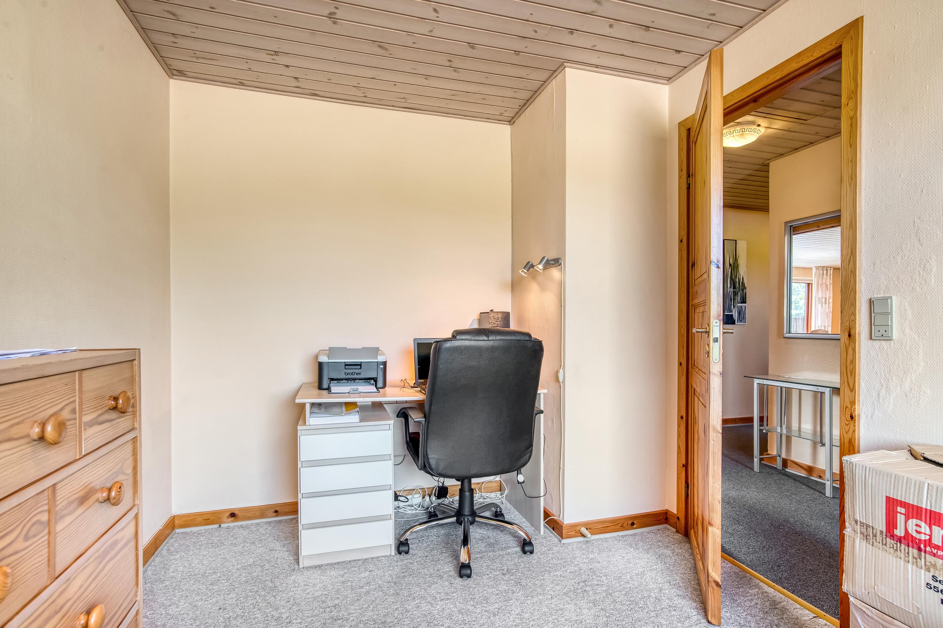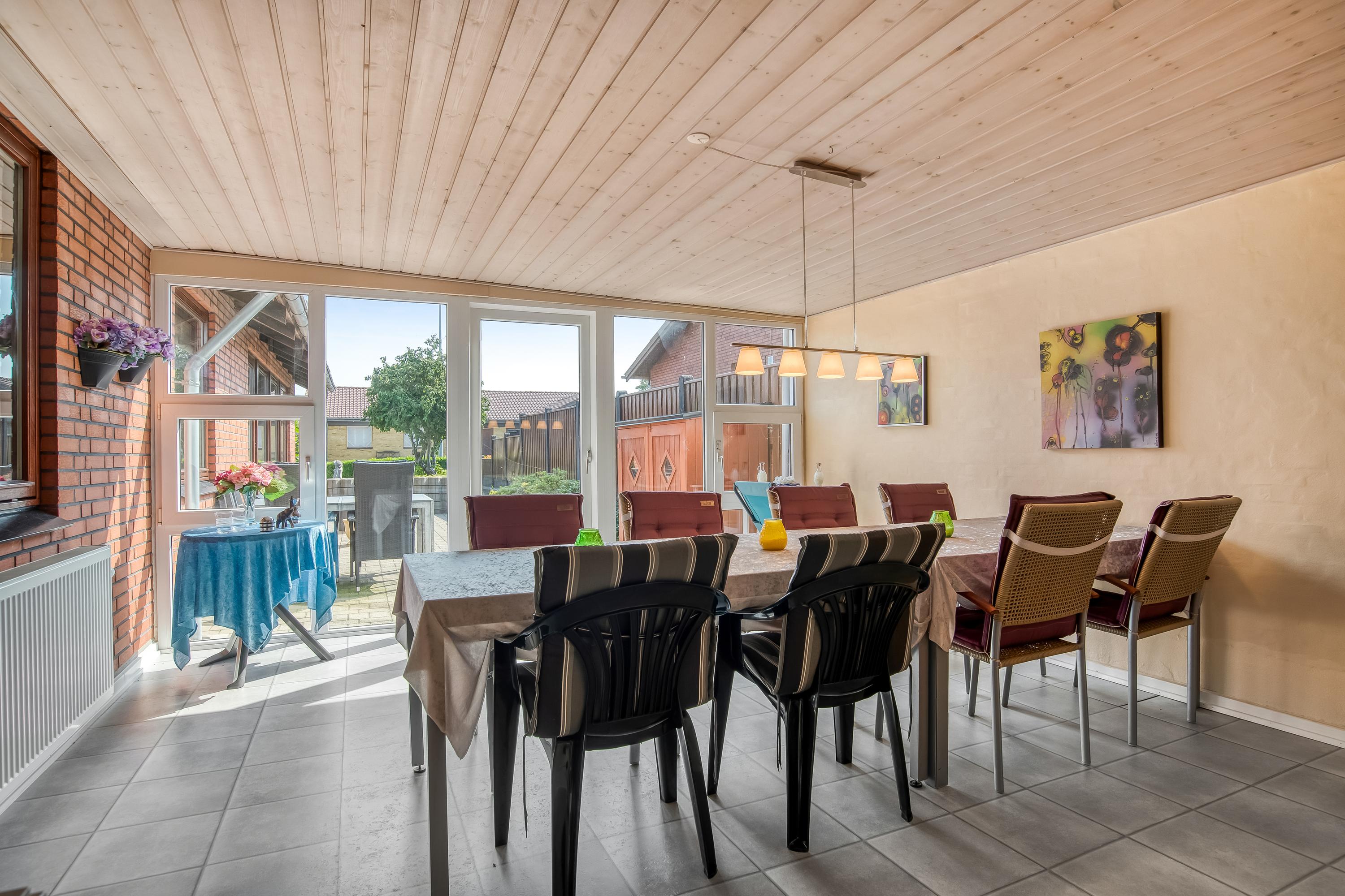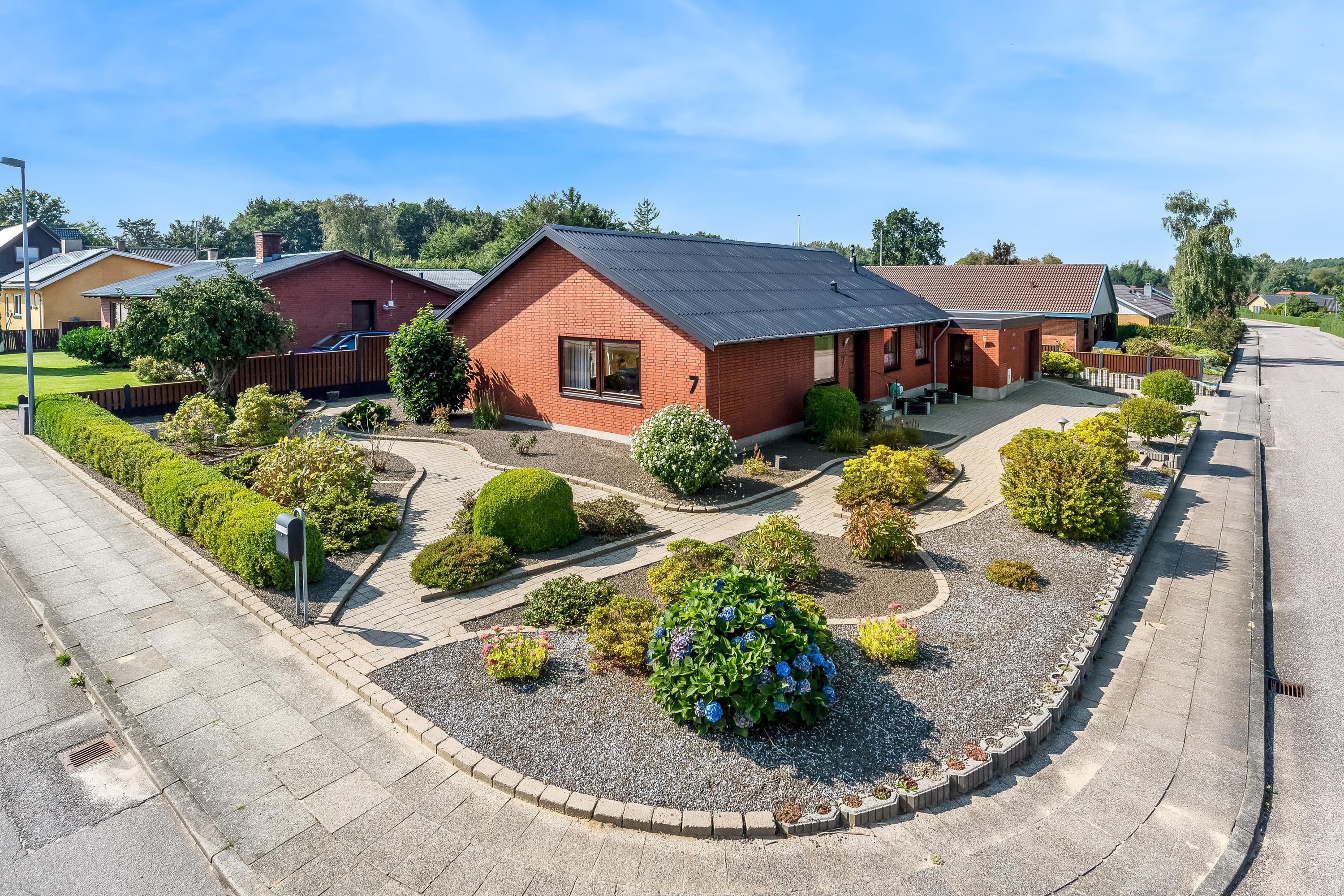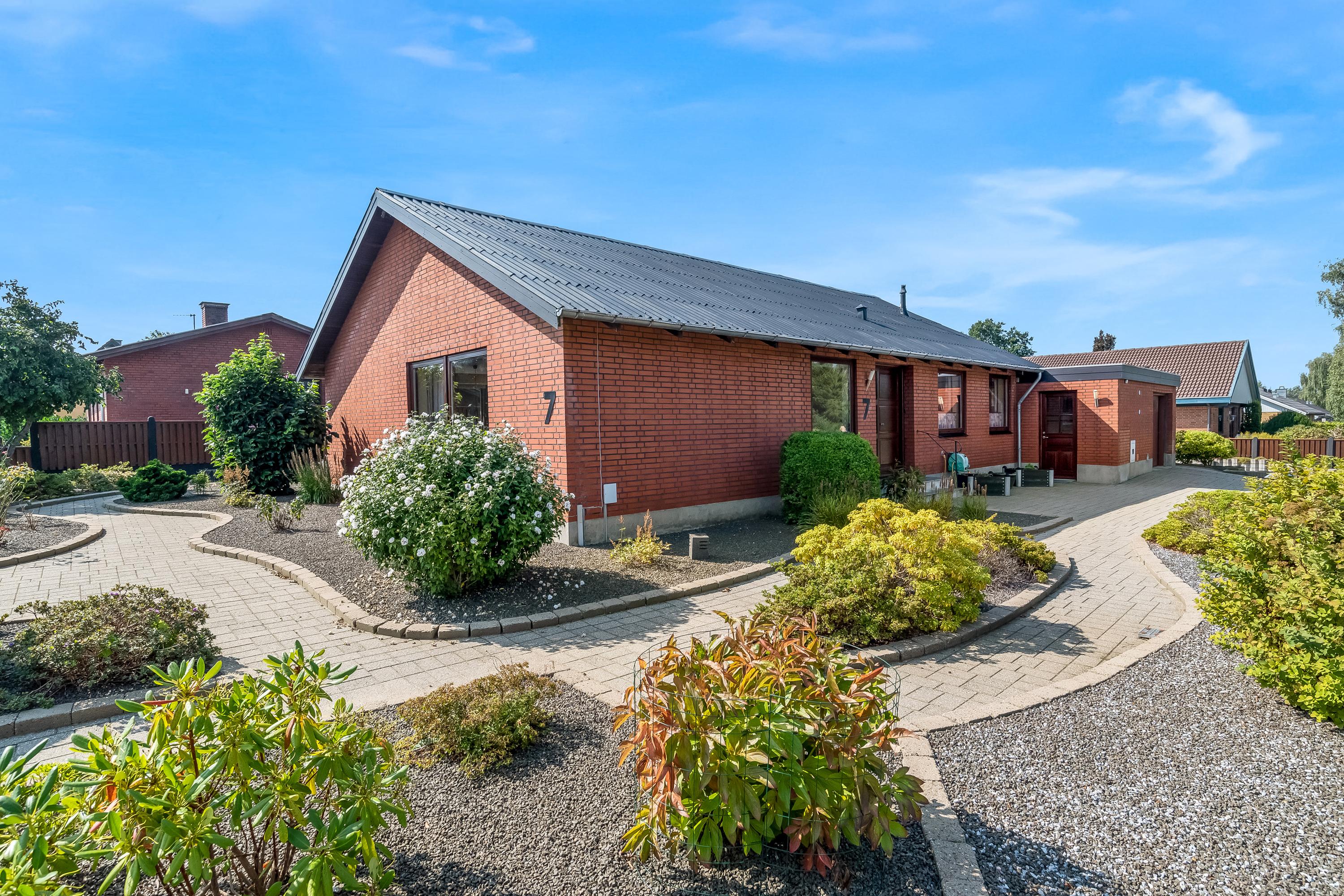 Velholdt og rummelig 1 plans villa i Skibbild med stor separat afdeling der er velegnet til mindre liberall erhverv eller stor teenager afdeling.