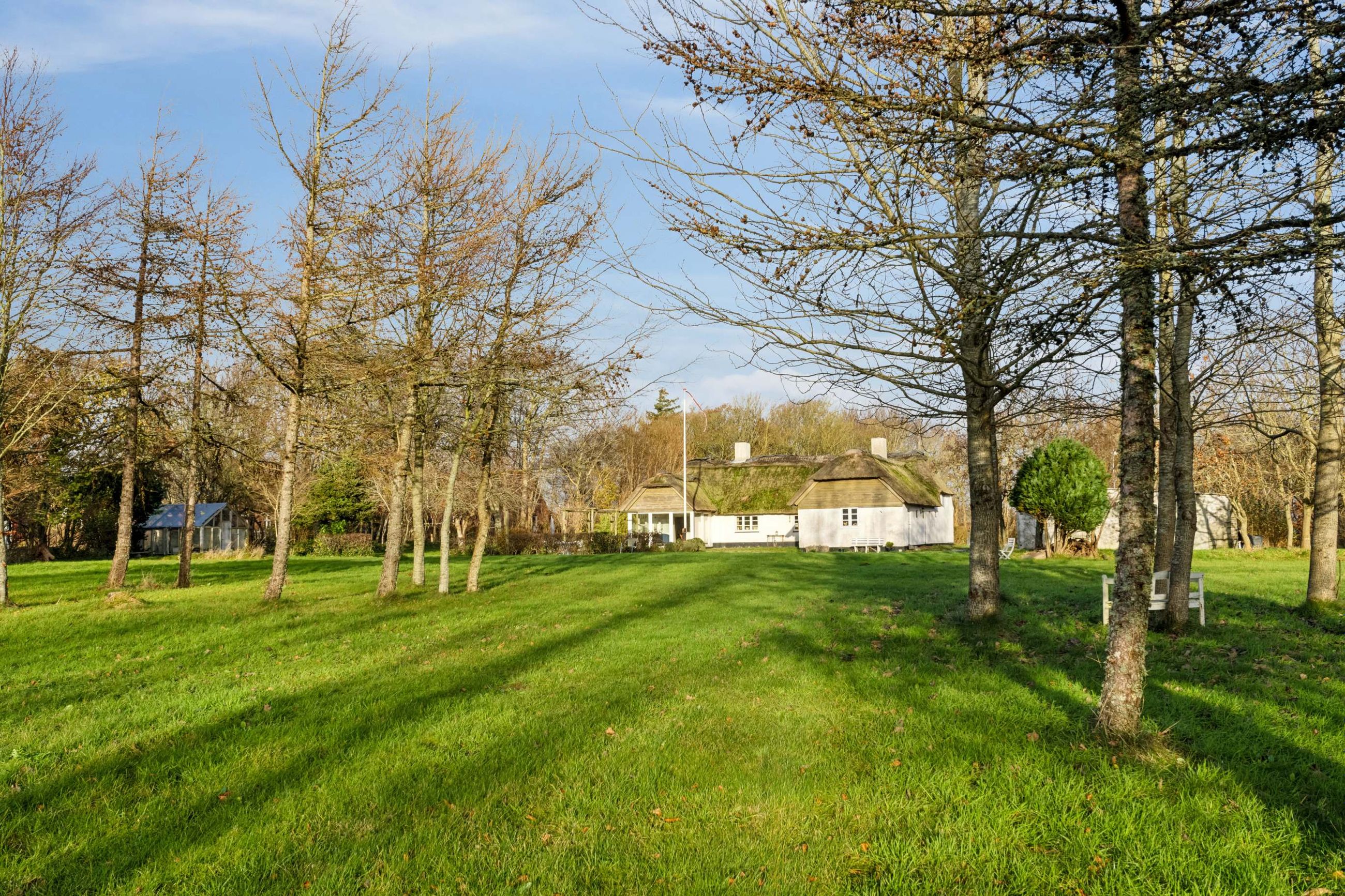 I udkanten af den hyggelige landsby Husby – omgivet af naturskønne omgivelser og med en ca. 2,5 meter høj støjvold mod Stabyvej – udbydes denne idylliske og stråtækte ejendom. Her bor man nær både hav, fjord og store skovområder, og samtidig i et område med et stærkt lokalt fællesskab med blandt