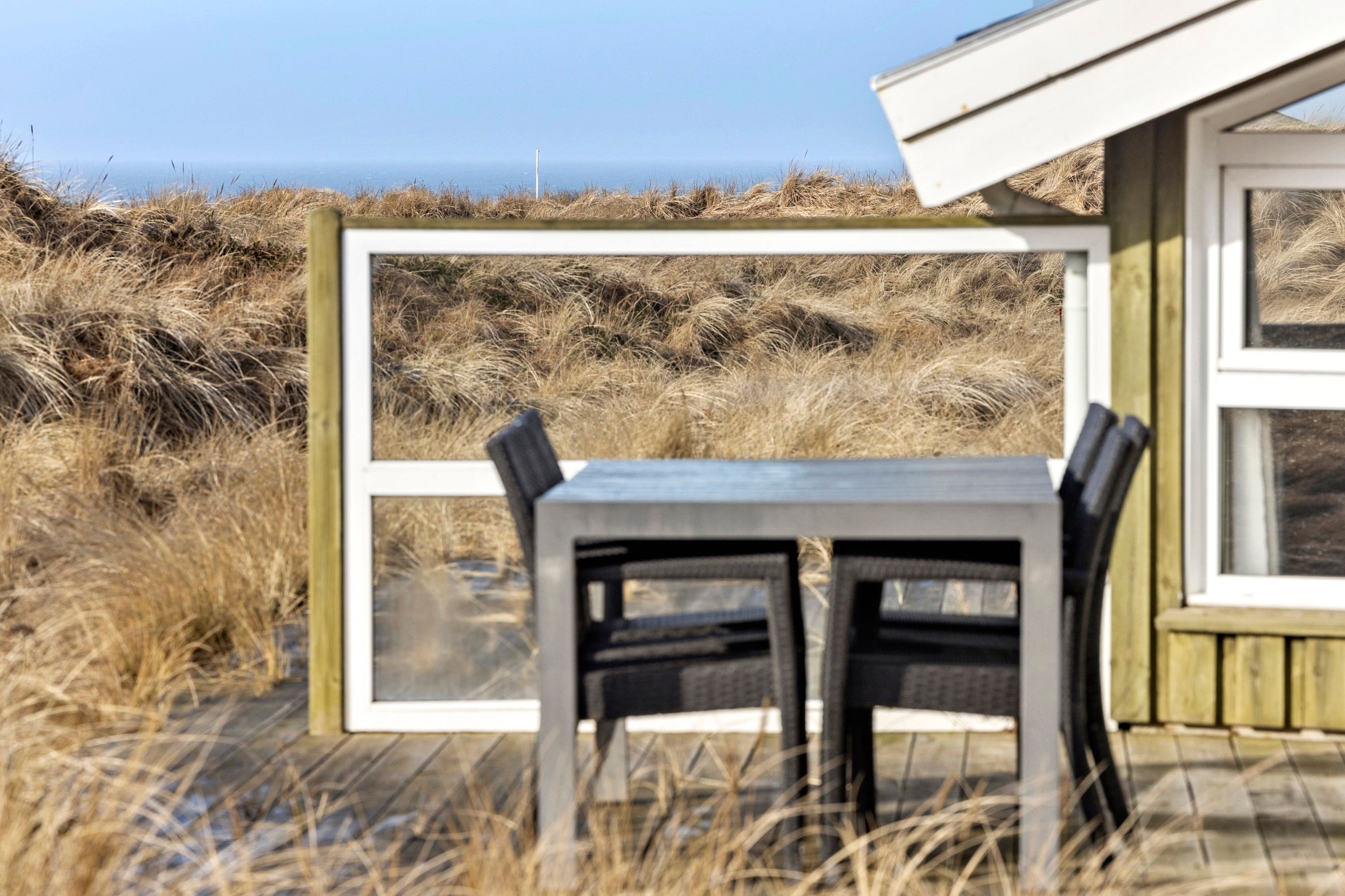 Rundt om huset finder du skønne terrassearealer, hvor solen og udsigten kan nydes dagen igennem. Her er der rig mulighed for at slappe af, grille og opleve de imponerende solnedgange over vandet.