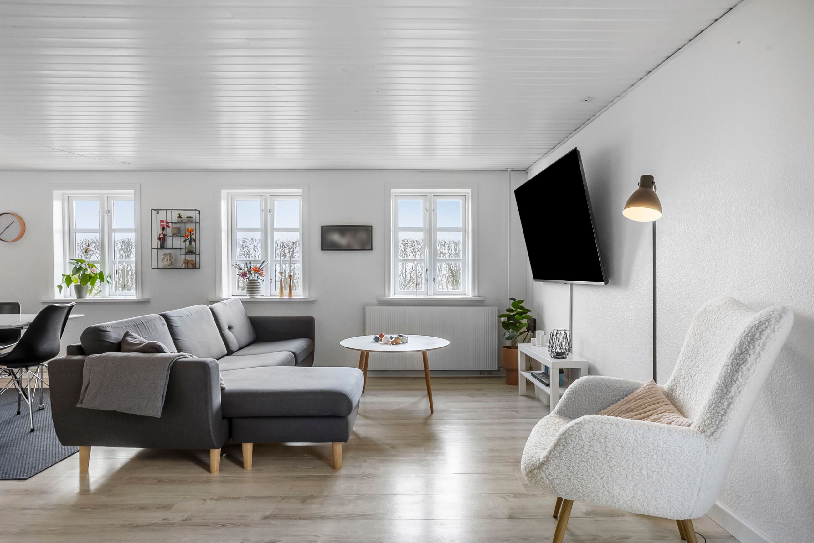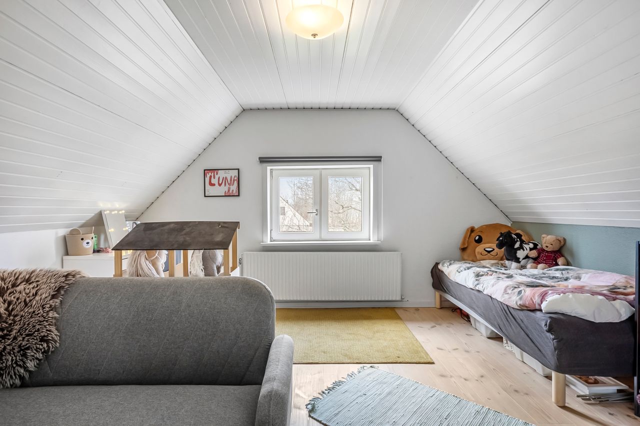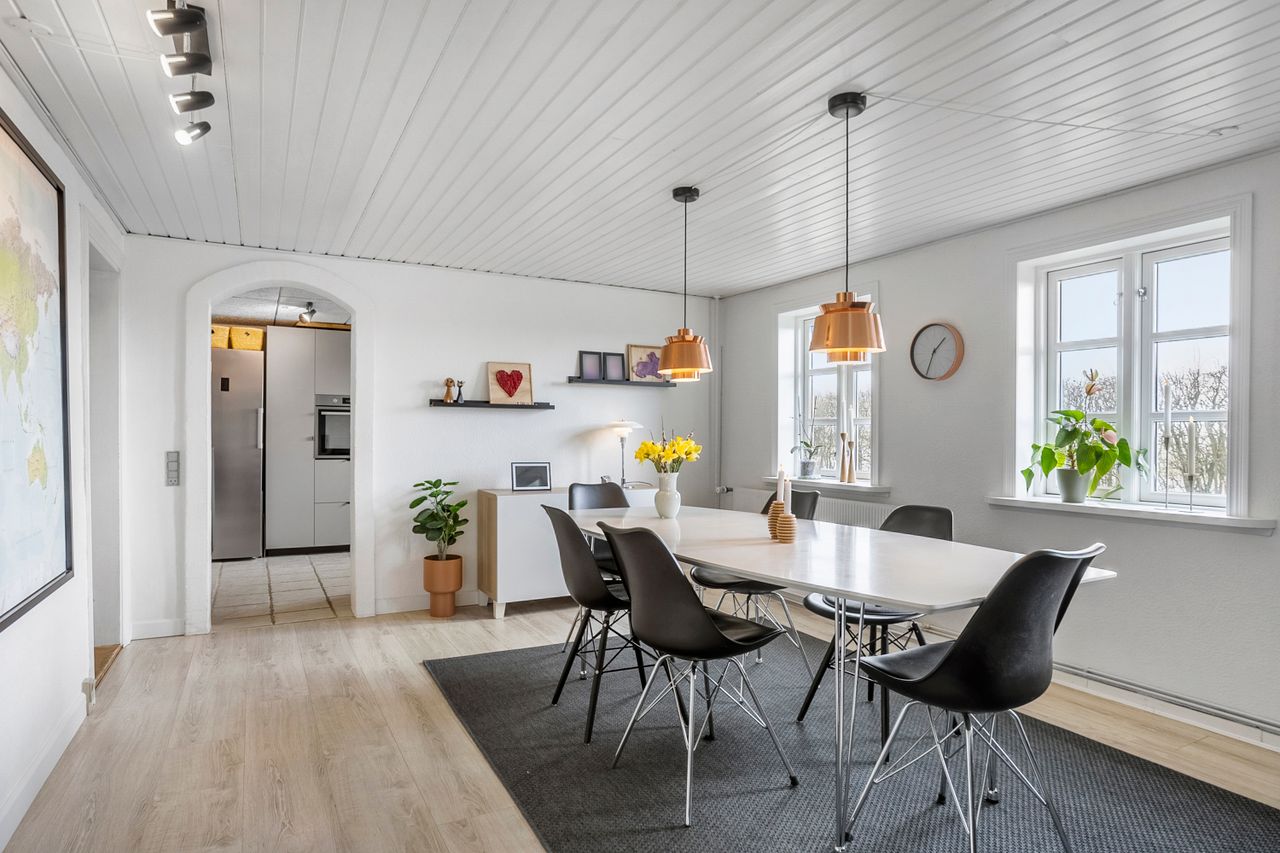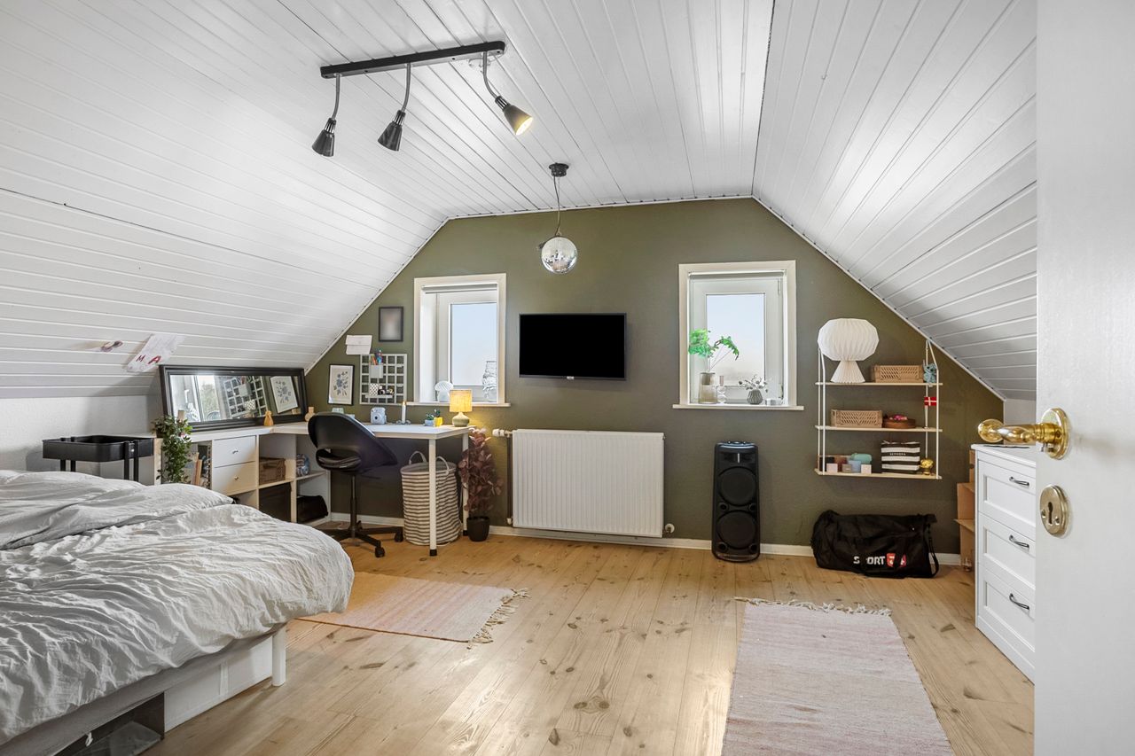 På førstesalen finder I fire gode værelser, et kontor samt lyst badeværelse.