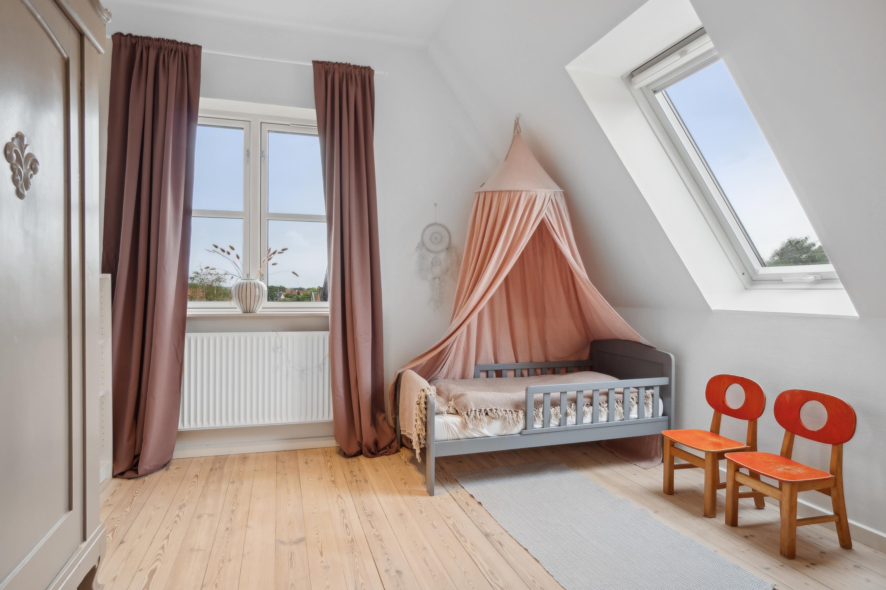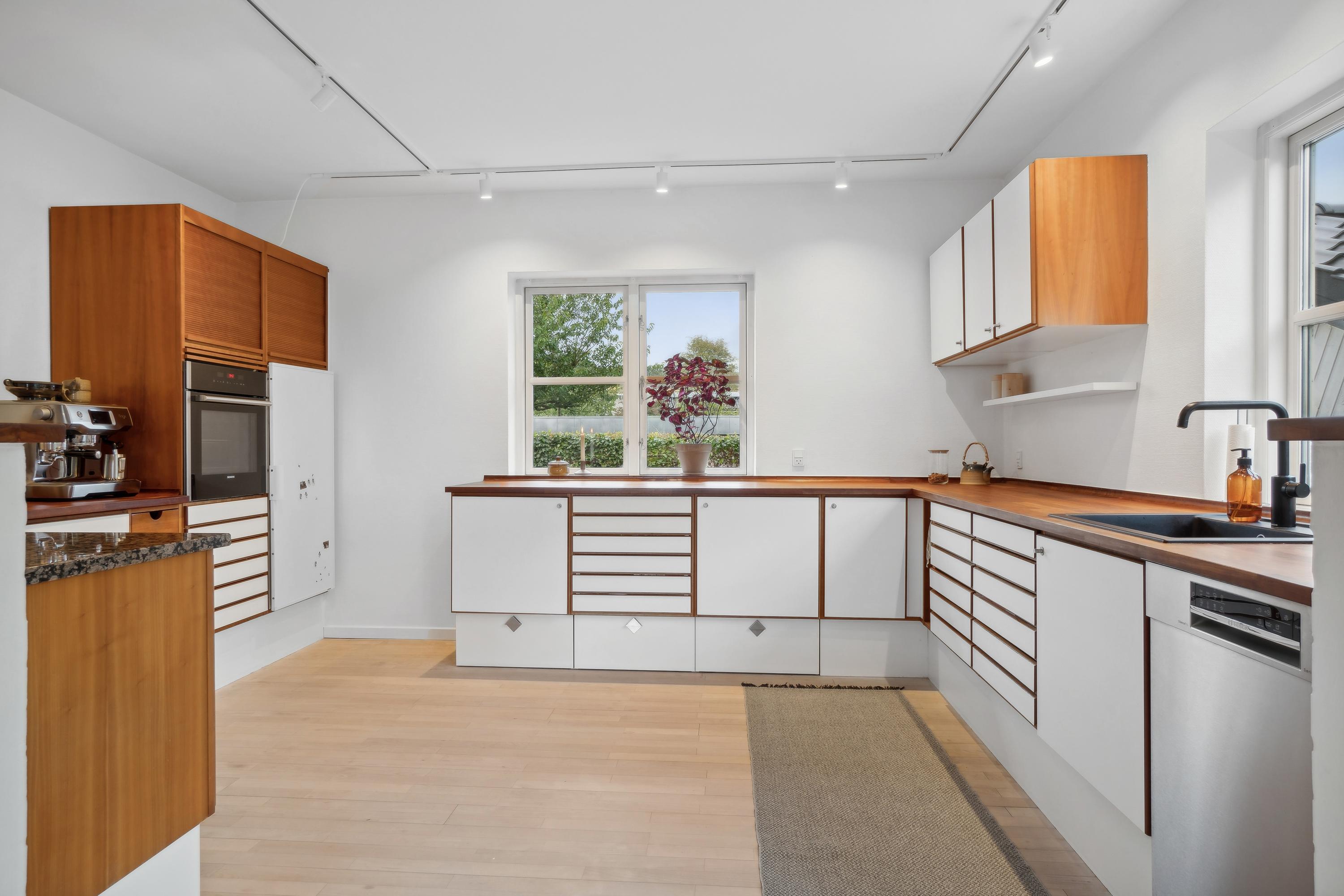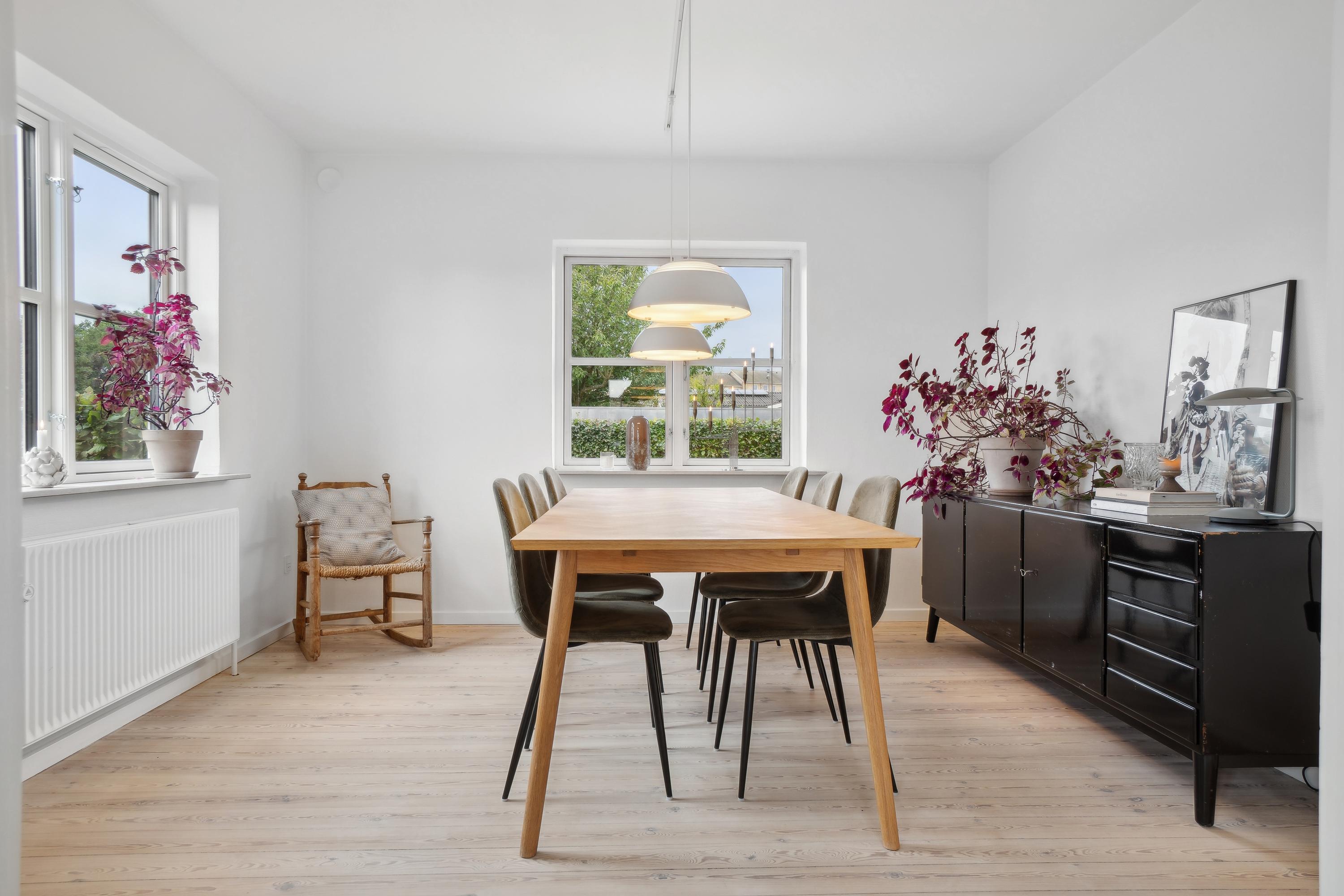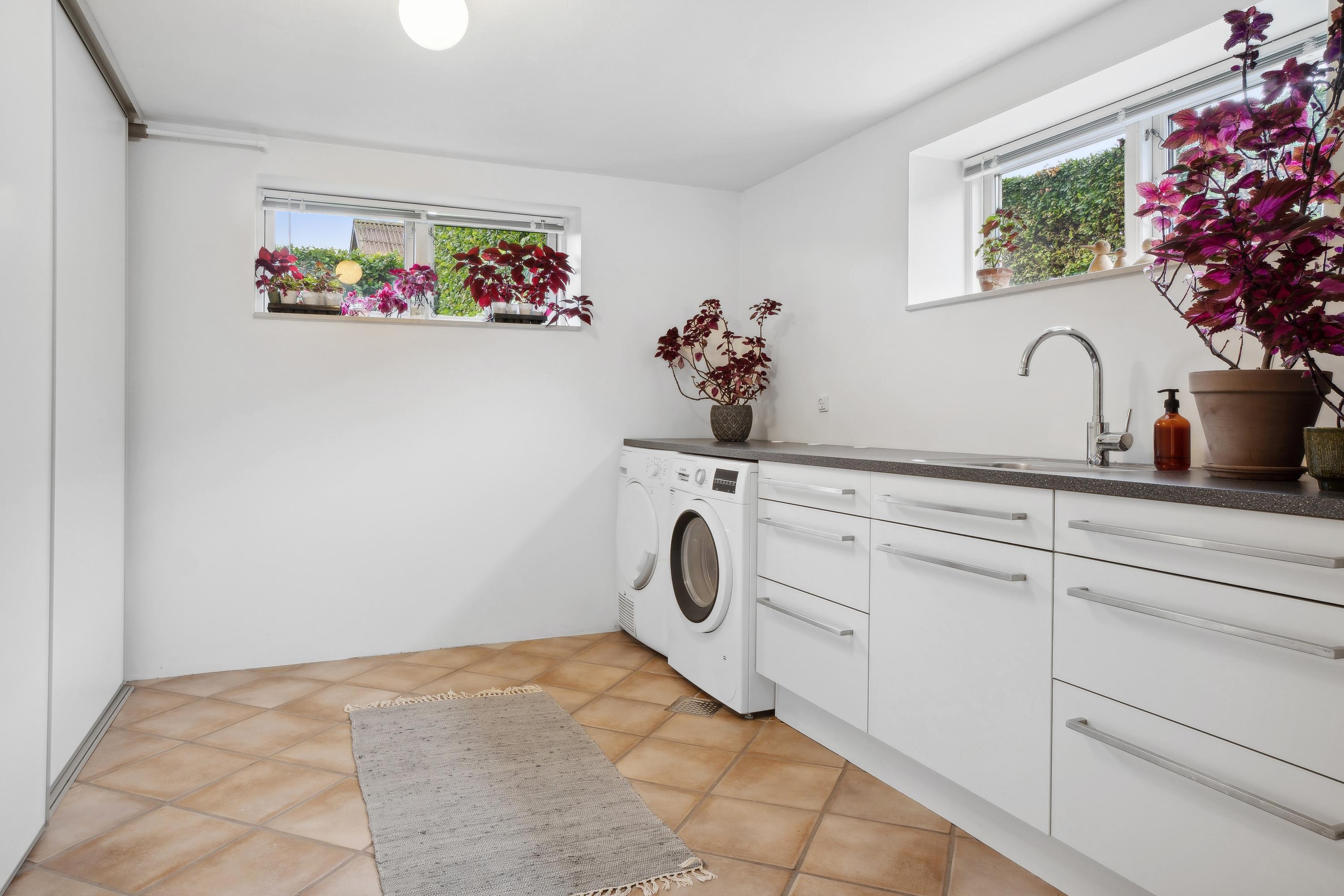 I den flotte rødstensvilla på Frejasvej 18 får I masser af plads med hele 214 boligkvadratmeter, hvor 76 af dem består af en tør kælder med gulvvarme, som er delvist over jordhøjde og dermed højloftet og lys. Villaen har dertil bibeholdt sin charme fra byggeåret 1947 med blandt andet originale