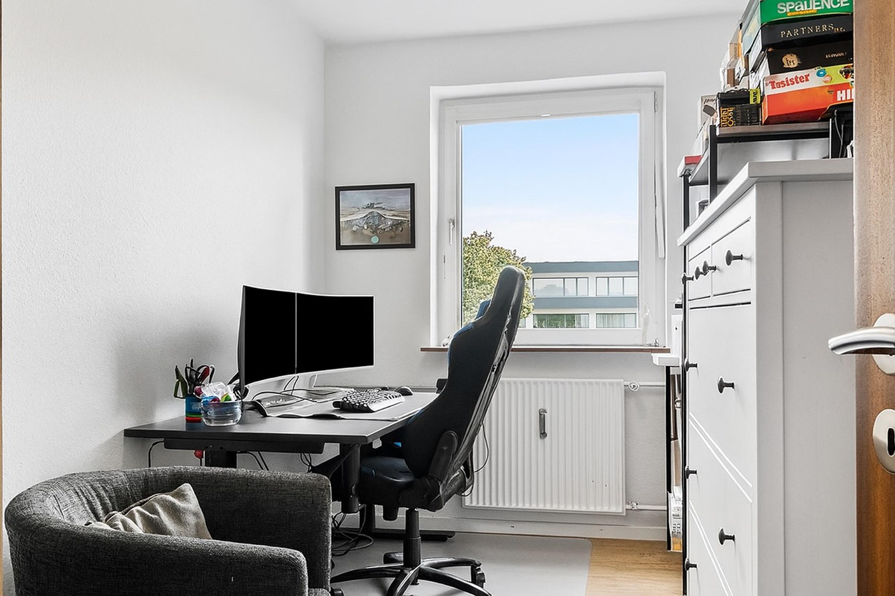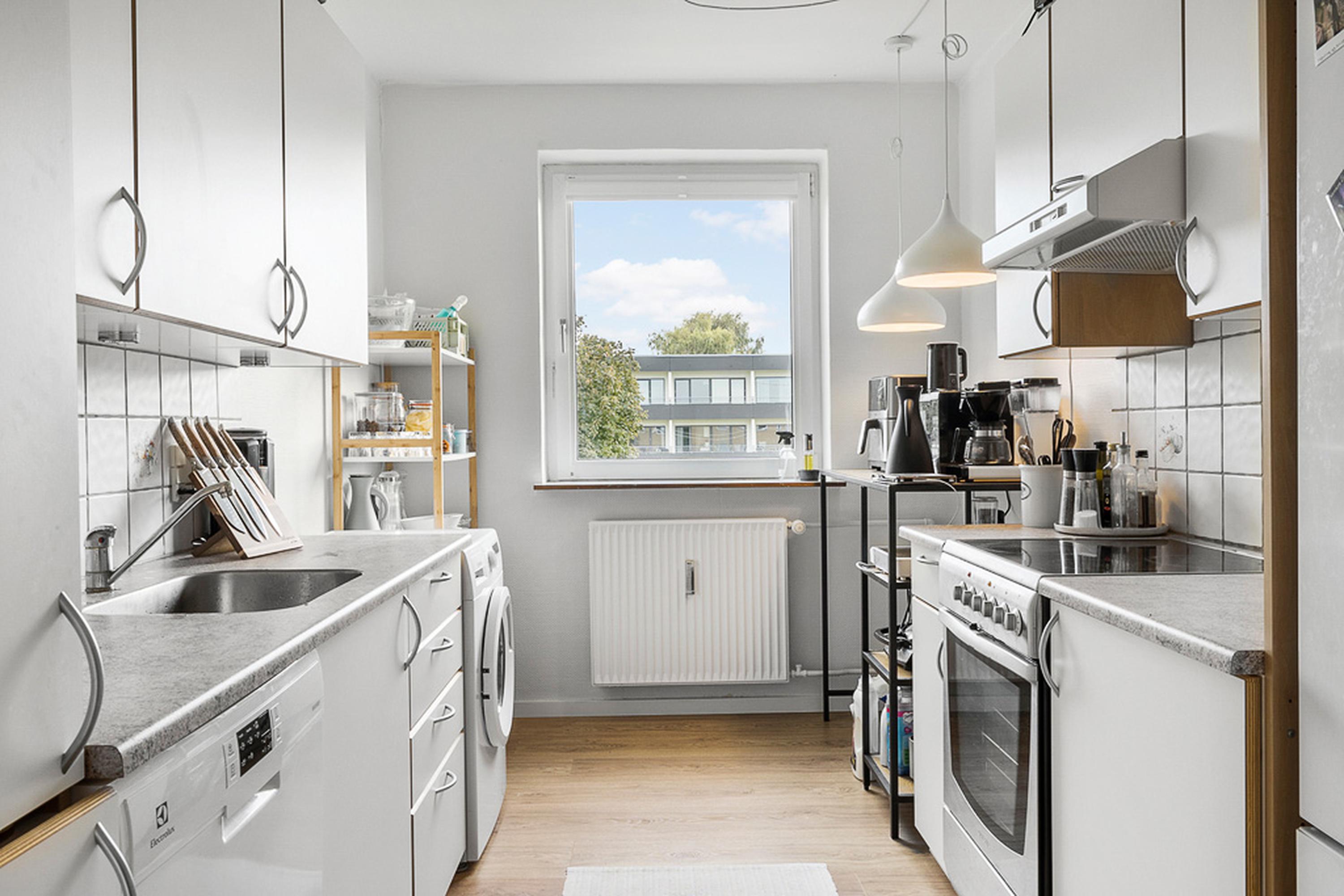Velkommen til Falkevej 94, 2. tv. en lys og indbydende 3-værelses lejlighed med en naturskøn placering og en fantastisk udsigt over den grønne plantage. Her får du en veldisponeret bolig med god plads, moderne komfort og adgang til attraktive fællesfaciliteter.