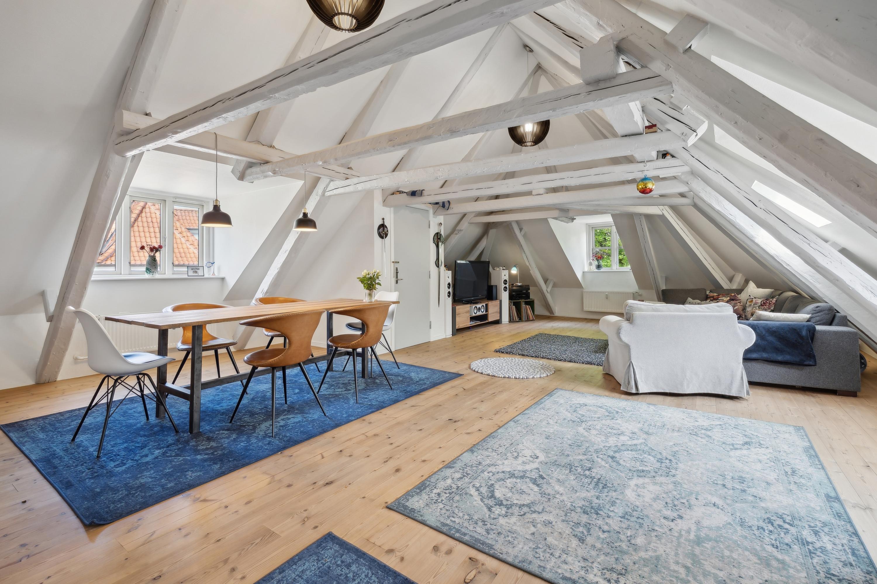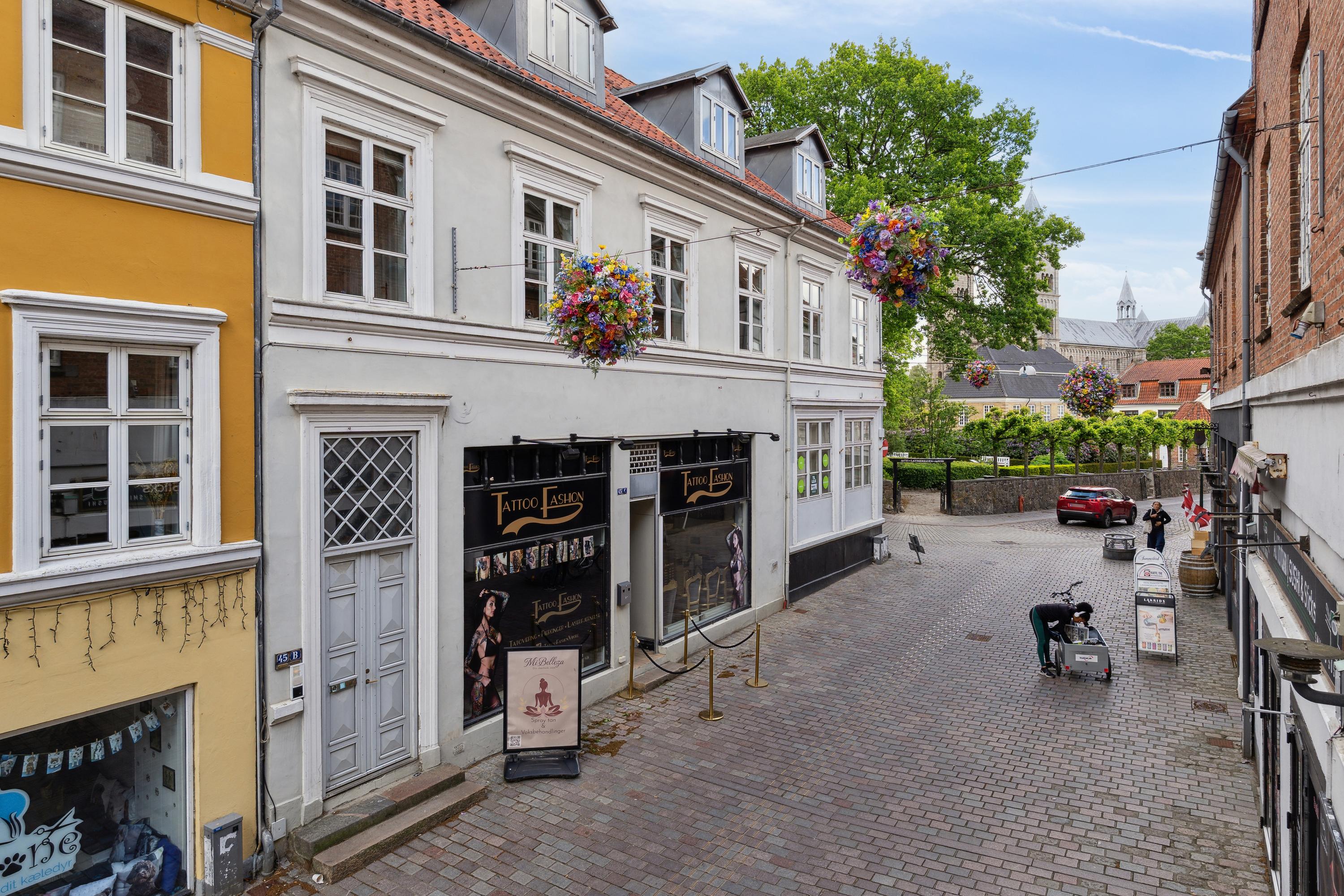 Velkommen til Sct. Mathias Gade 45B, 2. sal en bolig med sjæl, charme og en udsigt, der hver dag minder dig om, hvorfor det er noget særligt at bo midt i Viborg. Her får du 139 m2 gennemlyst elegance, smukt placeret lige ud til Latinerhaven og med Domkirkens tårne som majestætisk bagtæppe. Det er