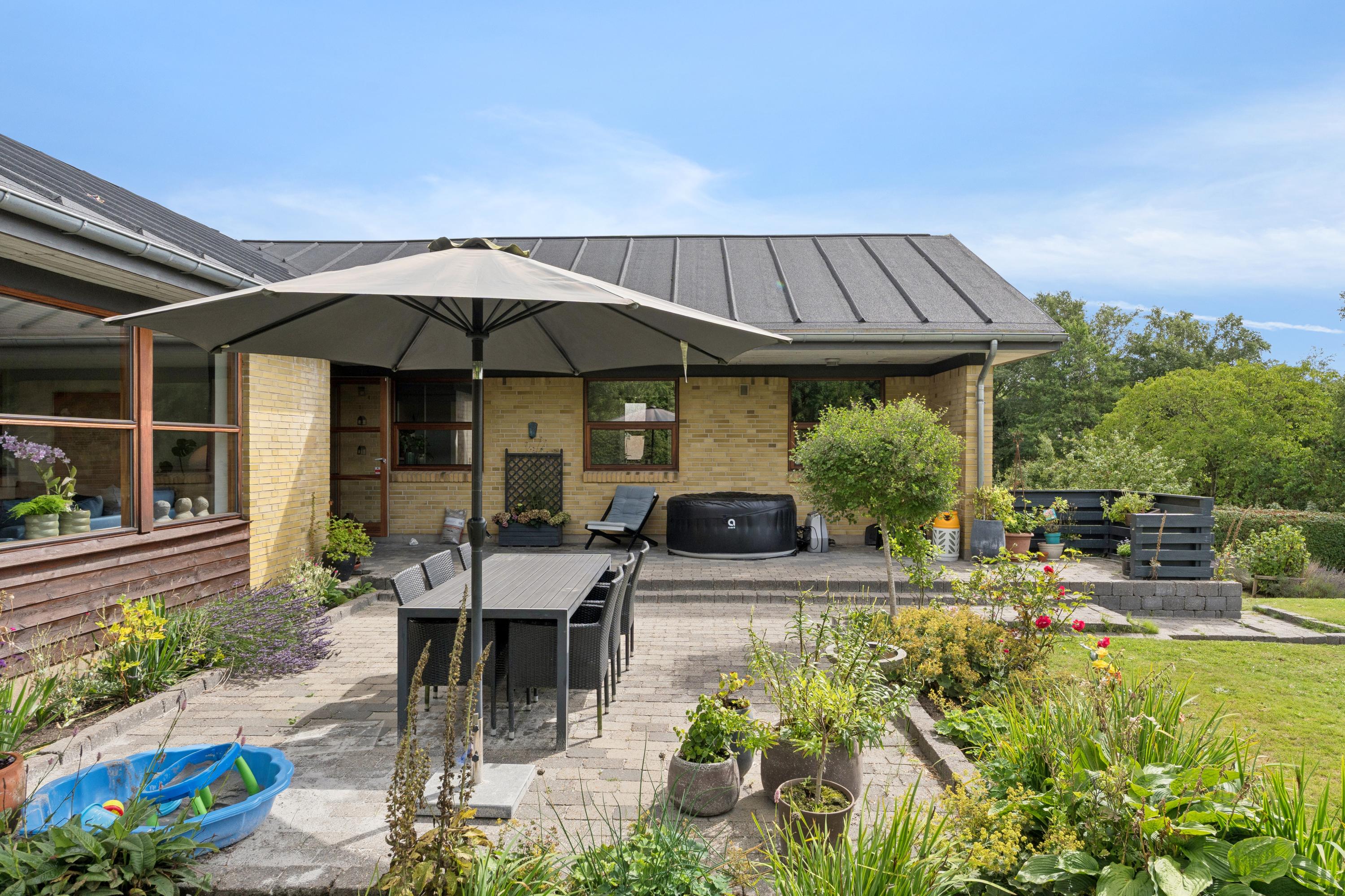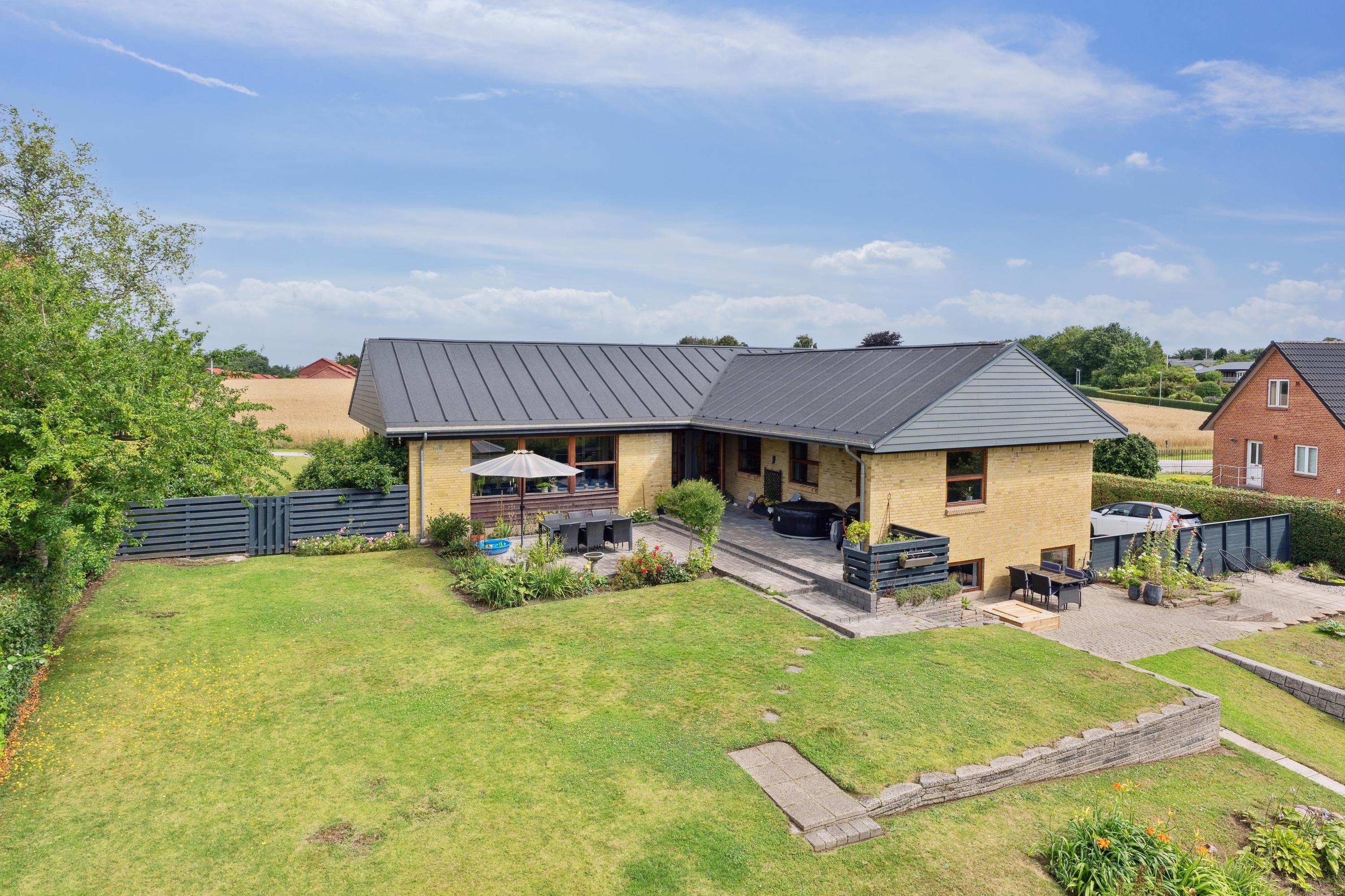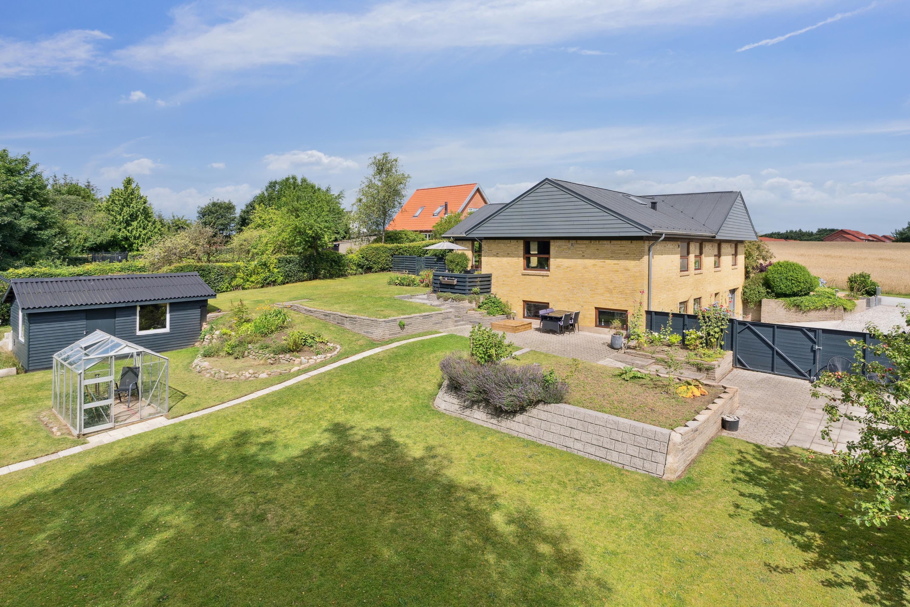 På Hovedgaden 77 i Løgstrup venter en særdeles indbydende og rummelig ejendom, som forener naturskønne omgivelser med en central placering tæt på alt det, der gør hverdagen nem og behagelig. Her får du en bolig, hvor komfort, kvalitet og beliggenhed går hånd i hånd og hvor både inde- og udeliv er