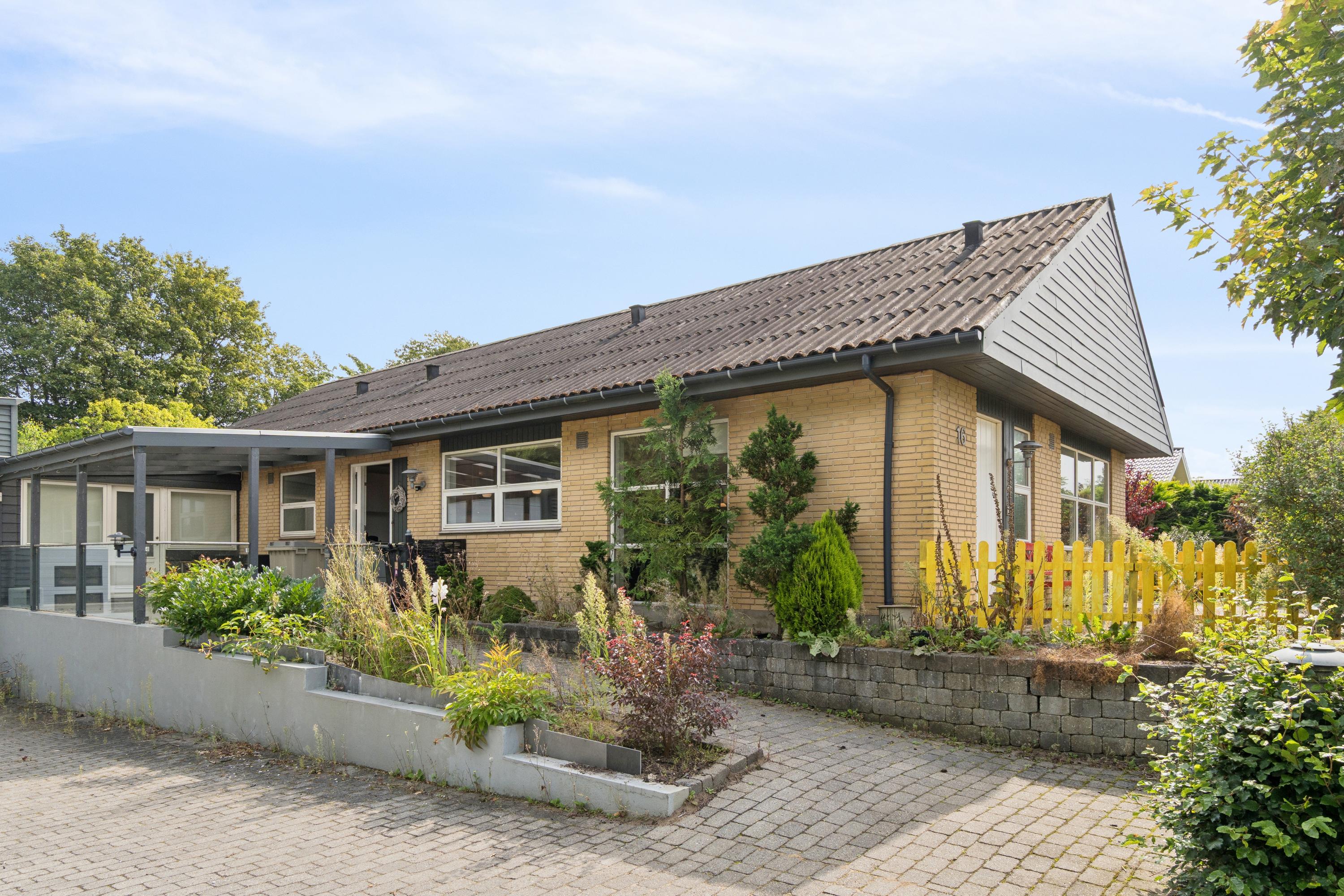 På Brobjerrevej 16 i Viborg finder du en velholdt villa i ét plan, der rummer både et indbydende hjem og plads til hobbylivet.