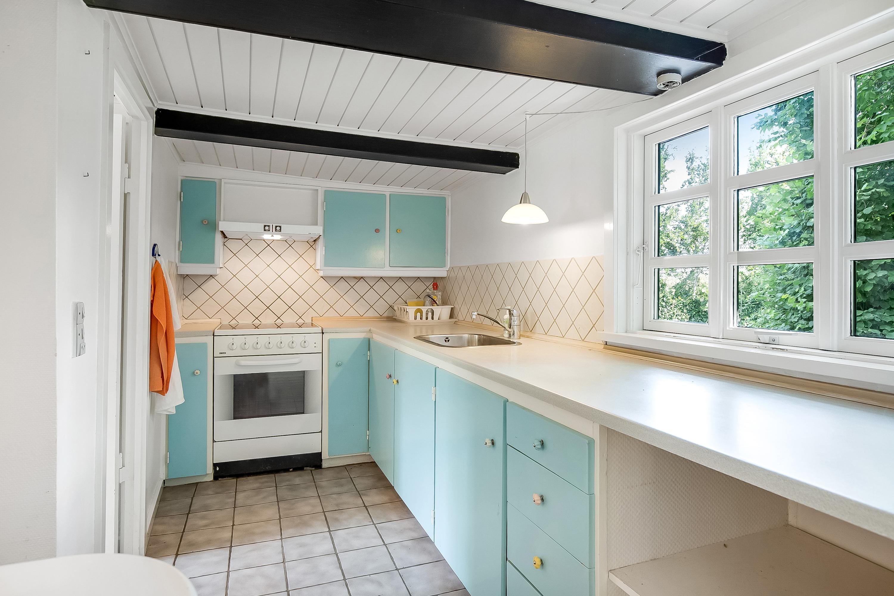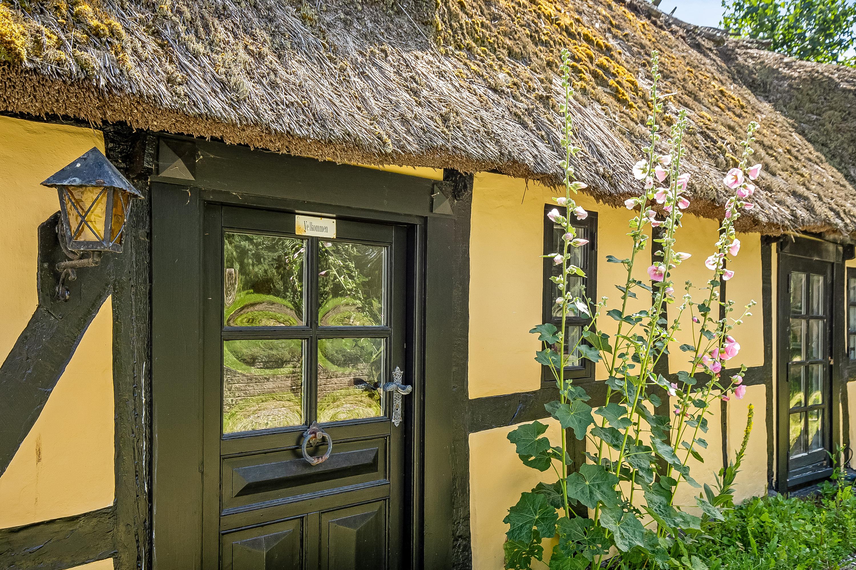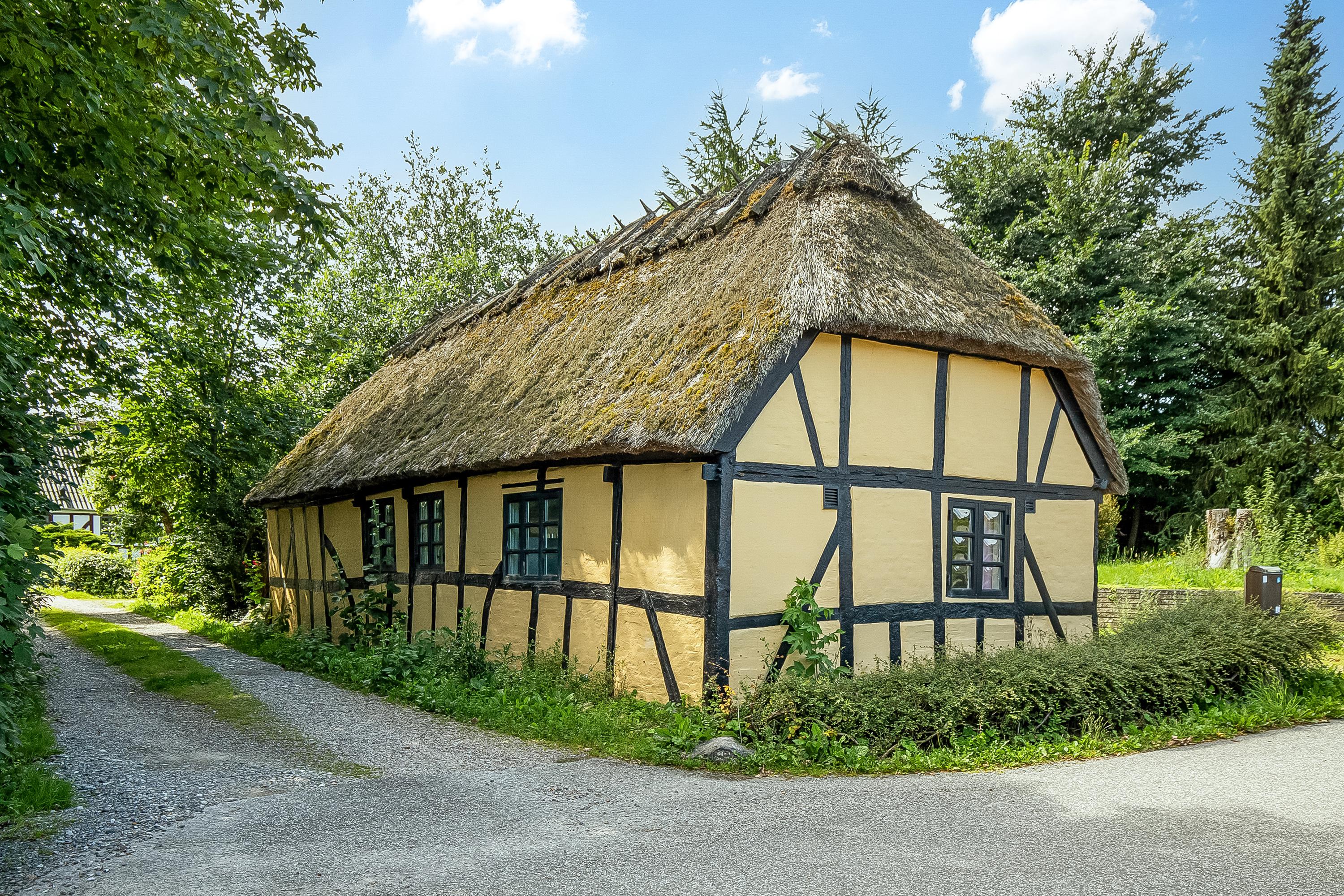 Bindingsværk, stråtag og masser af bondehusidyl. Obs på loftshøjden i stueplan på ca 1.9-1,95m.