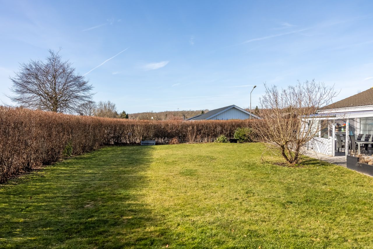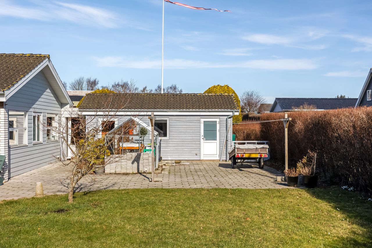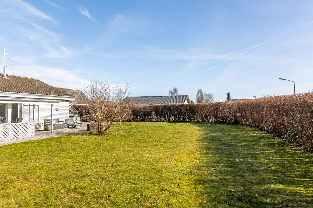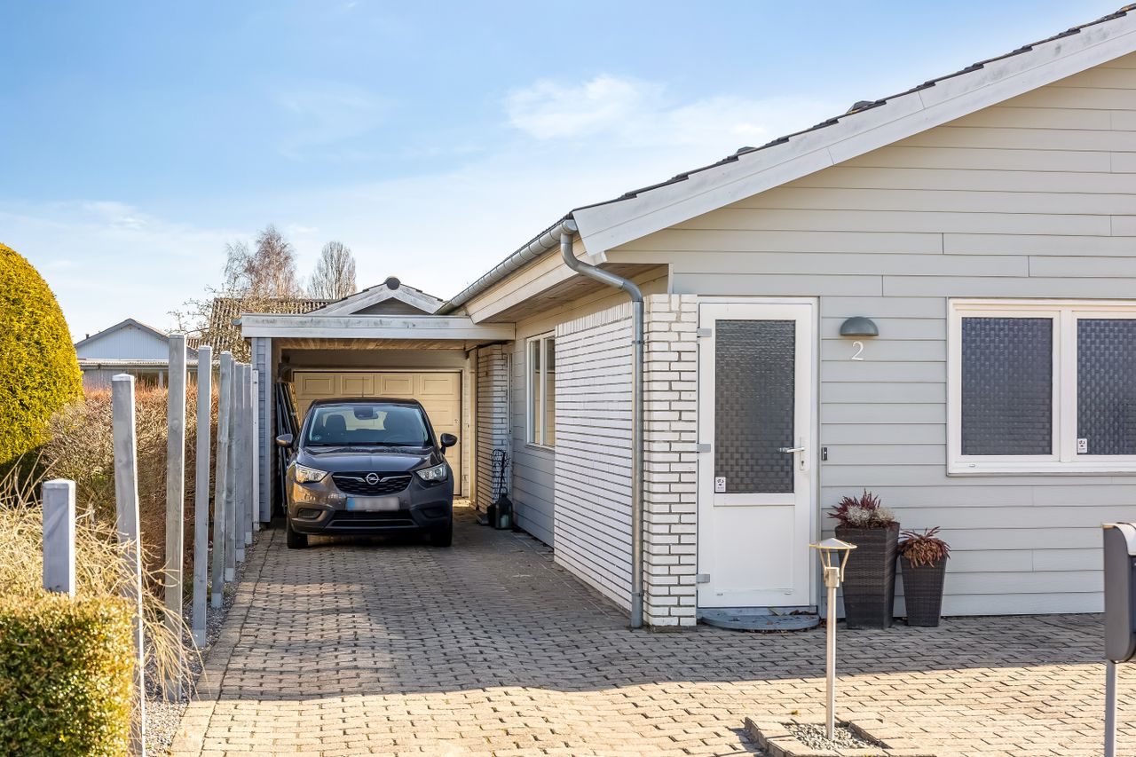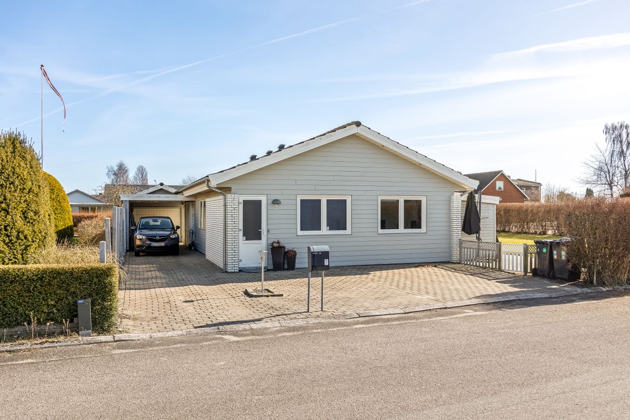Grunden er nem at holde og giver plads til både afslapning, leg og udeliv. Til ejendommen hører også en 19 m2 carport, så bilen kan holde tørt året rundt.