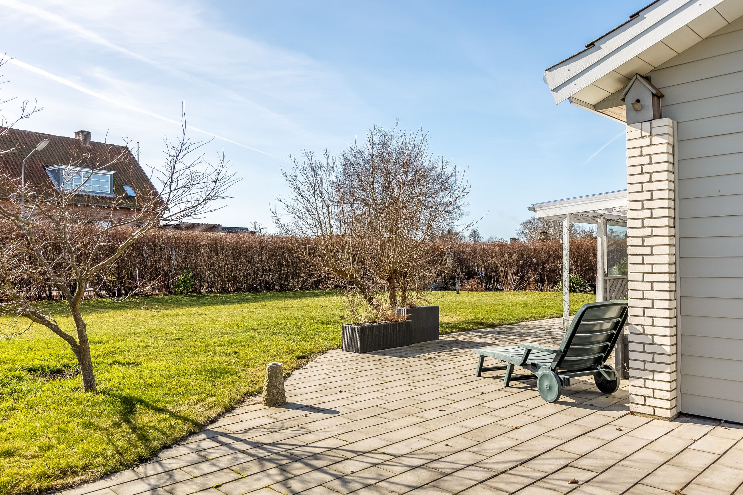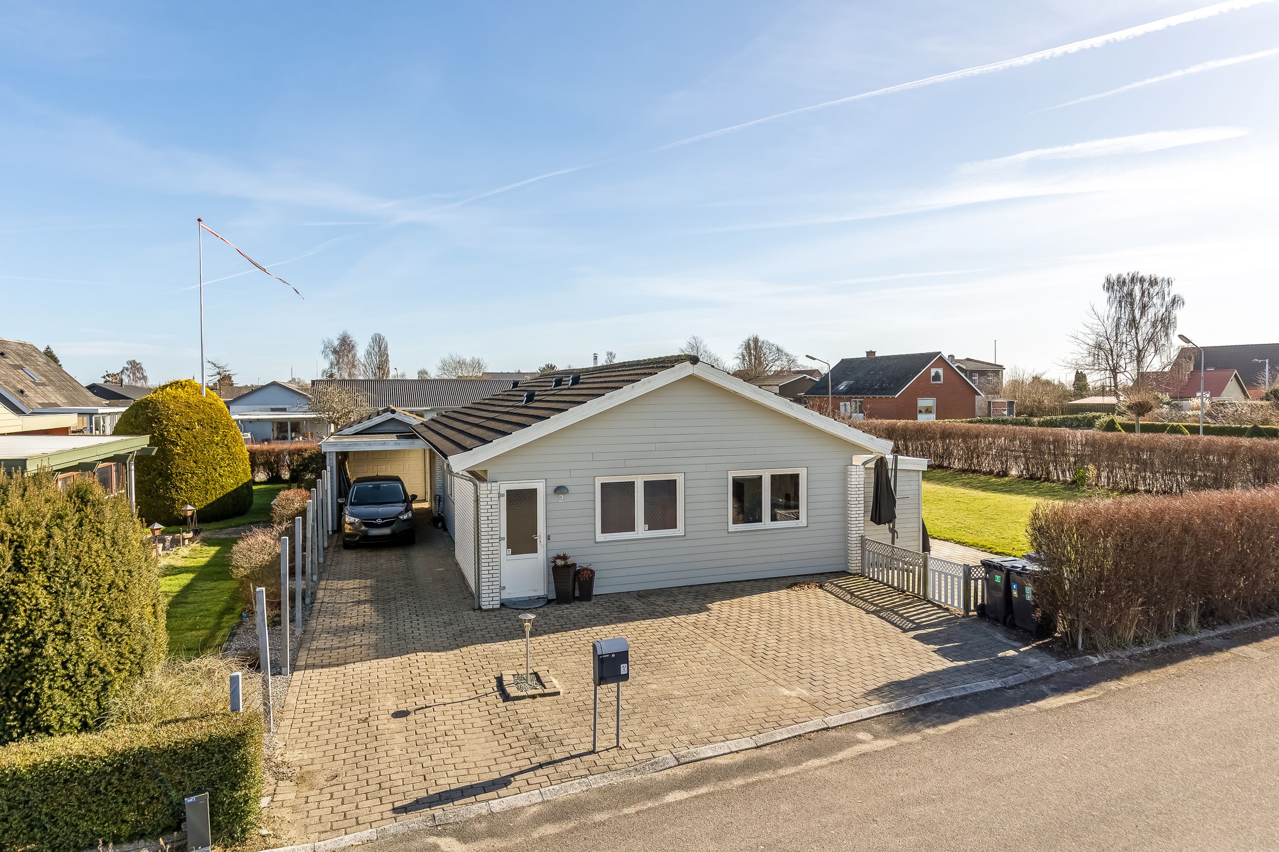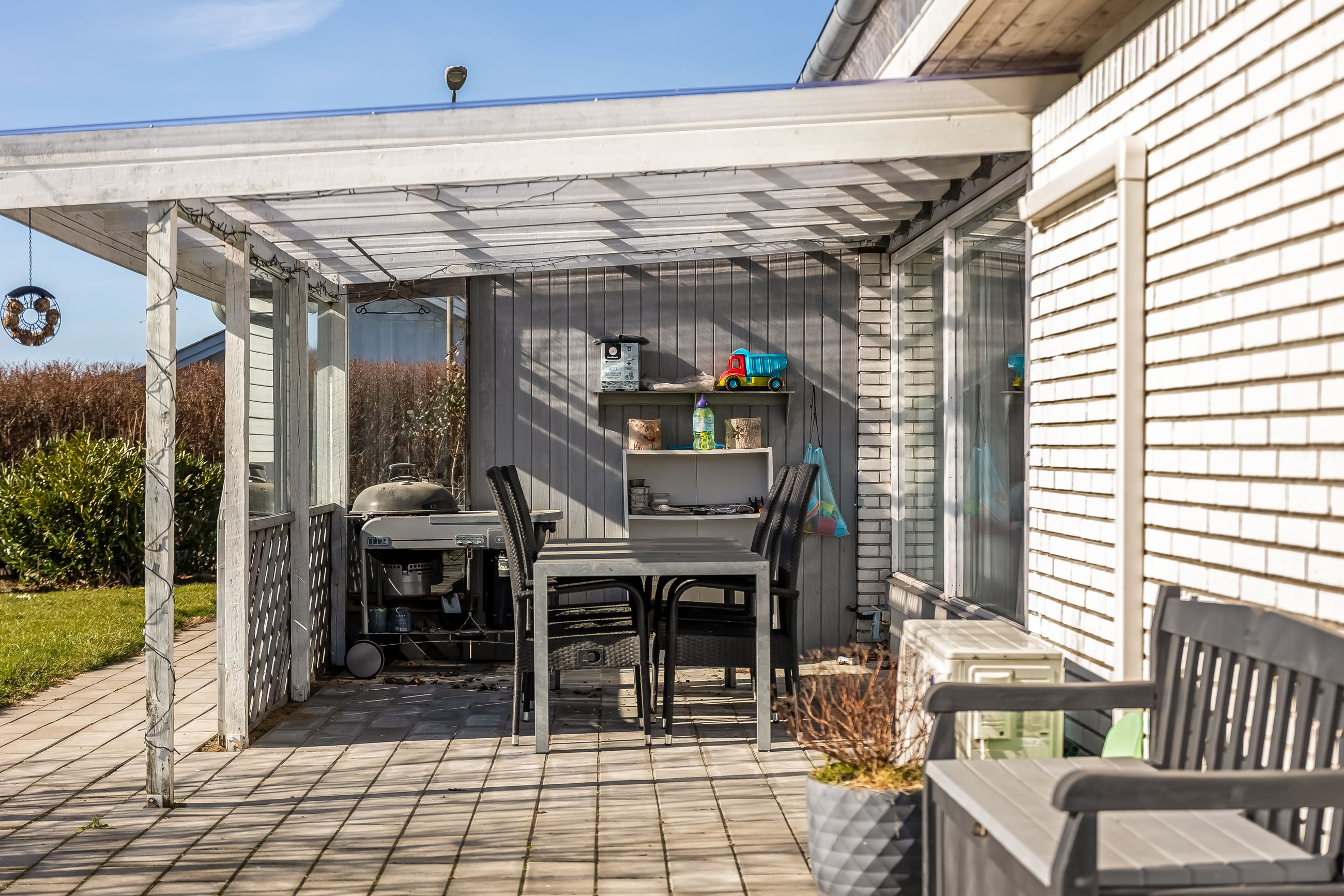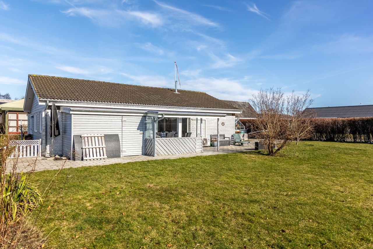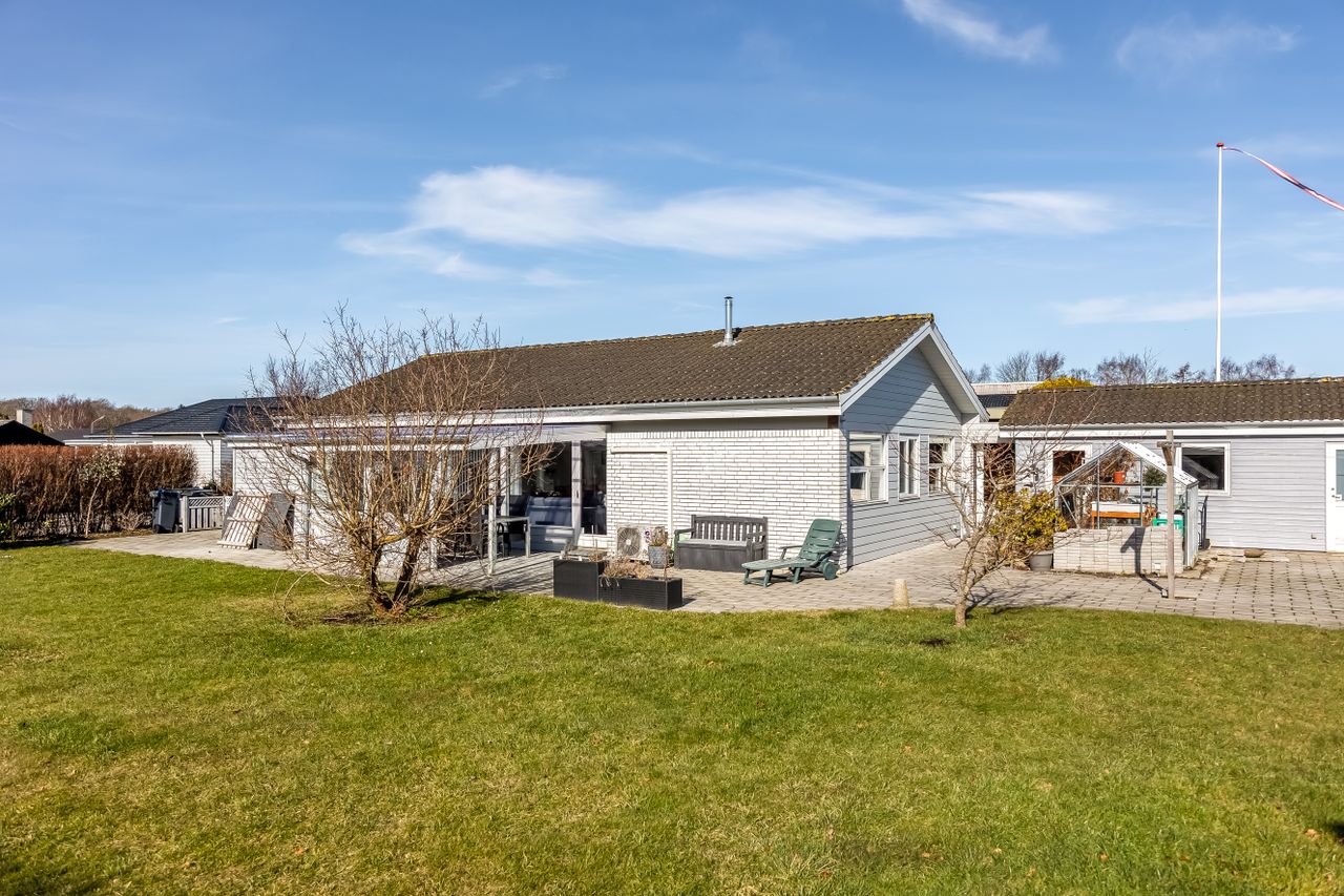 Grunden er nem at holde og giver plads til både afslapning, leg og udeliv. Til ejendommen hører også en 19 m2 carport, så bilen kan holde tørt året rundt.