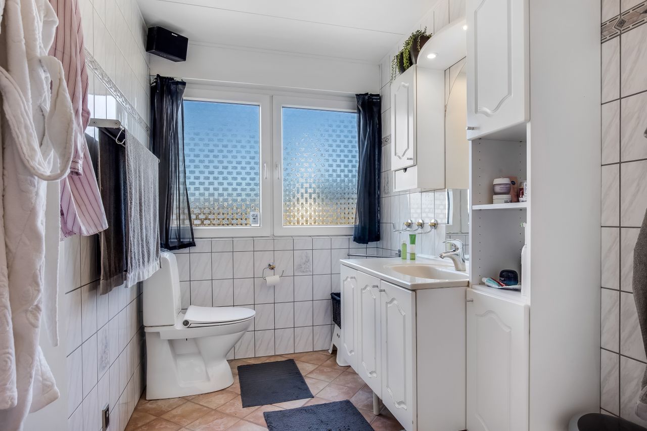 Boligen rummer desuden et rummeligt soveværelse med god skabsplads og direkte adgang til husets store badeværelse.