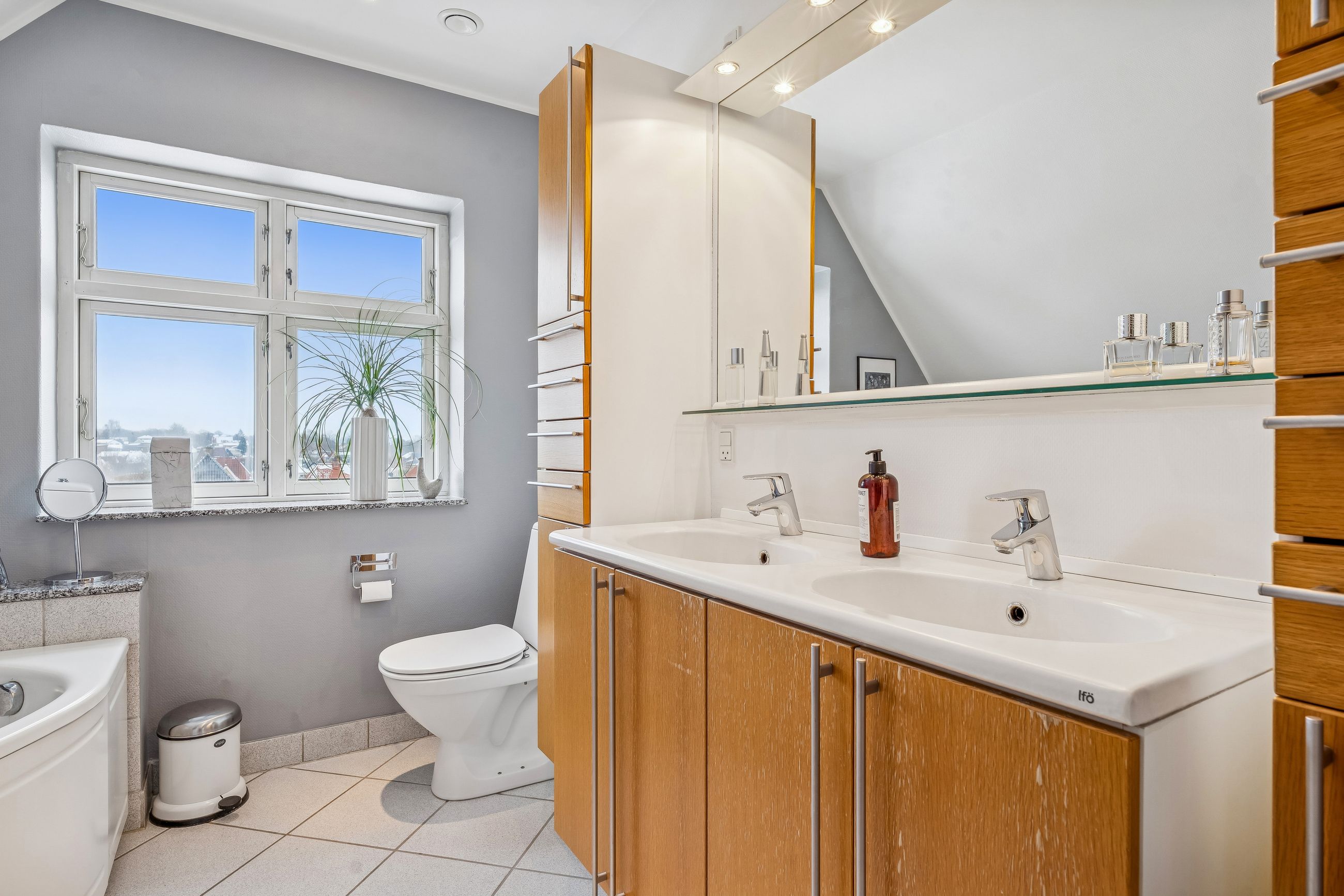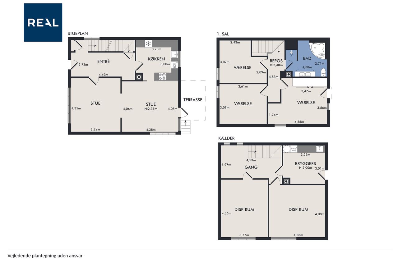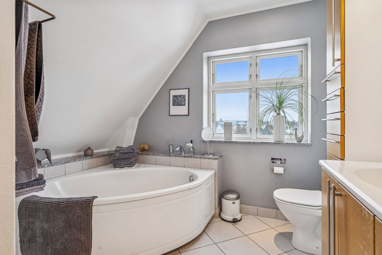 På første sal finder du tre rummelige værelser samt et stort badeværelse udstyret med både bruseniche og et stort badekar – perfekt til selvforkælelse efter en lang dag. Kælderen byder på endnu mere anvendeligt areal med bryggers samt to disponible rum, der kan bruges som hobbyrum, kontor eller noget helt tredje alt efter dine behov.