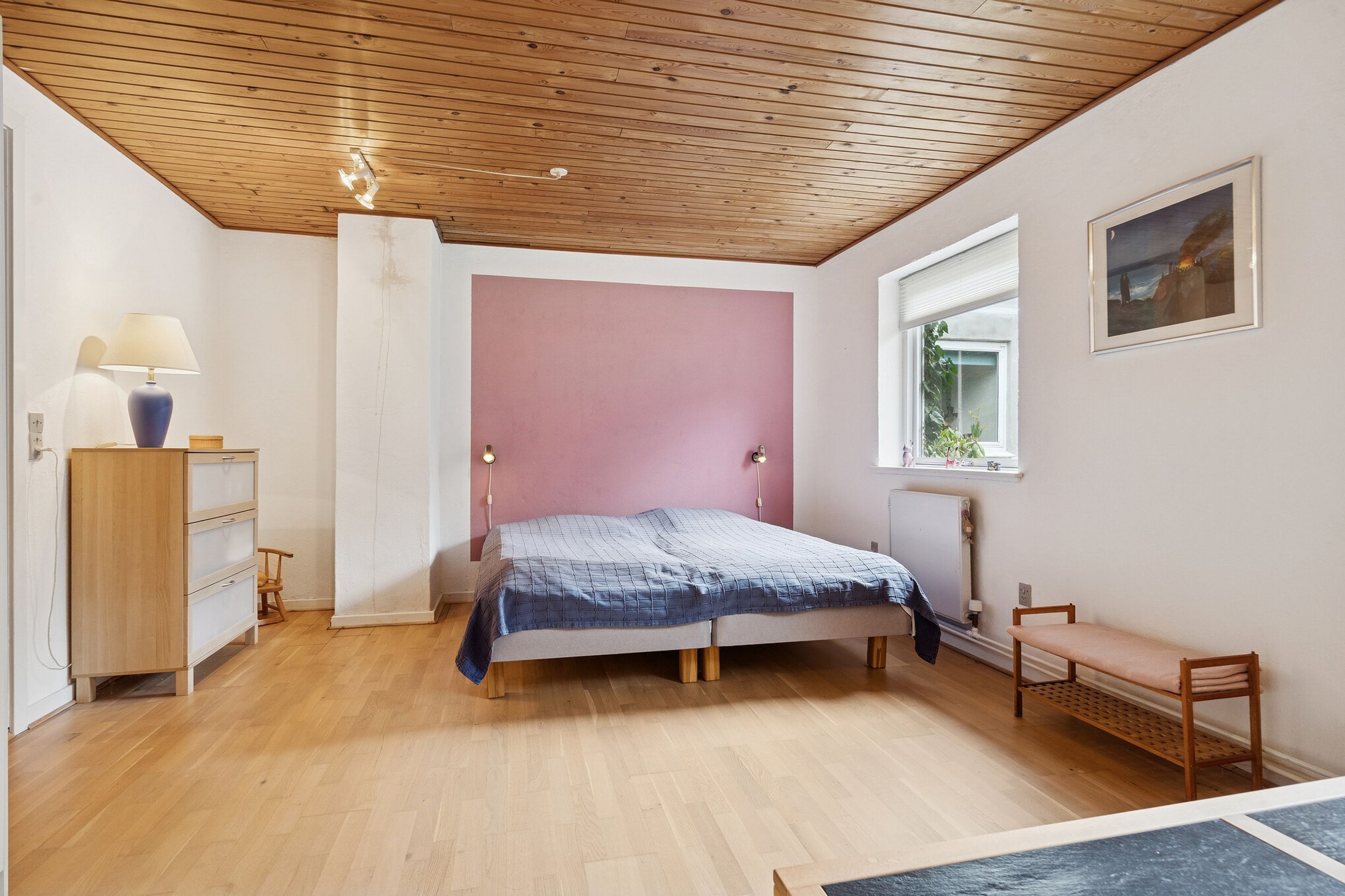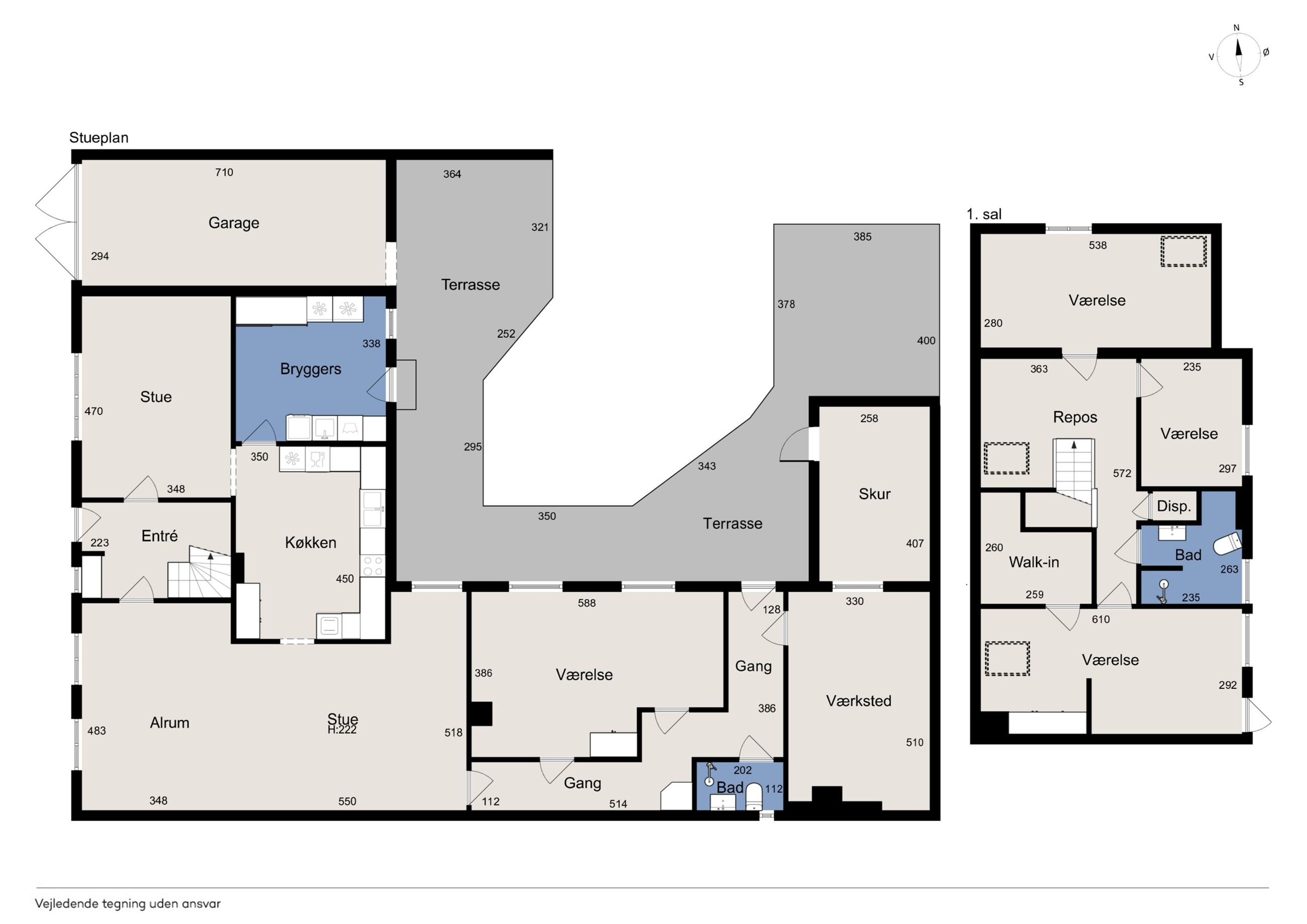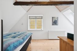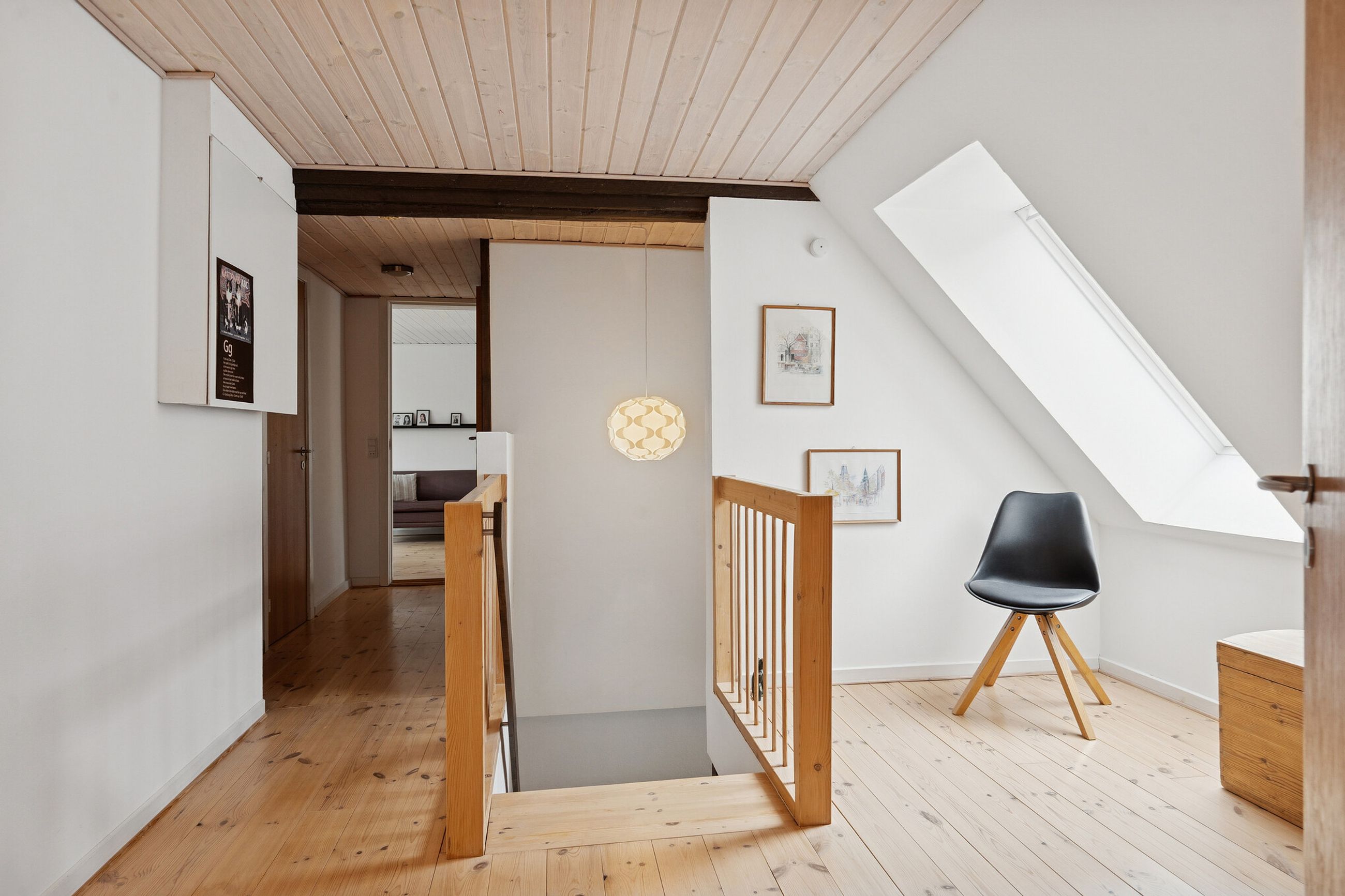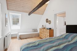 På 1. sal fortsætter den gode rumfordeling med flere værelser, som giver masser af muligheder for den pladskrævende familie. Her findes blandt andet flere gode soveværelser, walk-in samt badeværelse. Et repos forbinder rummene og skaber en naturlig opdeling af etagen.