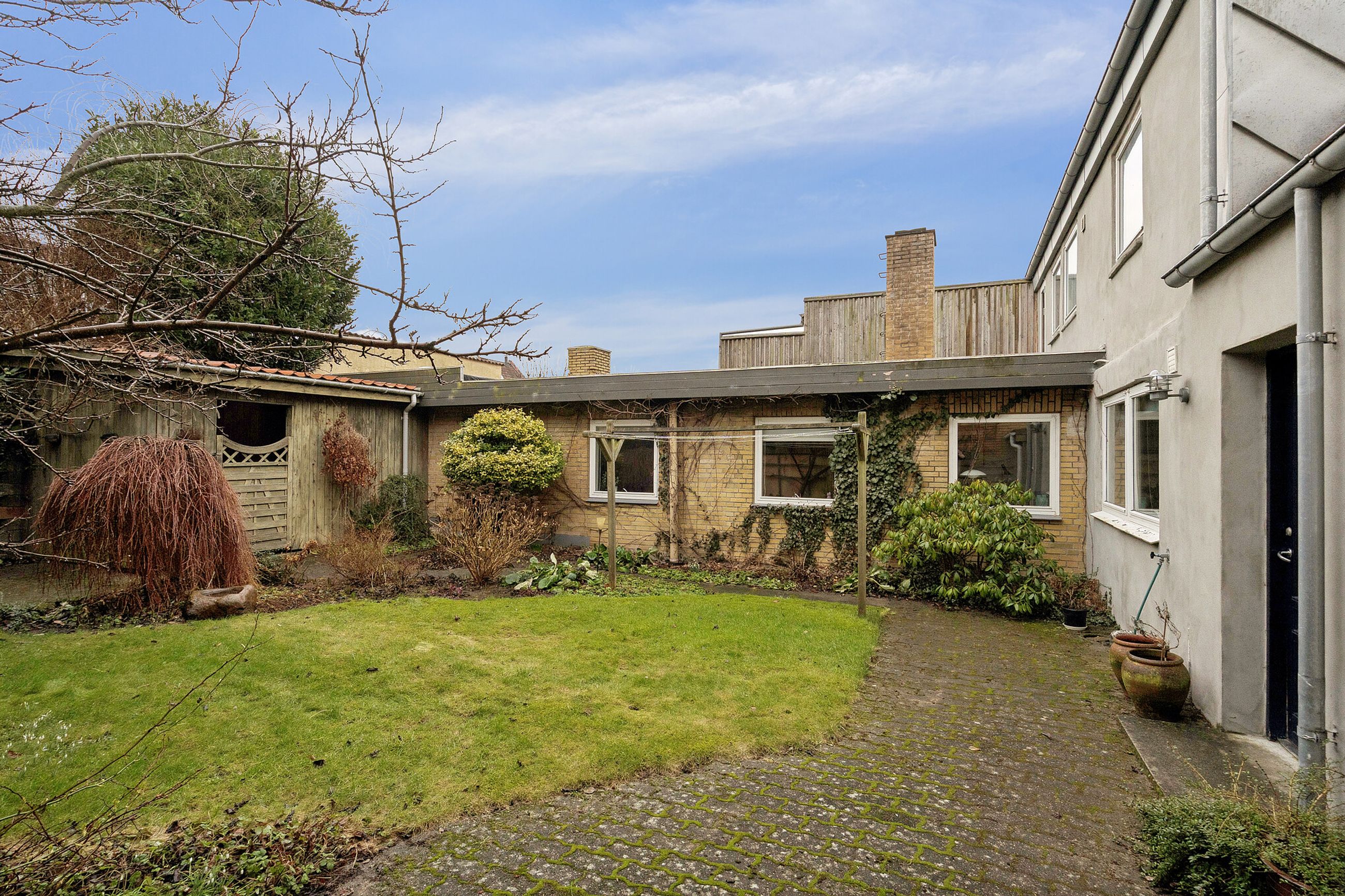 Fra boligen er der adgang til en hyggelig gårdhave, som kræver minimal vedligeholdelse og giver mulighed for udeliv i private rammer.