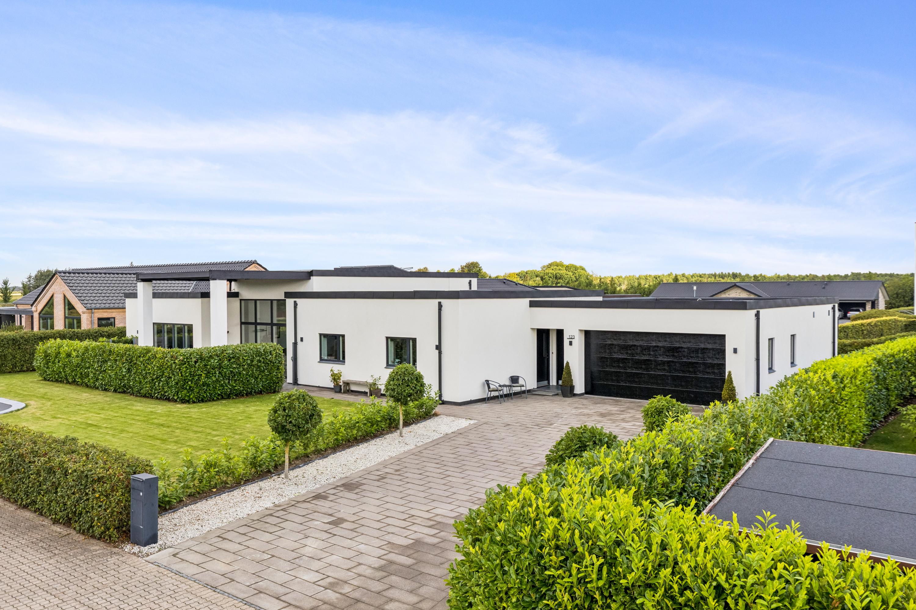 Velkommen til Kjærmarken 123 en bolig, hvor minimalisme og funktionalitet går hånd i hånd med lys, rummelighed og gennemtænkte løsninger. Denne villa skiller sig ud ved sit markante udtryk, der kombinerer tidløs elegance med moderne komfort.