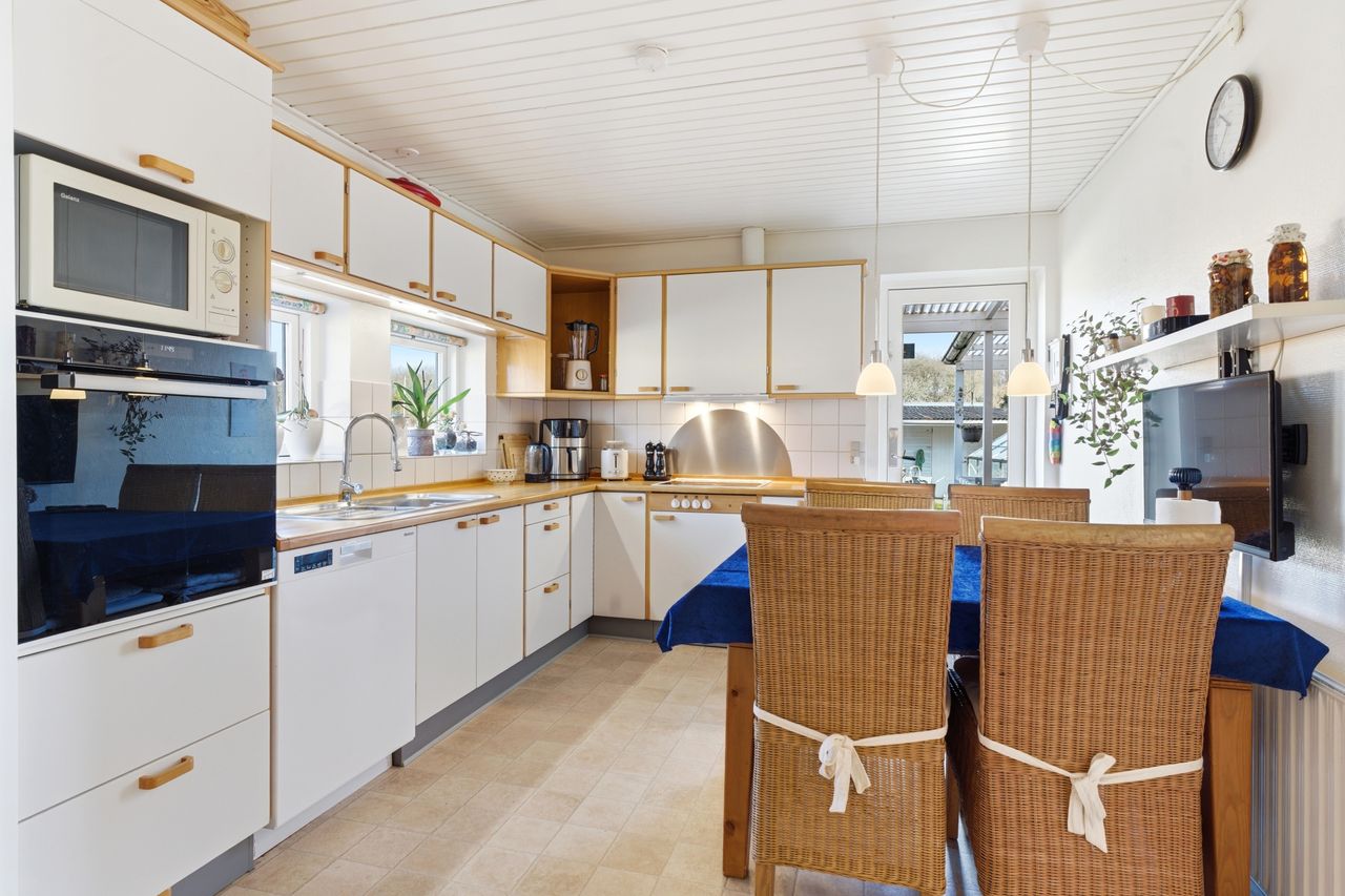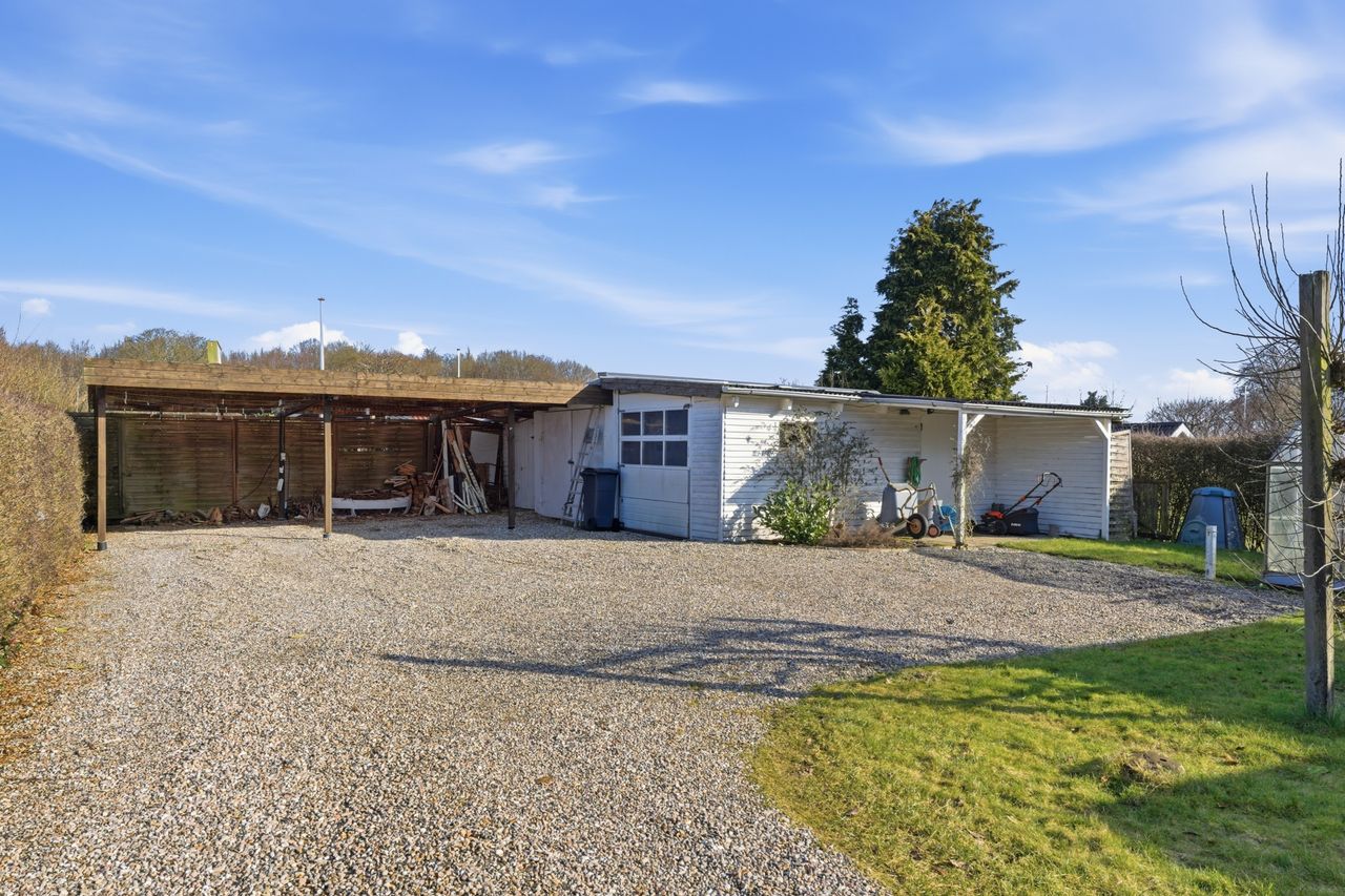 Til ejendommen hører også garage og gode udbygninger, som giver ekstra plads til værksted, opbevaring eller fritidsprojekter.