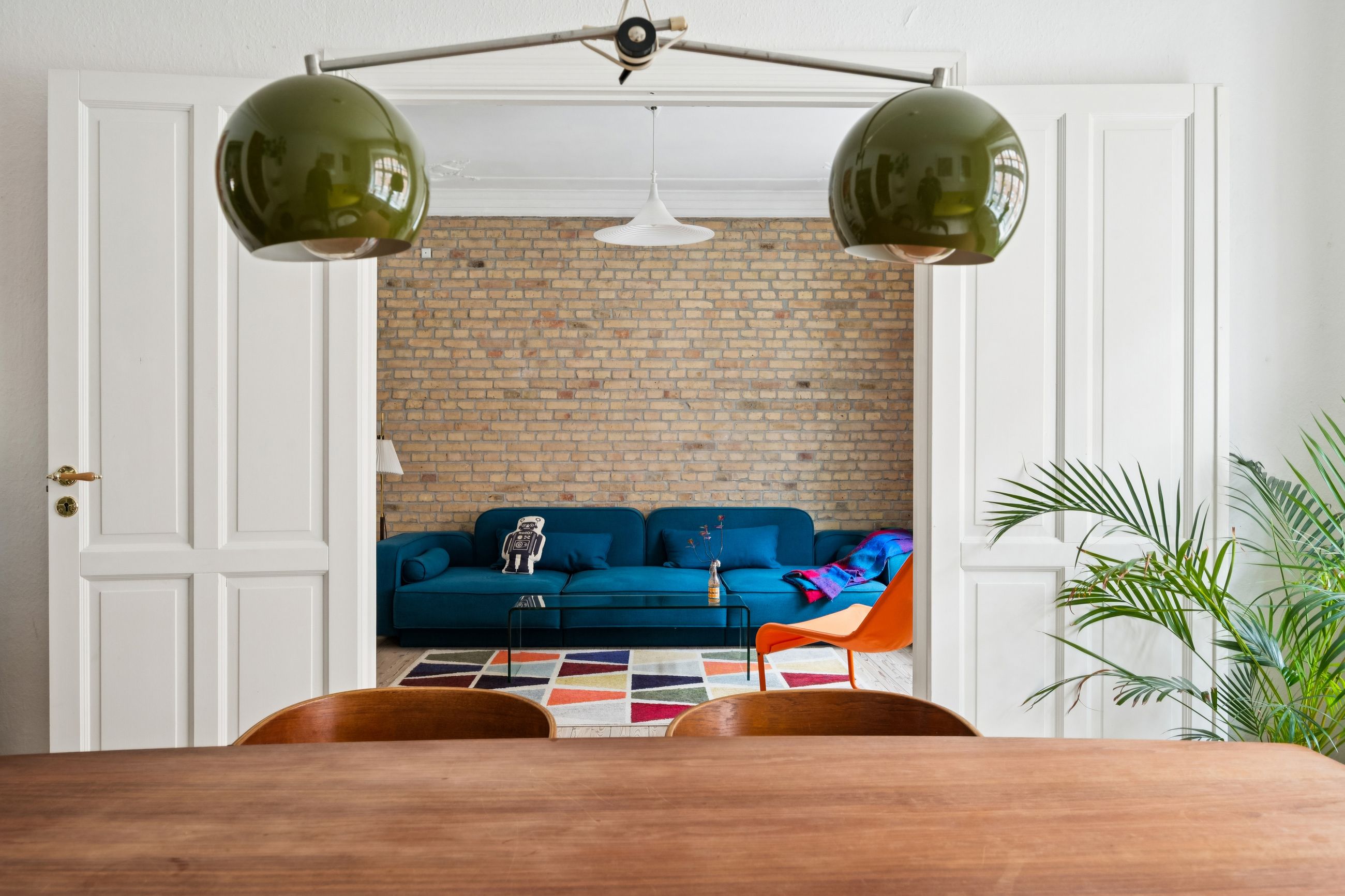 Stuer: To rummelige stuer adskilt af klassiske fyldningsdøre – ideelle til både opholds- og spisestue.